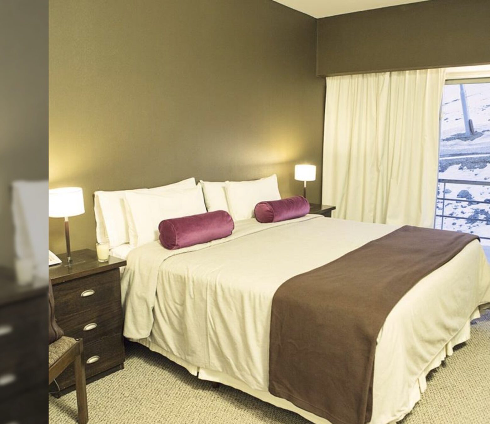Precios Finales por Habitación. Con una superficie de 30m², se encuentra equipada con calefacción central, TV LCD 32” , Mesa de apoyo, frigobar, teléfono, caja de seguridad. Batas y pantuflas, Secador de Pelo, Artículos de aseo gratuito, Wifi con cargo. Con balcón y Vista a las pistas