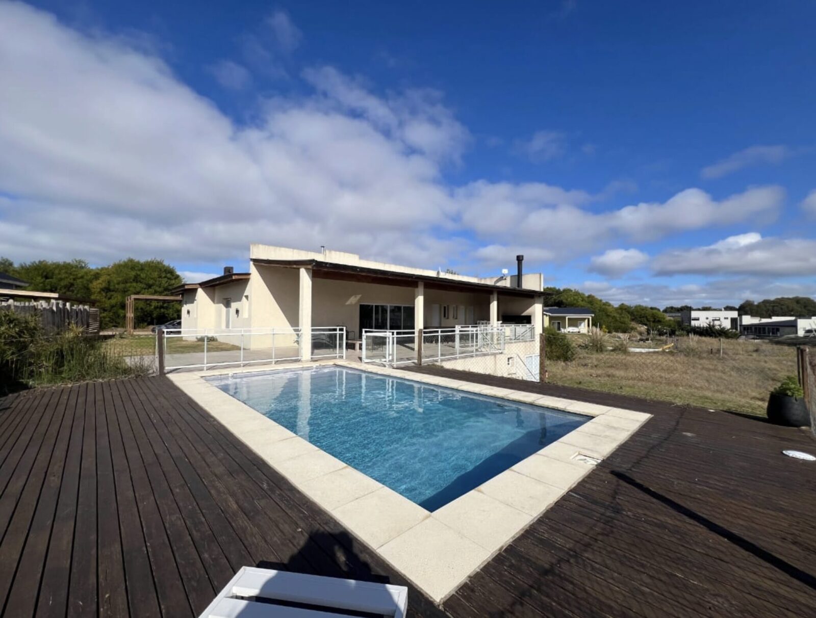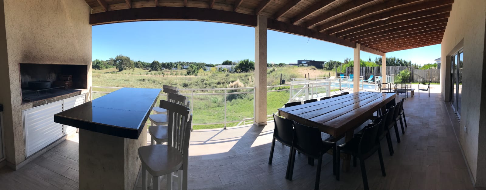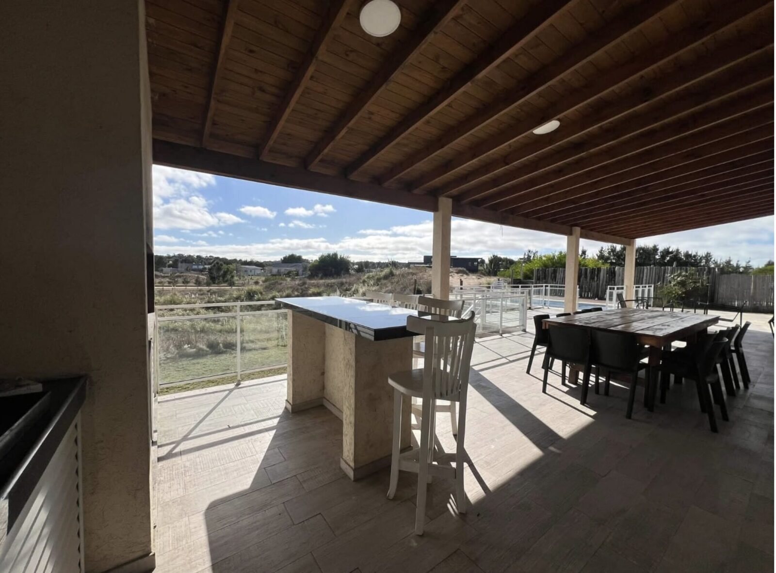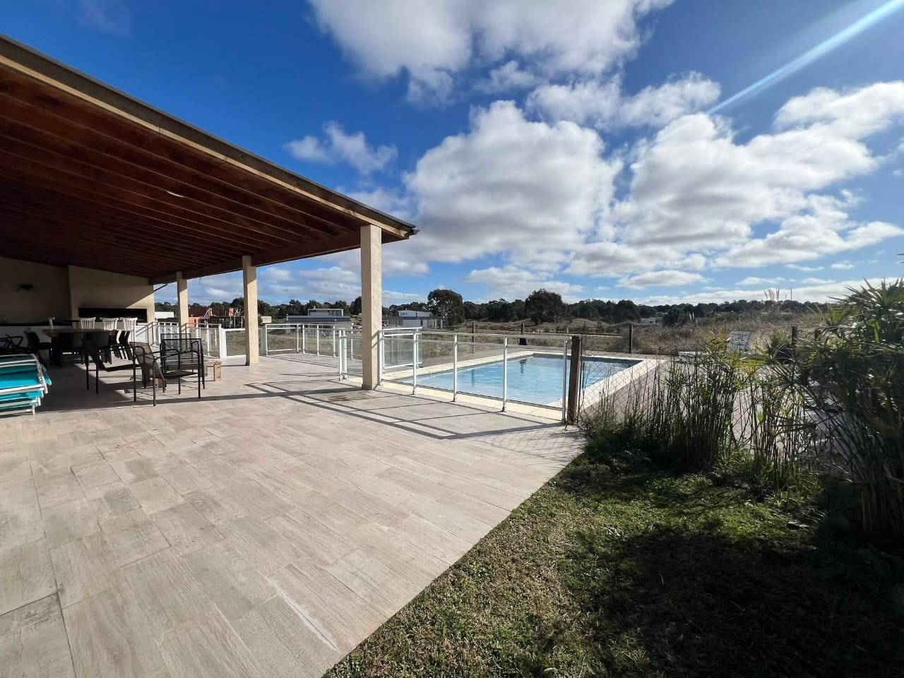 En la parte exterior amplia galería con parrilla, disco, juego de comedor y living. Piscina iluminada.Solárium .
