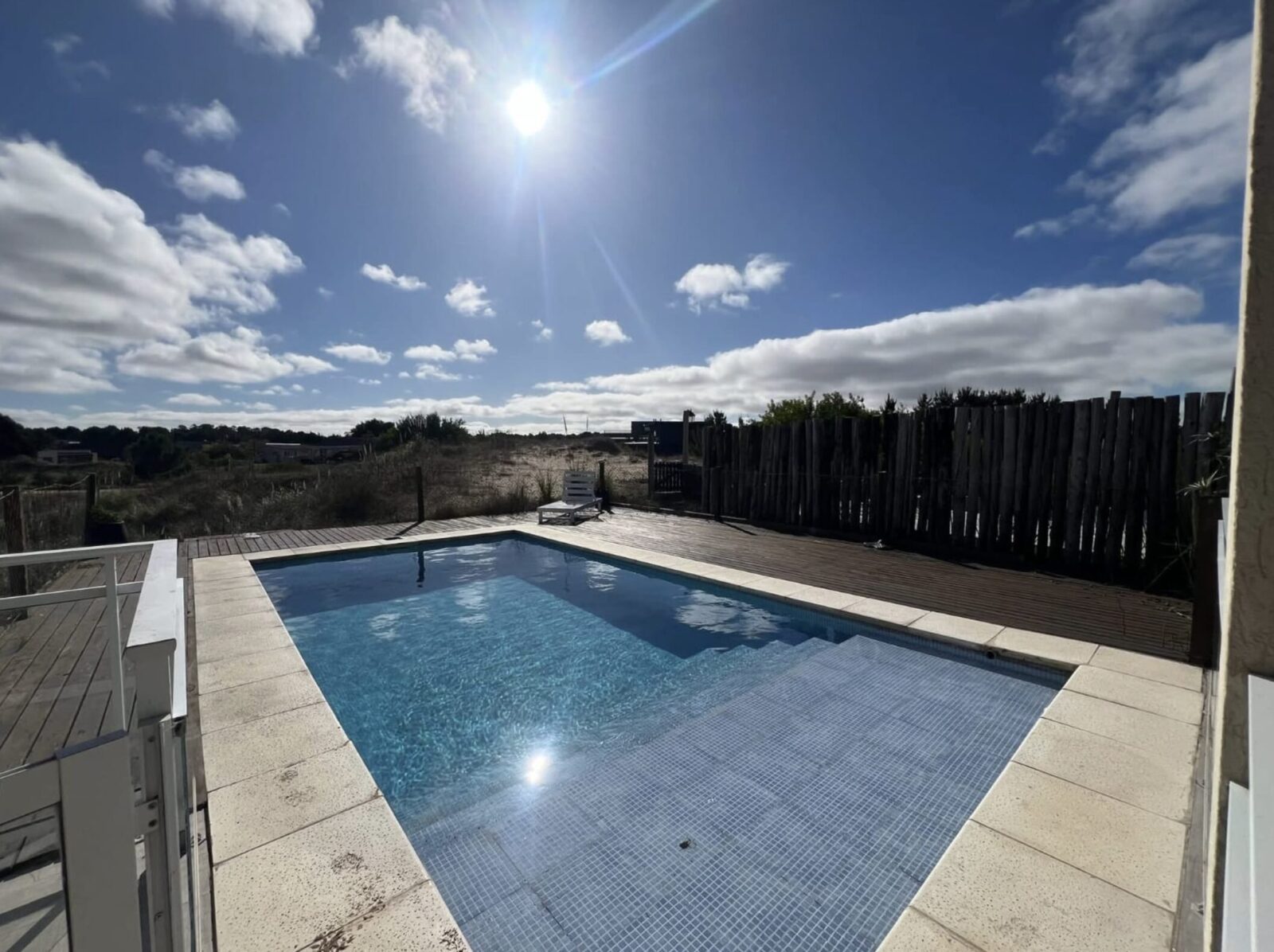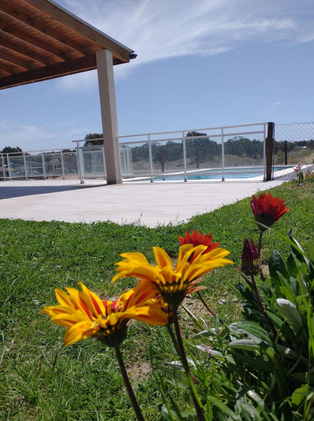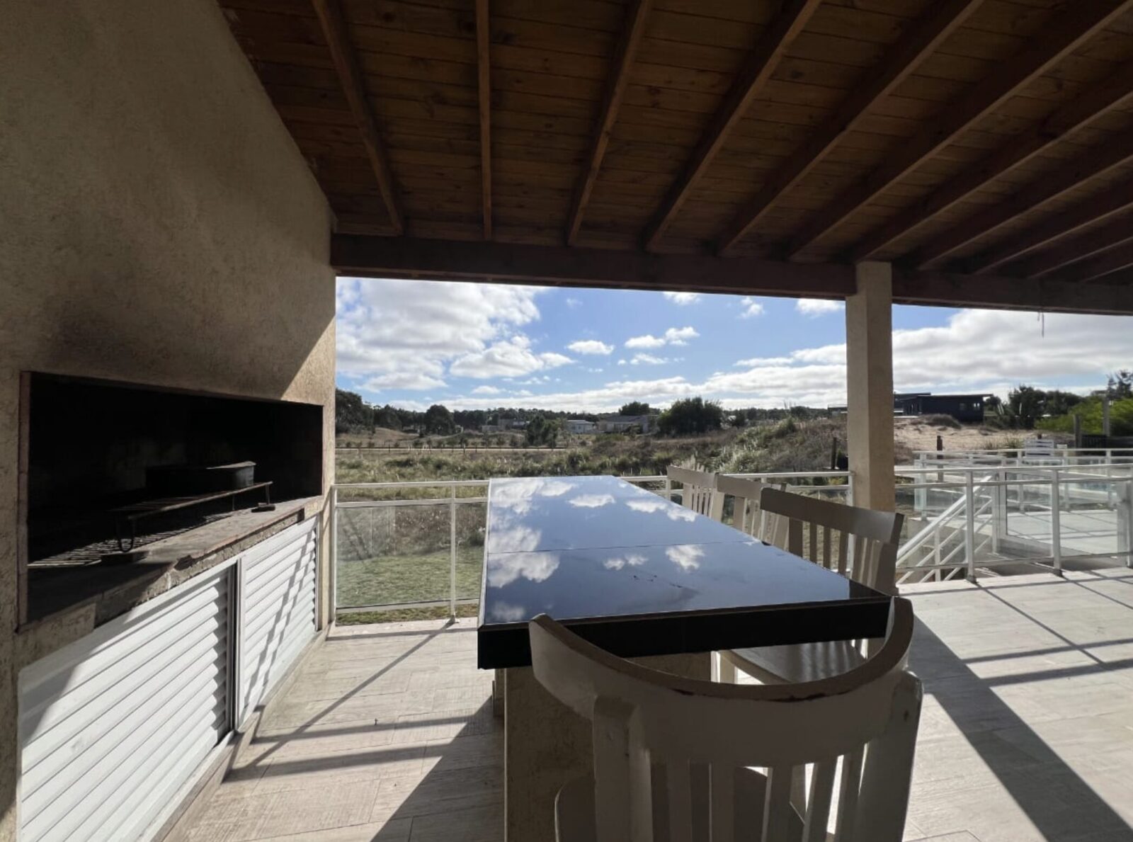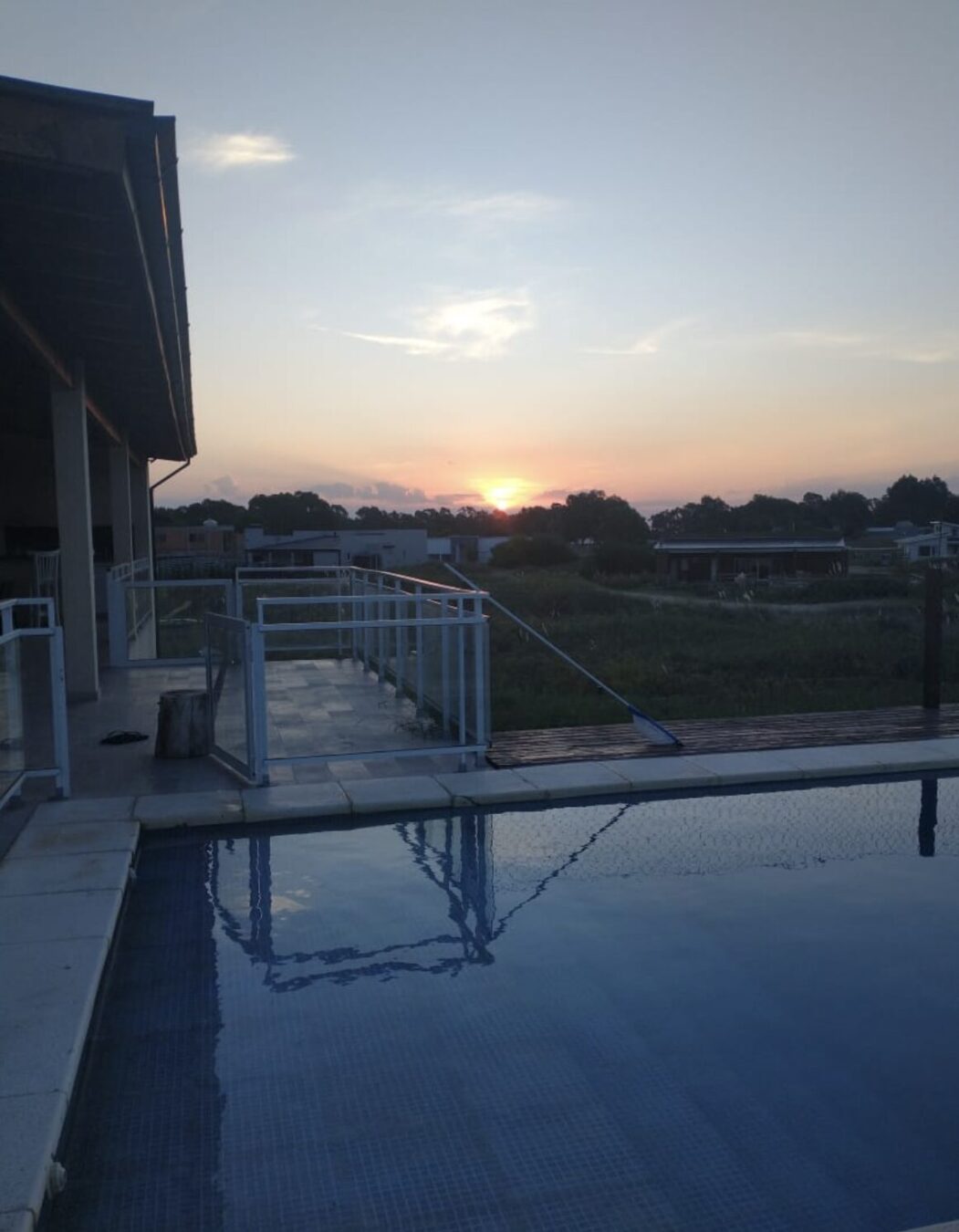 En la parte exterior amplia galería con parrilla, disco, juego de comedor y living. Piscina iluminada.Solárium .