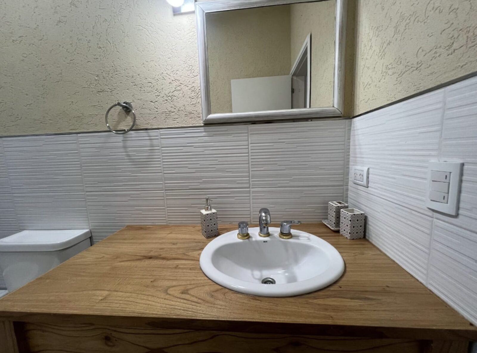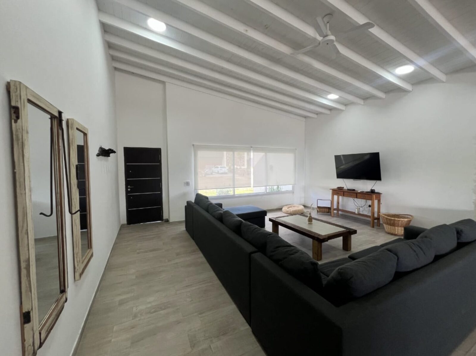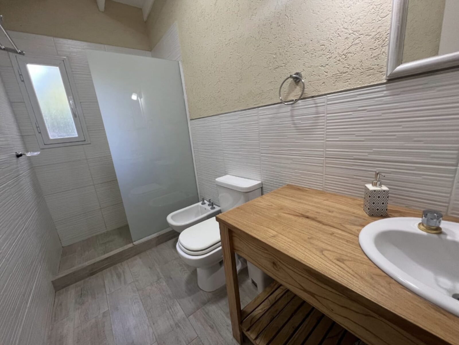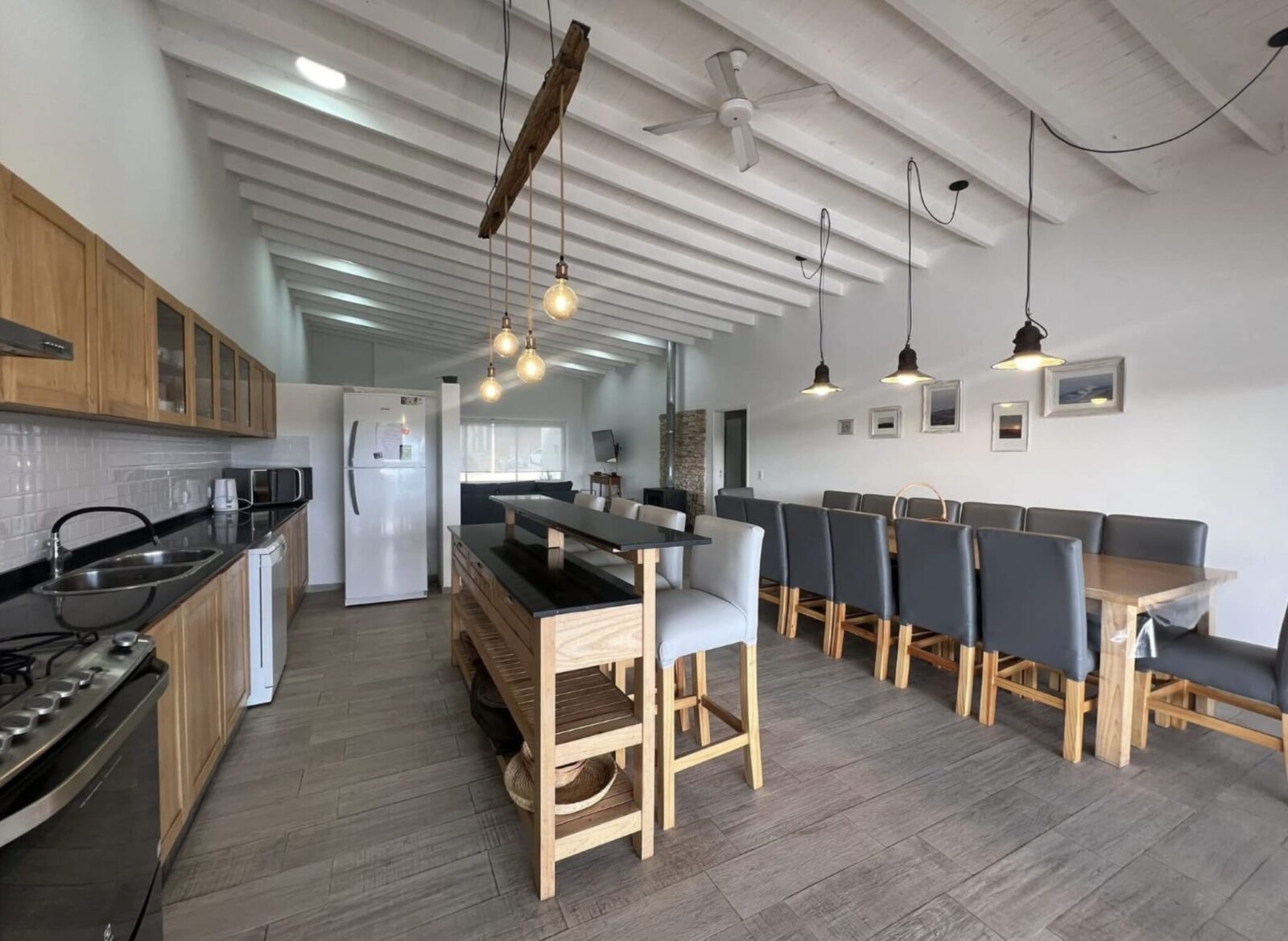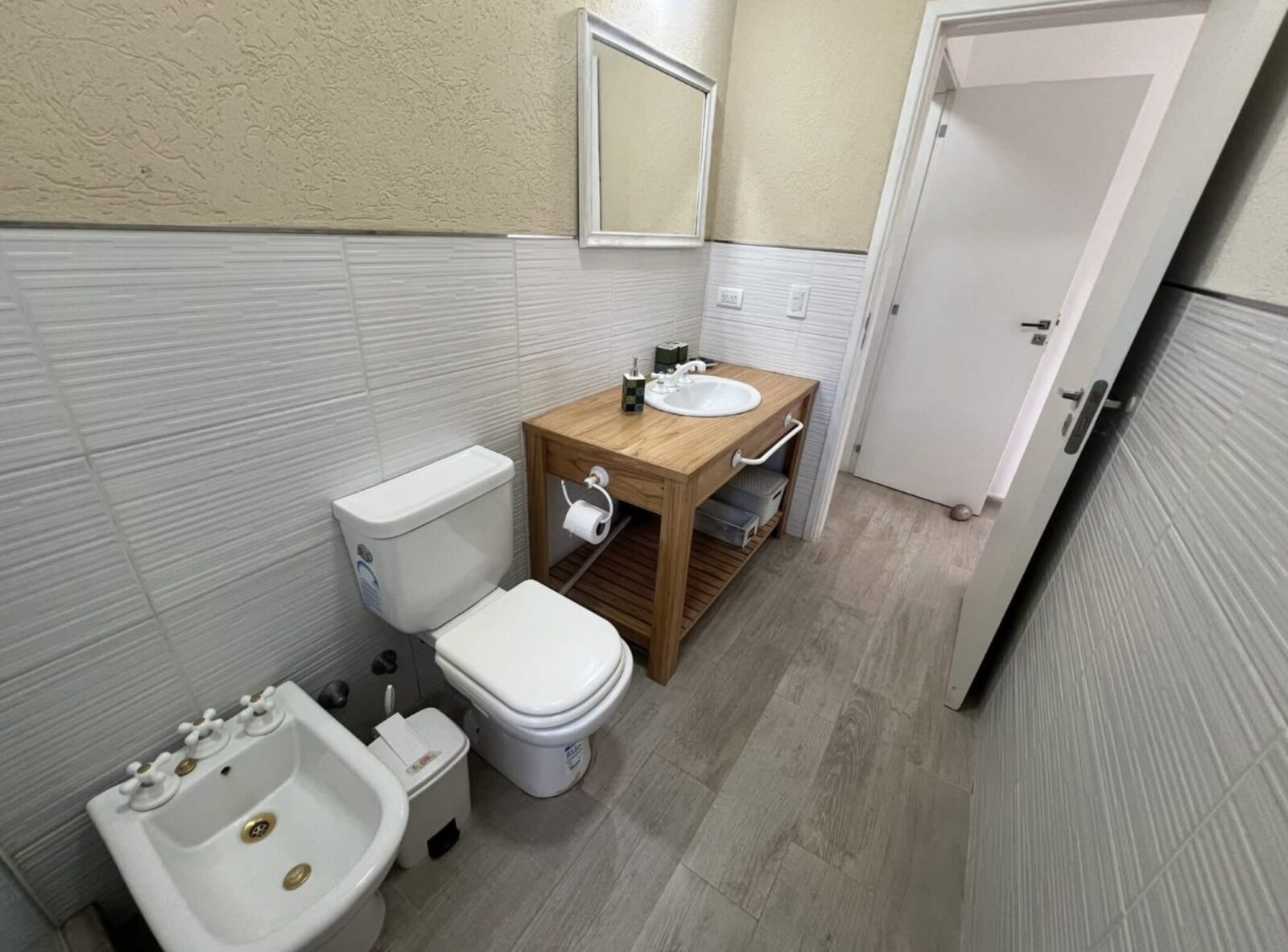 Cocina completa más barra desayunador con lavavajilla cafetera, minipimer, heladera de 360 LT y living comedor de 15 x 6 con un sillón.