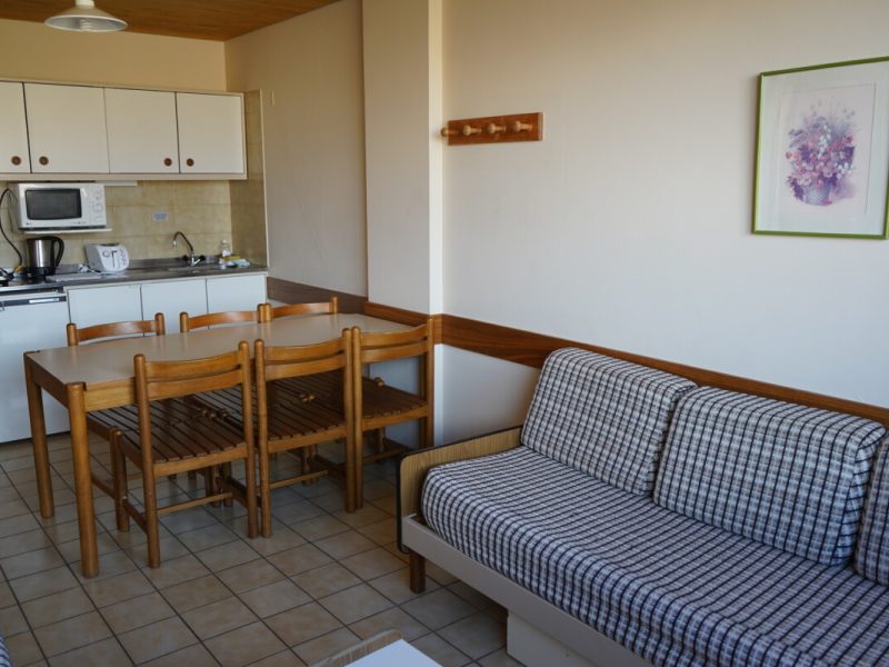 El departamento cuenta con una habitación con cama matrimonial y baño en suite y otra habitación abierta con 3 camas individuales y su respectivo baño. También cuenta con Cocina y Living-Comedor con un sofá cama.