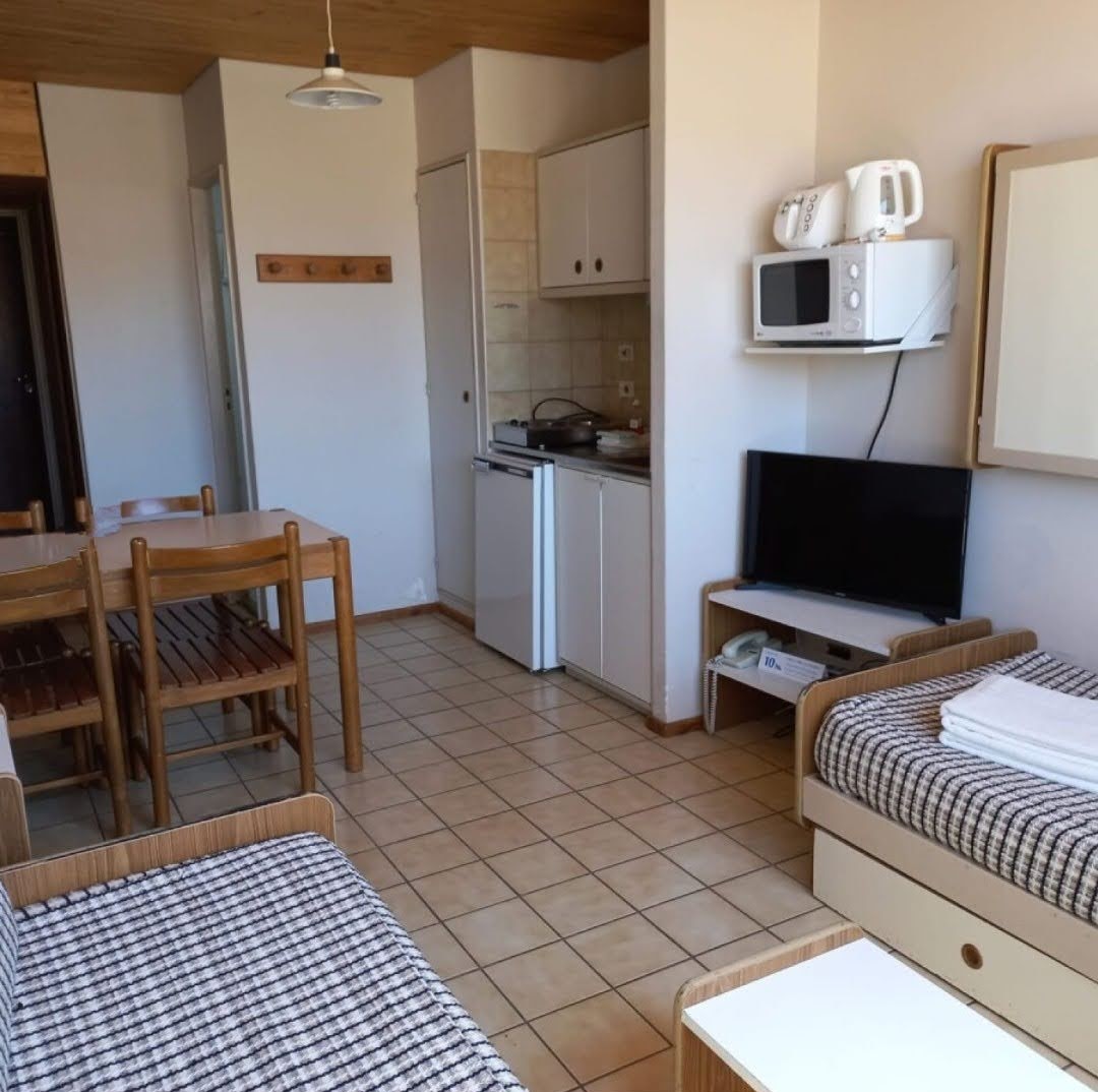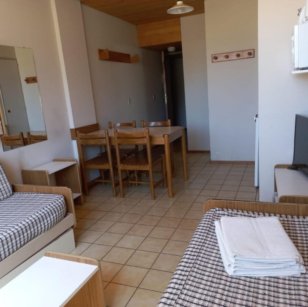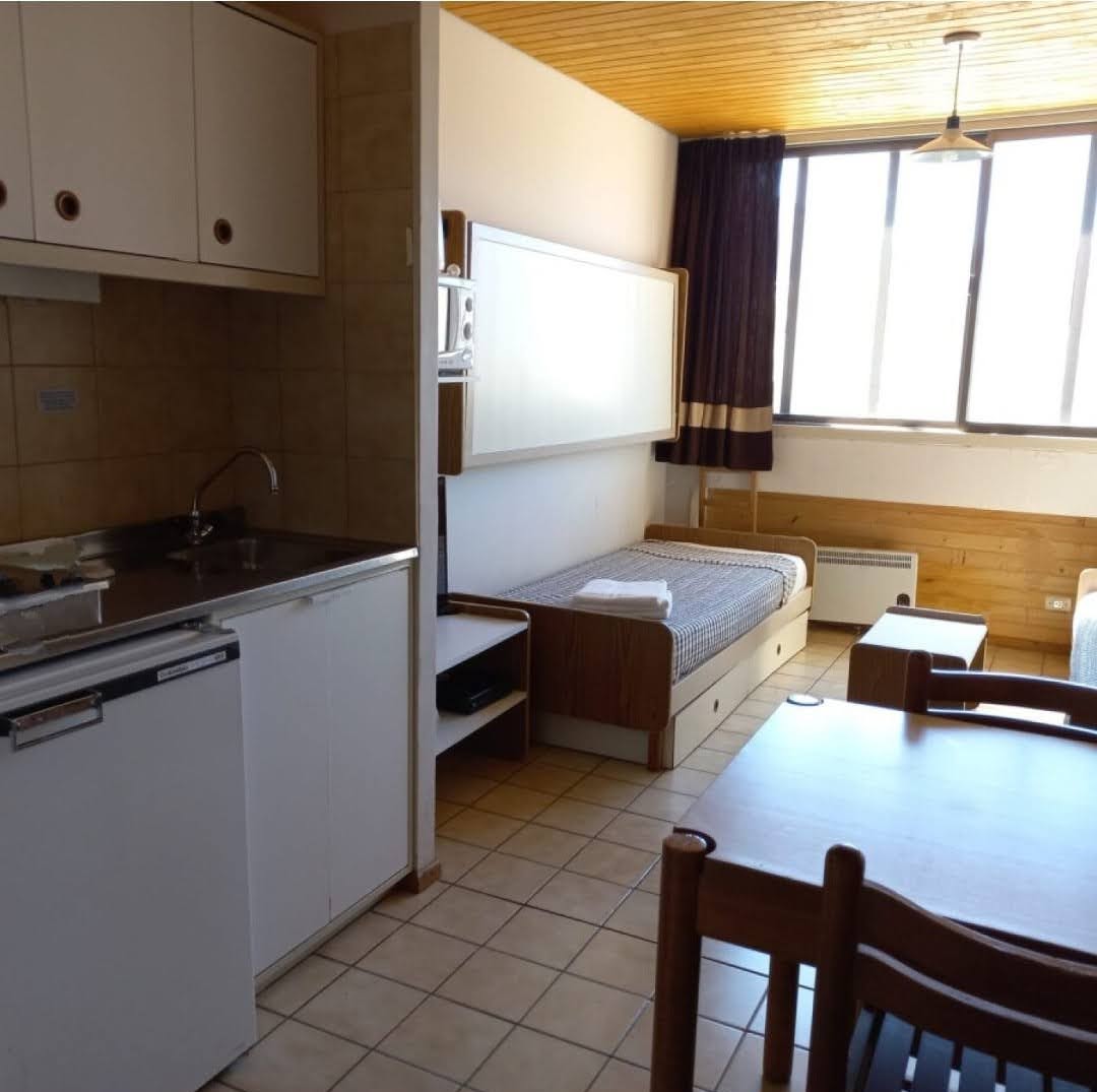 Departamento estudio tipo monoambiente cuenta con 1 baño, 1 cama matrimonial o 4 camas simples y cocina equipada.