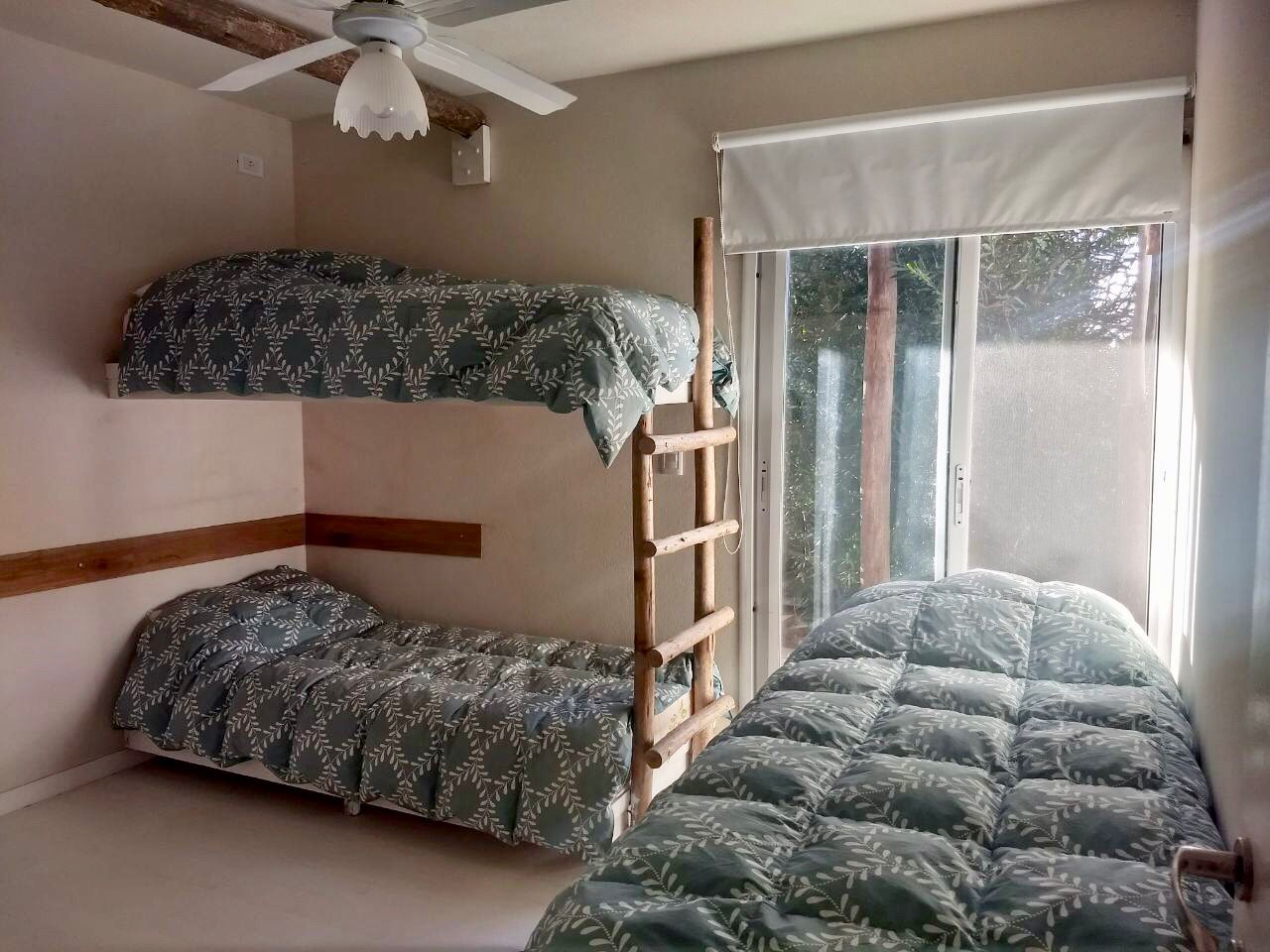 Tercer dormitorio con 3 camas (1 cucheta y otra sola al lado)con ventilador de techo y caloventor.