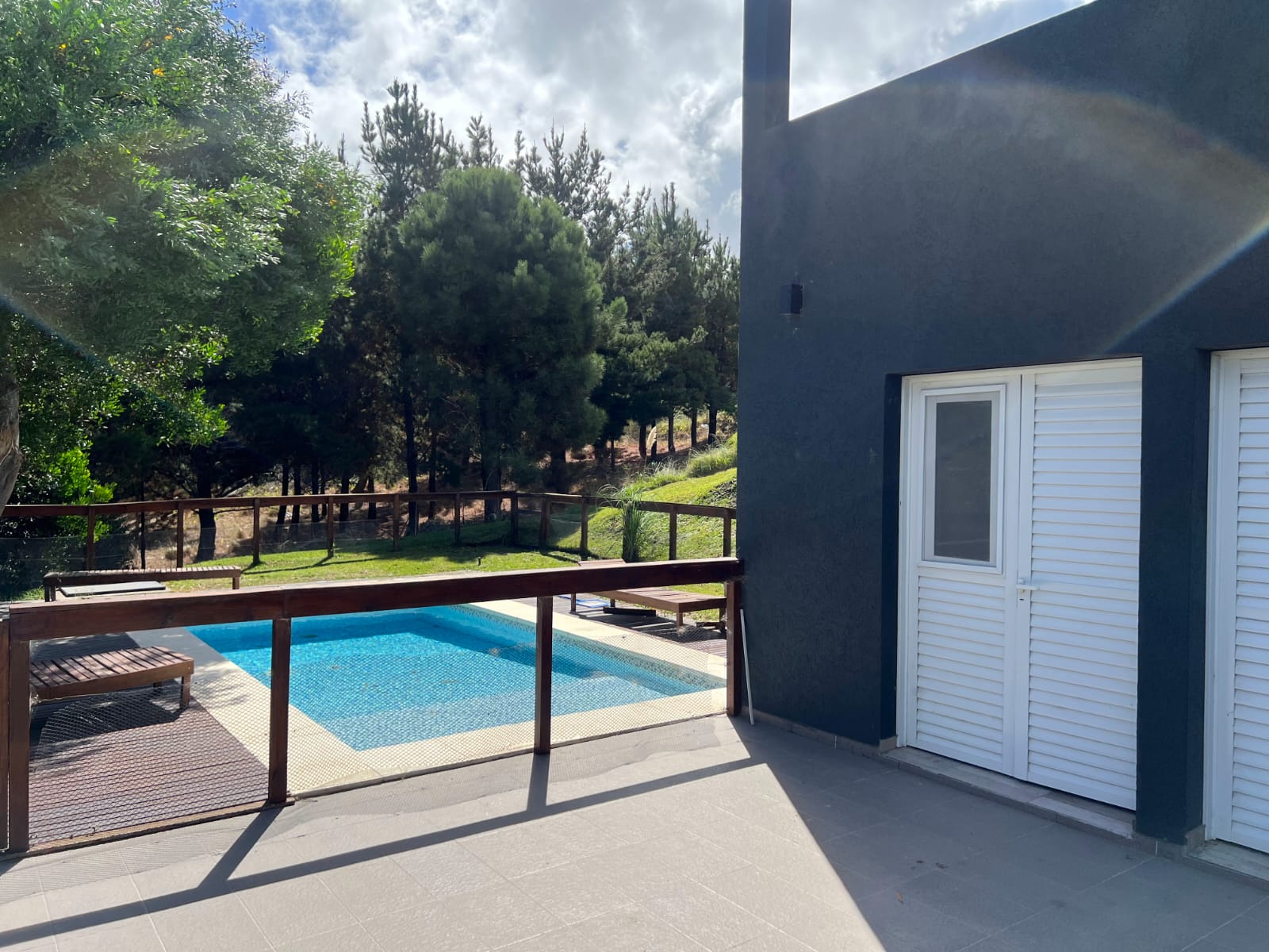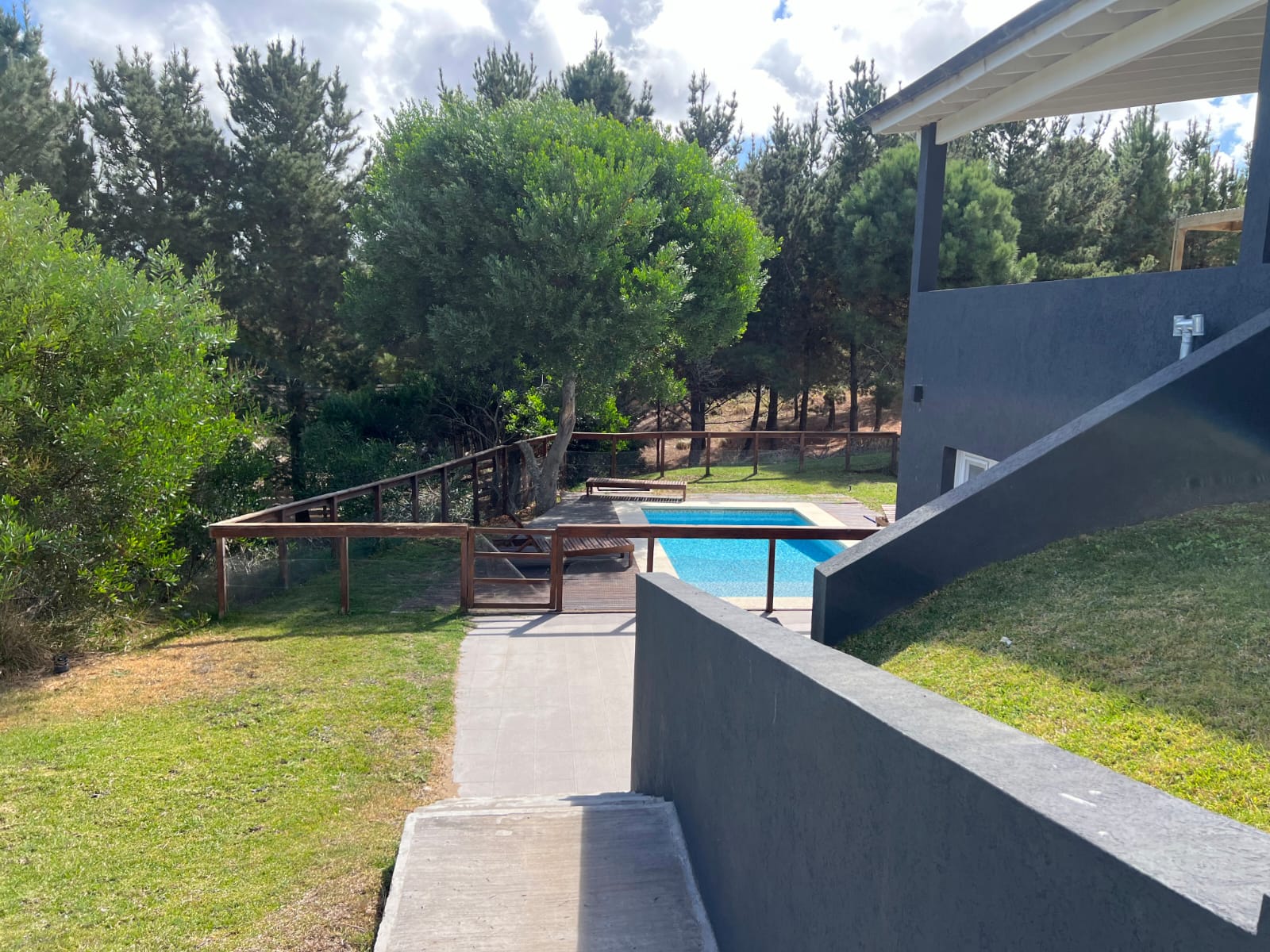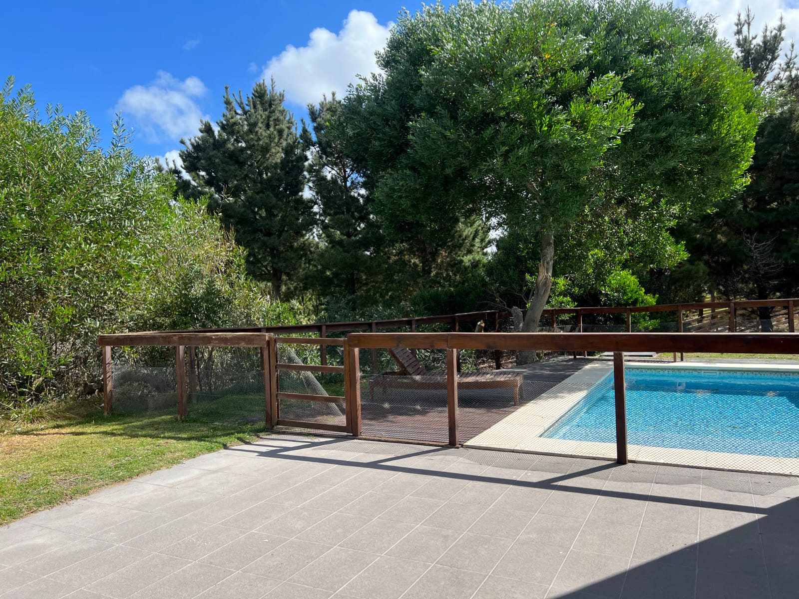 Pileta cercada y galería con parrilla.