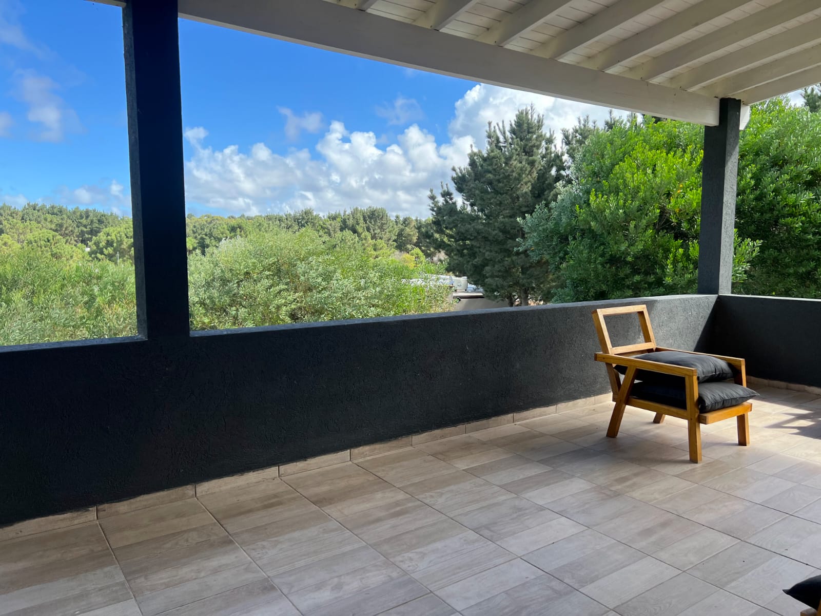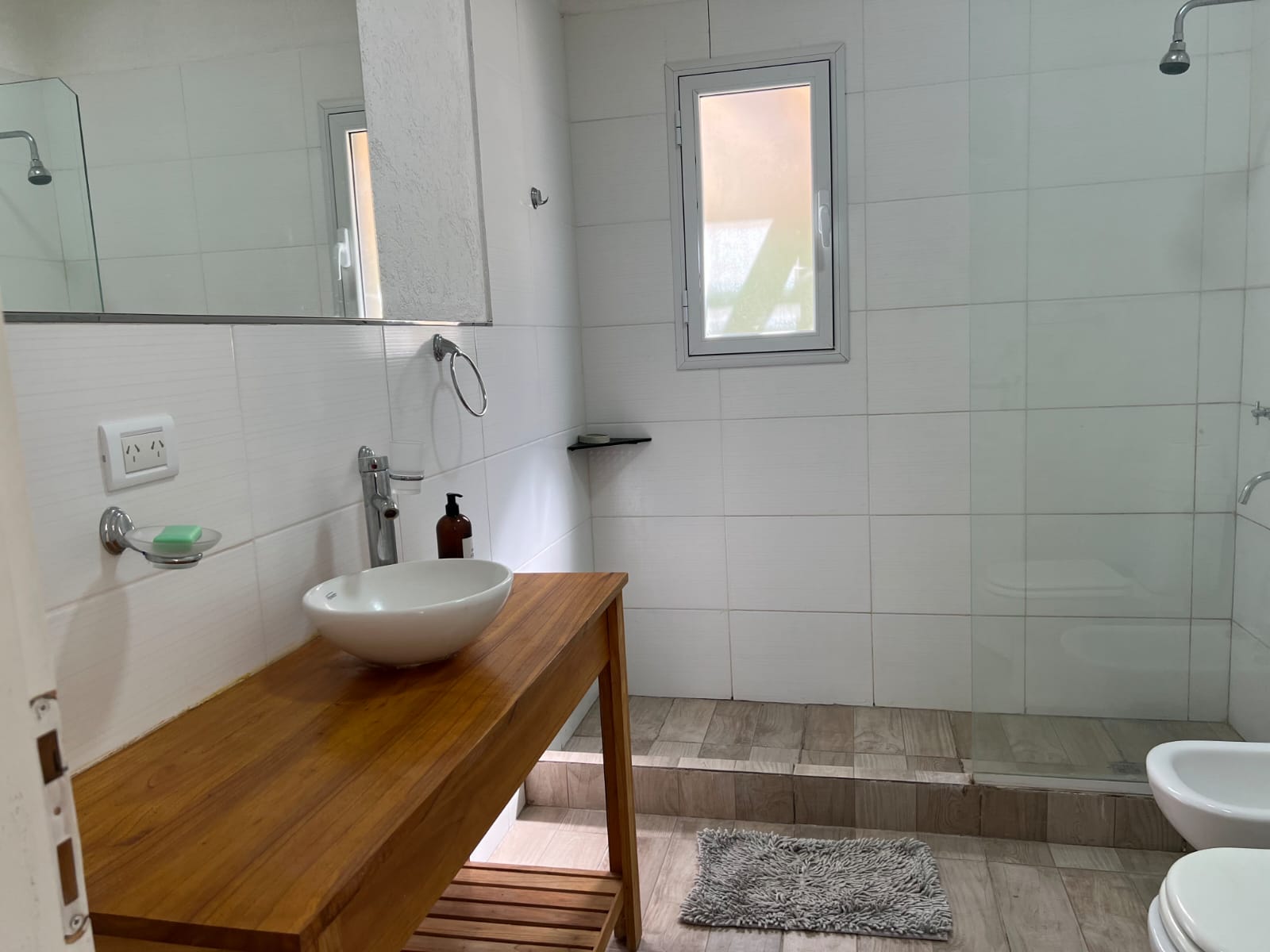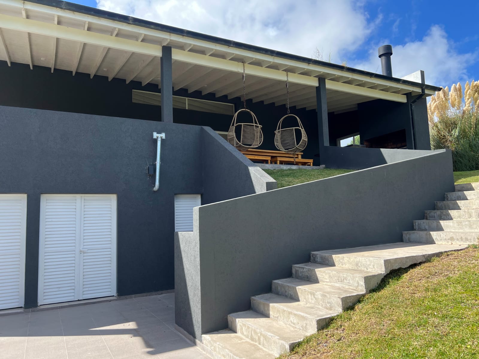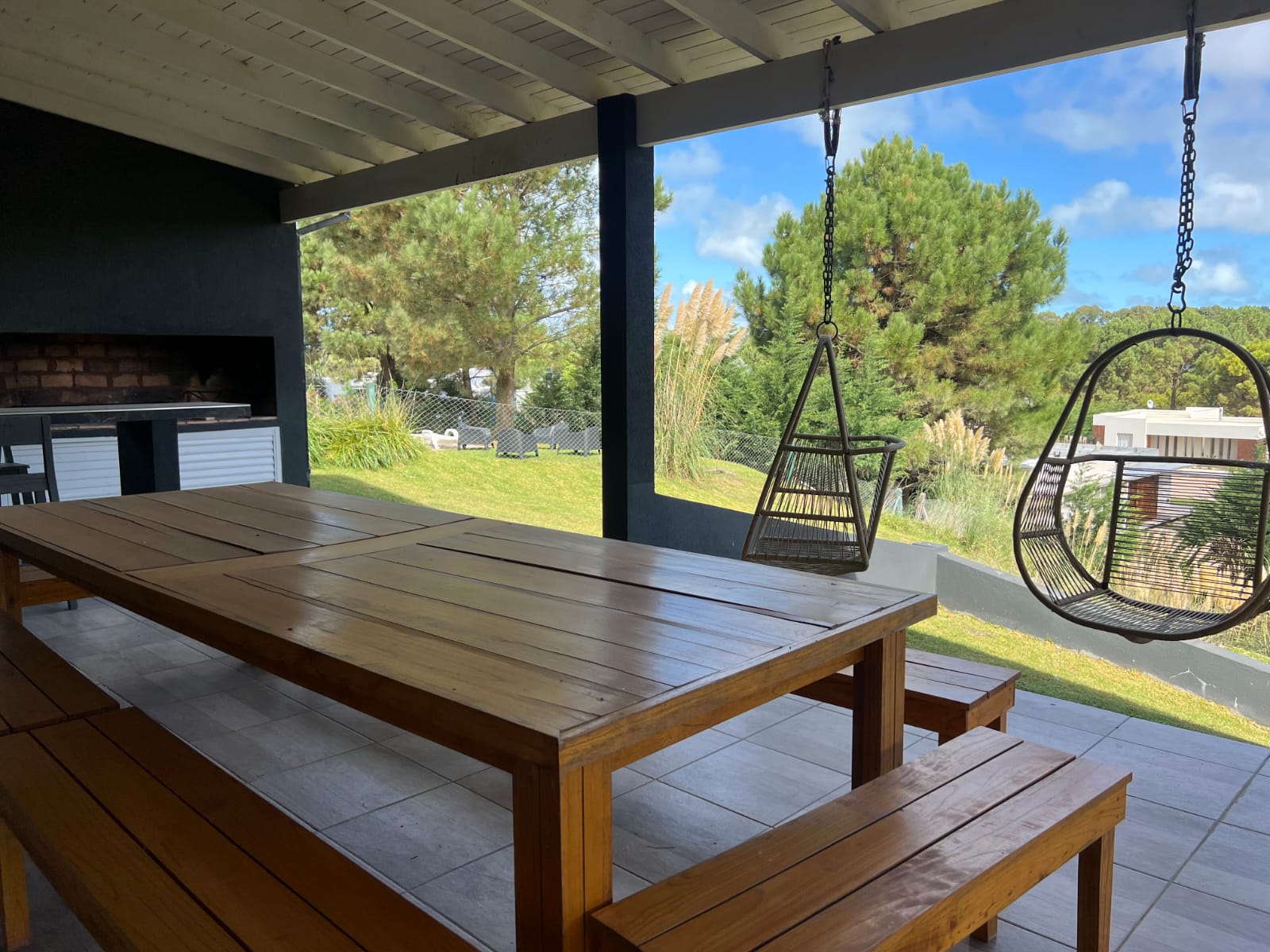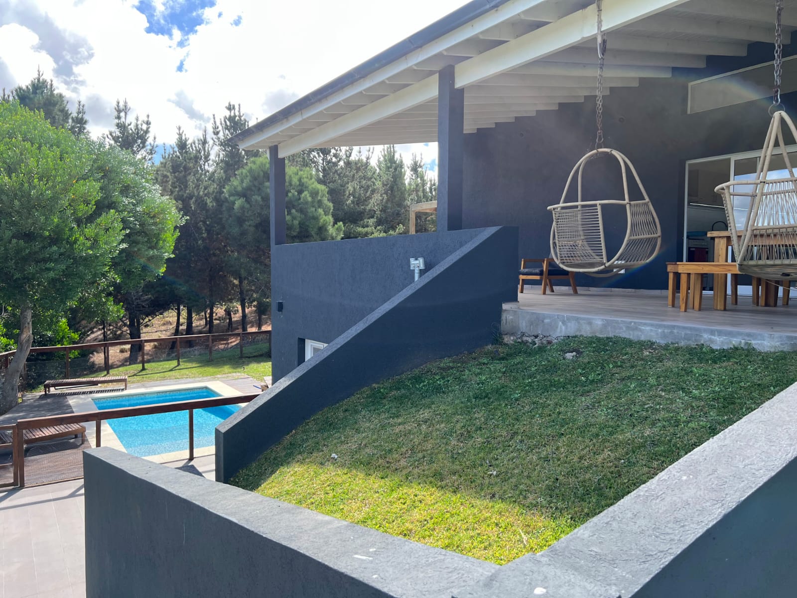 Tres dormitorios en suite y un cuarto dormitorio con baño .Mas una dependencia con cucheta afuera de la casa y un baño.