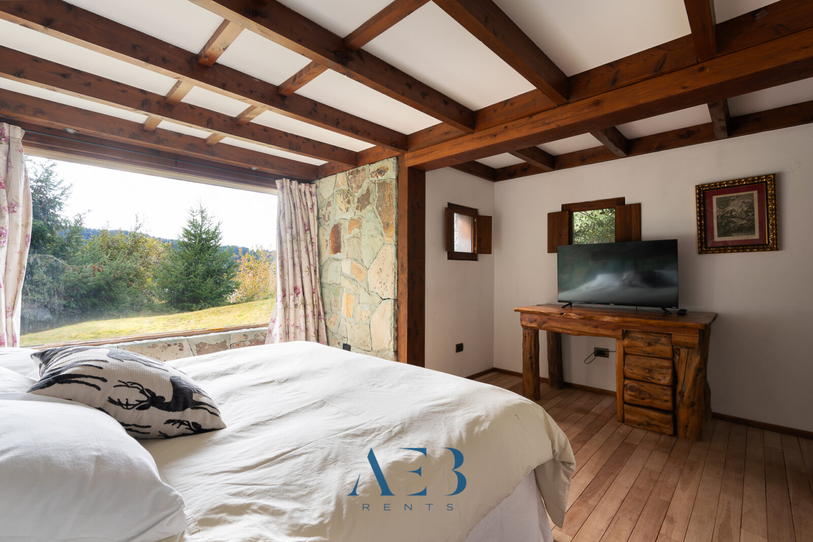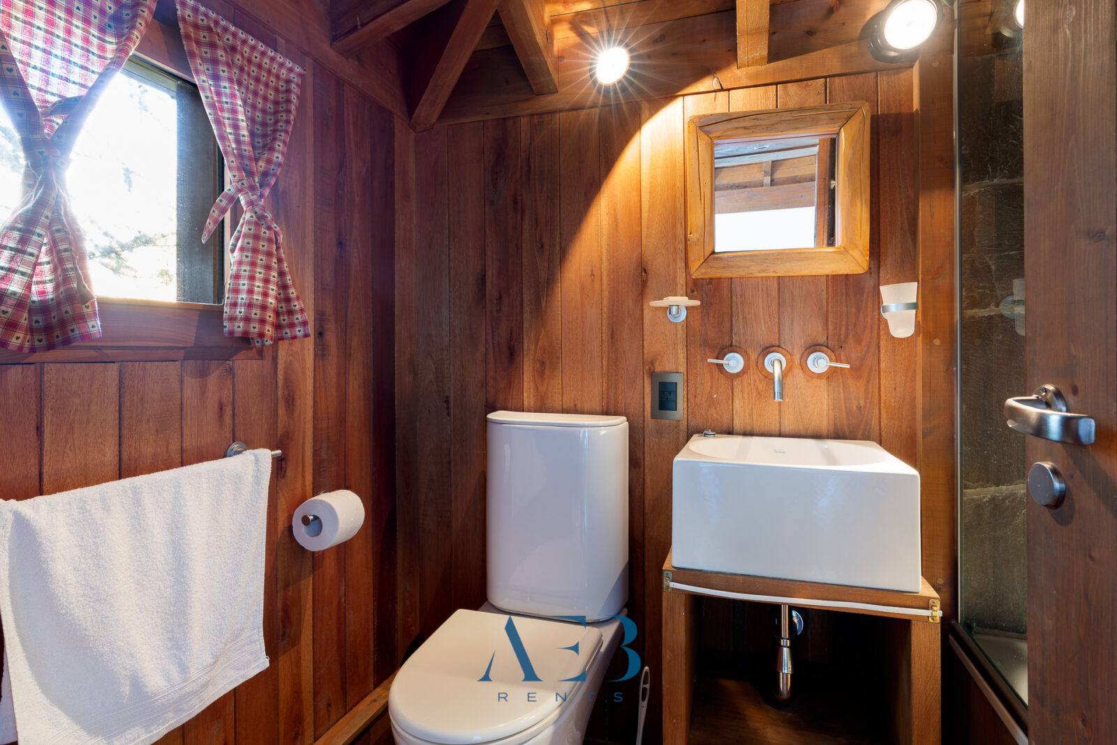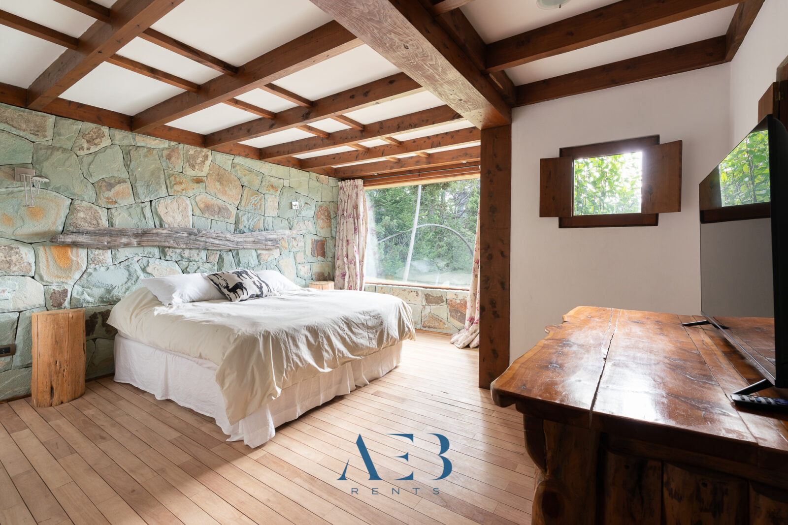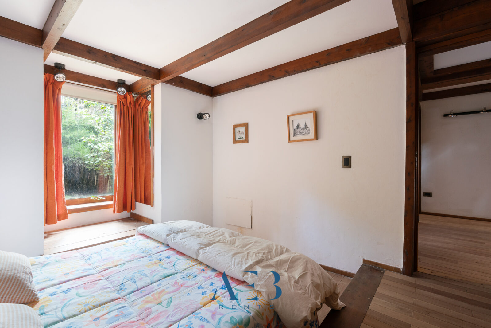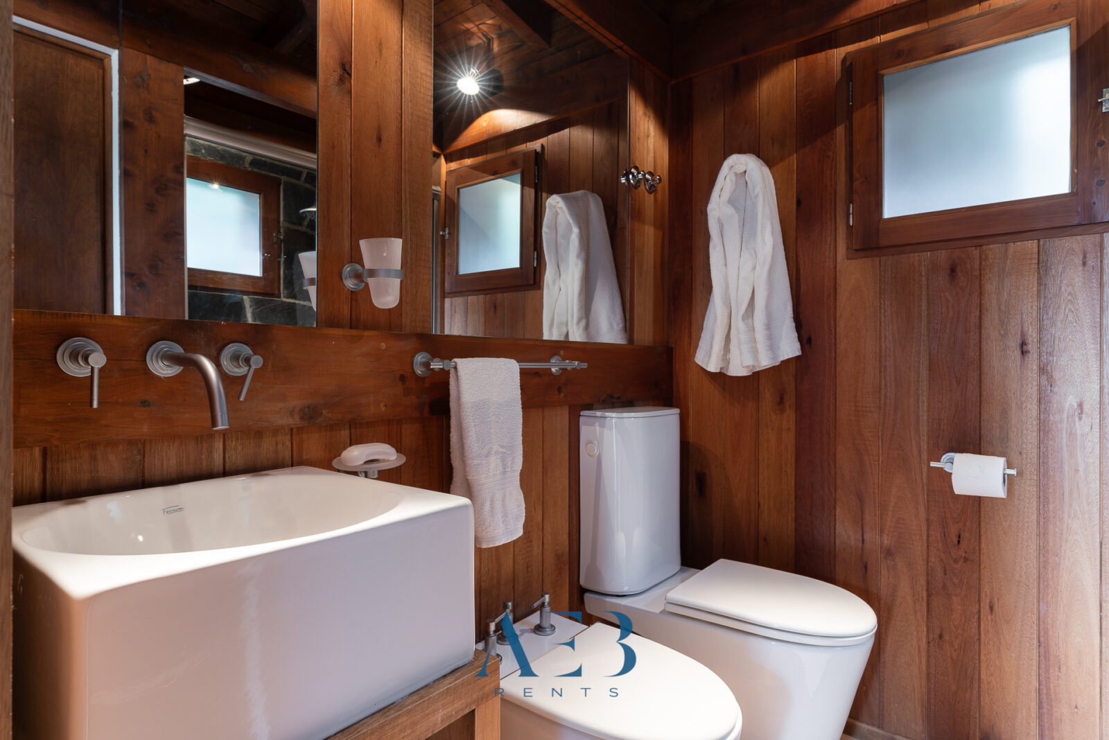 Hacia abajo se encuentran las otras dos habitaciones en suite, una de ellas siendo la principal con cama matrimonial y la otra con opción de cama simple o doble. Además hay una habitación pequeña más.