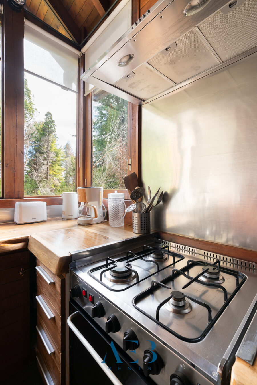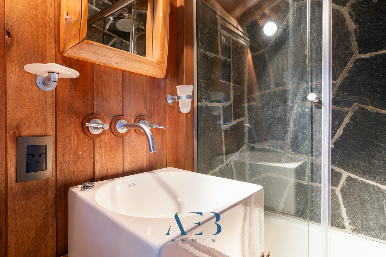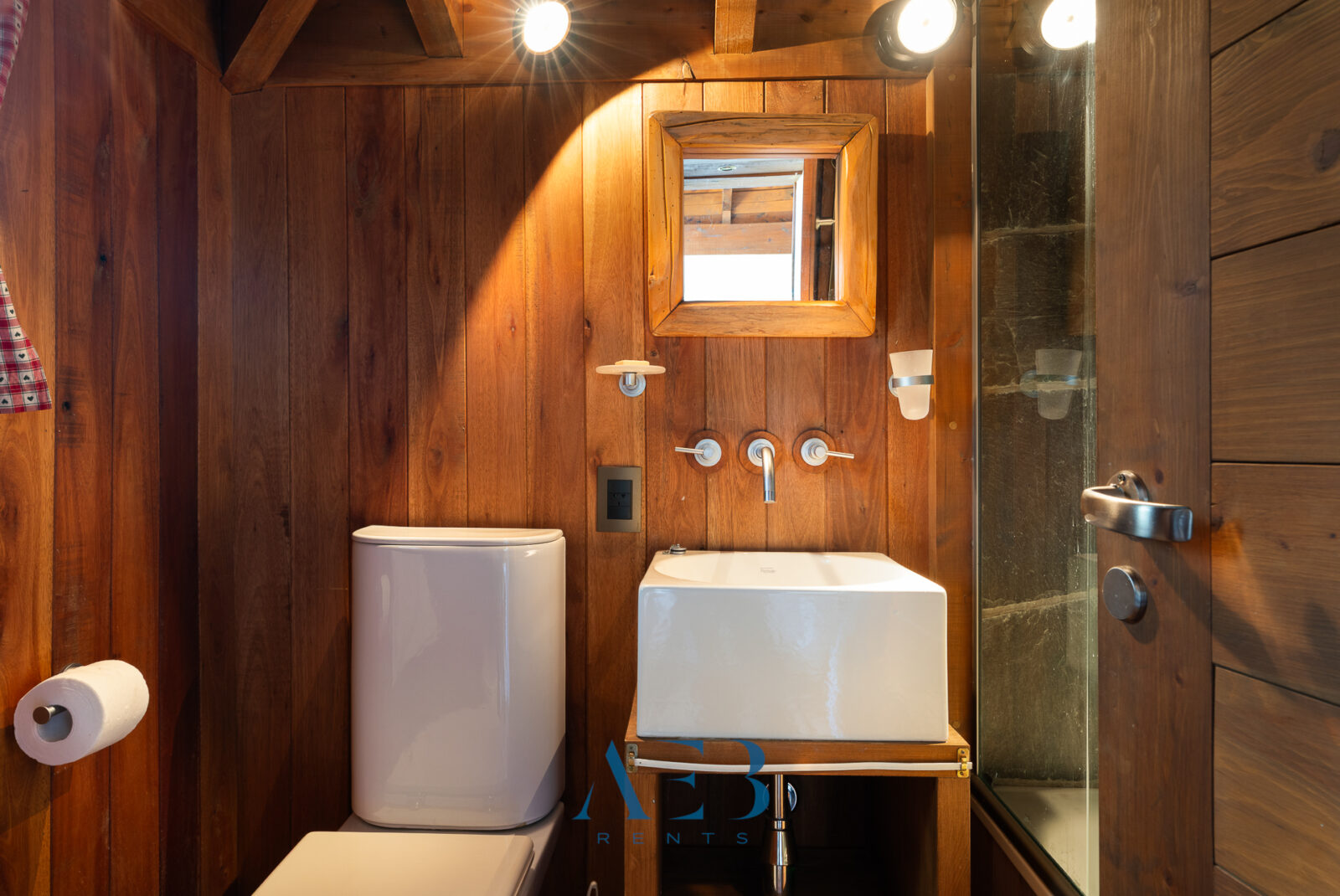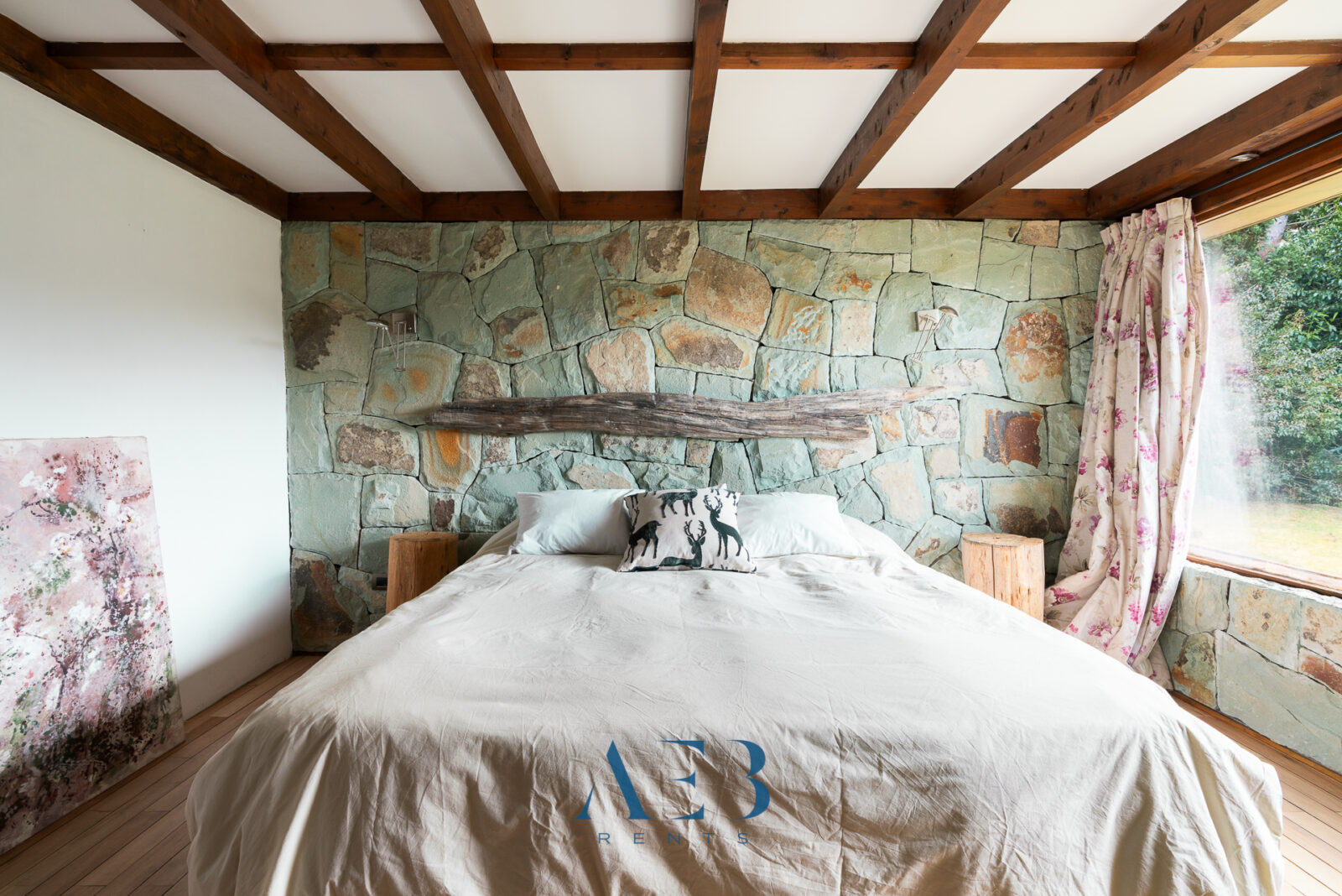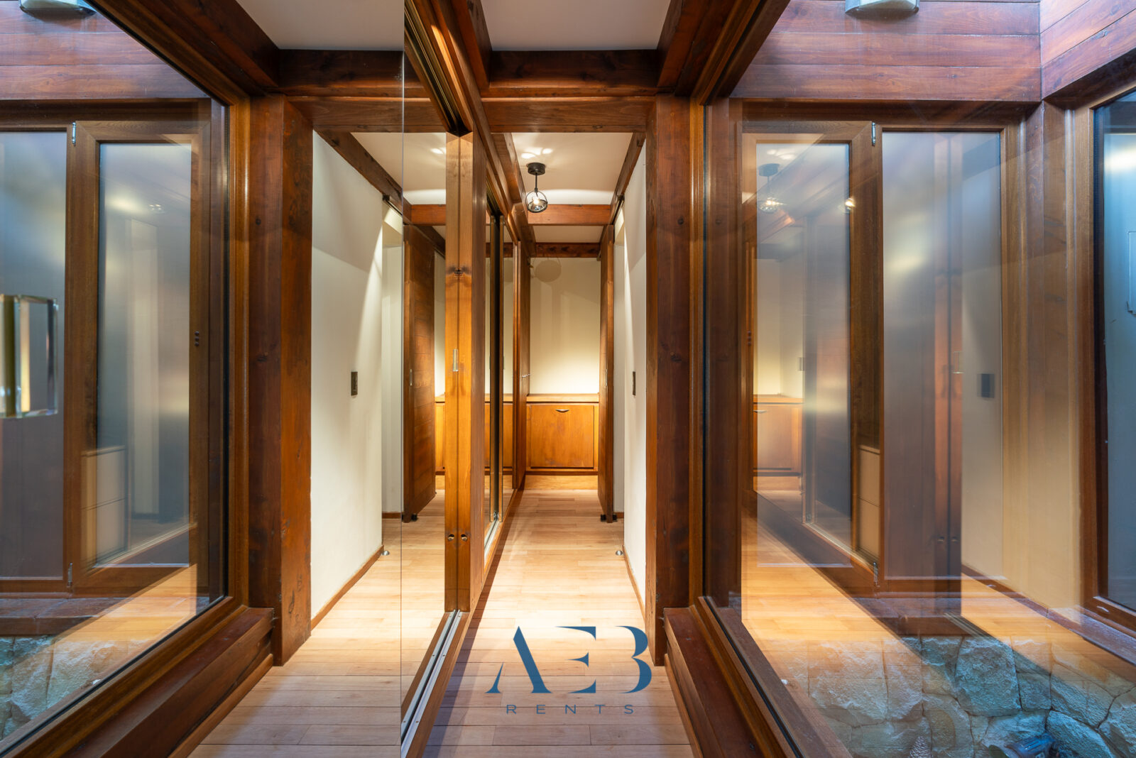 Hacia abajo se encuentran las otras dos habitaciones en suite, una de ellas siendo la principal con cama matrimonial y la otra con opción de cama simple o doble. Además hay una habitación pequeña más.