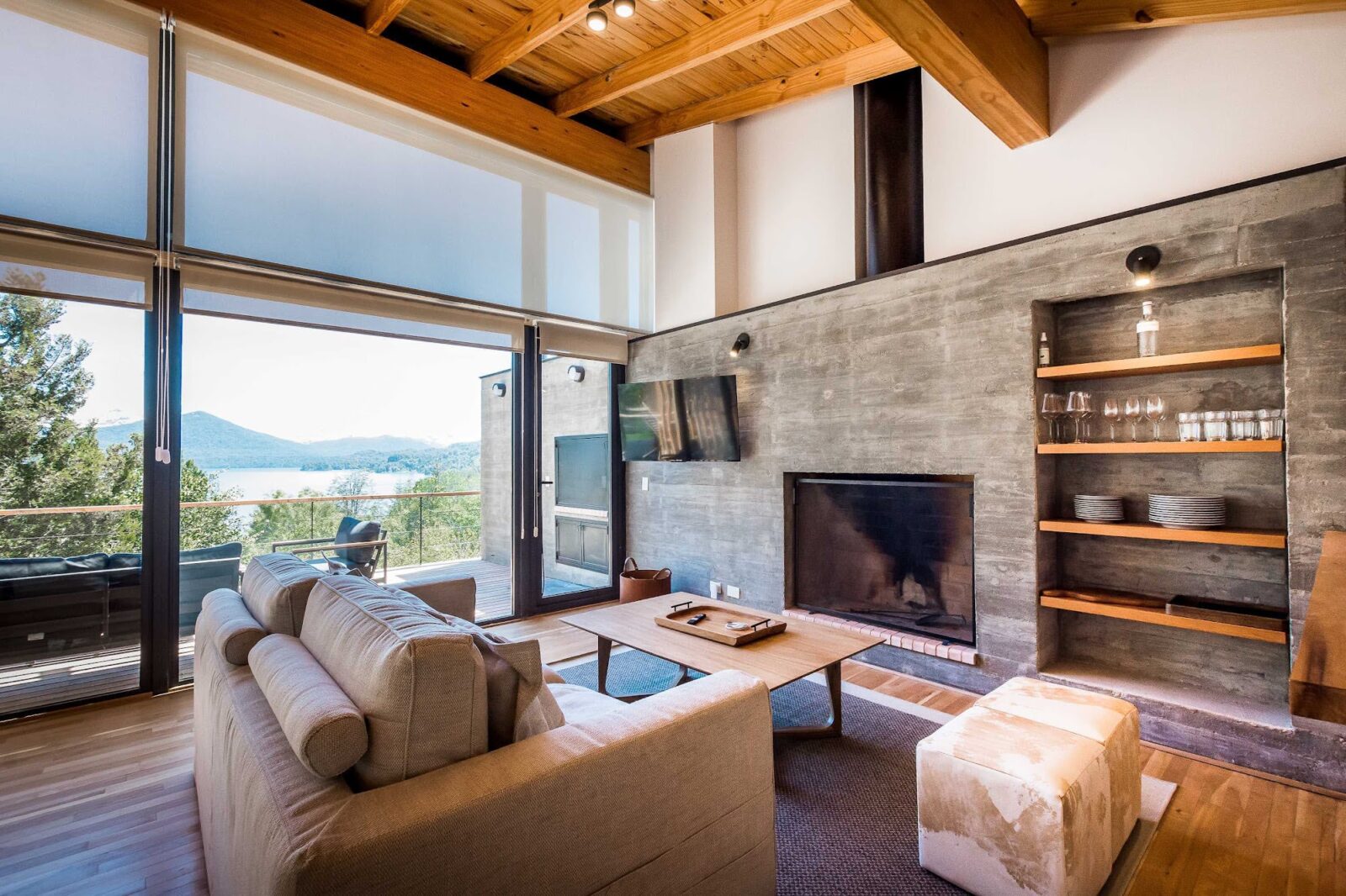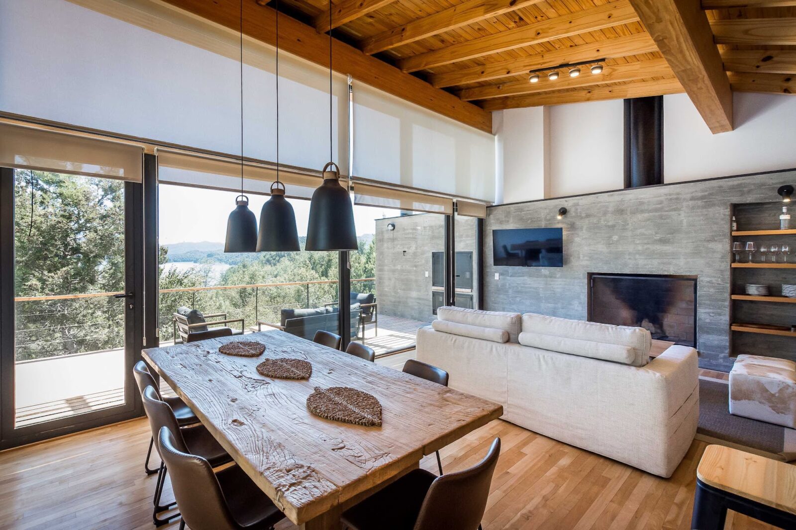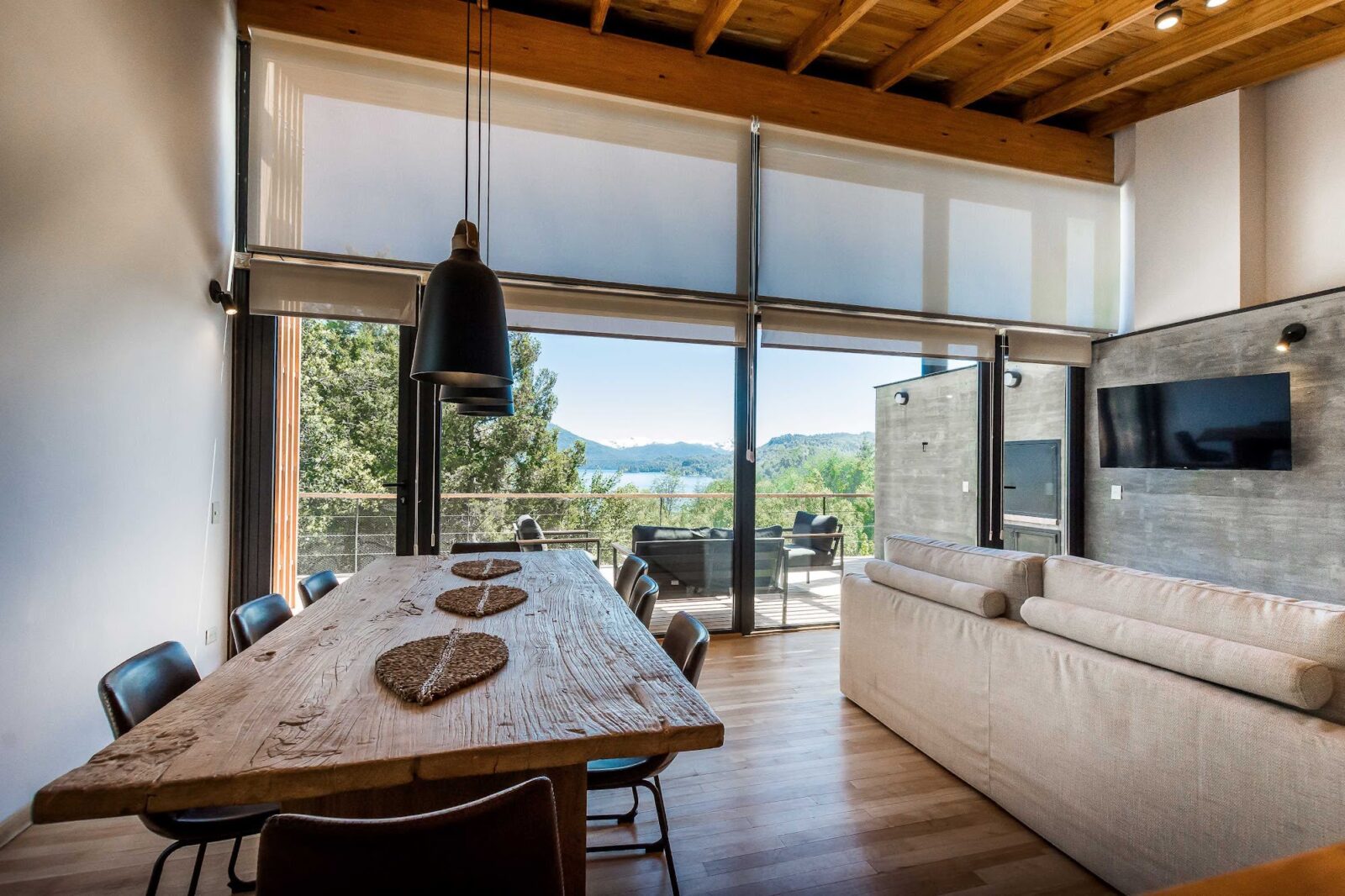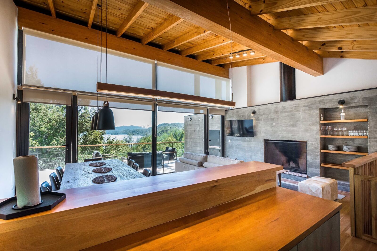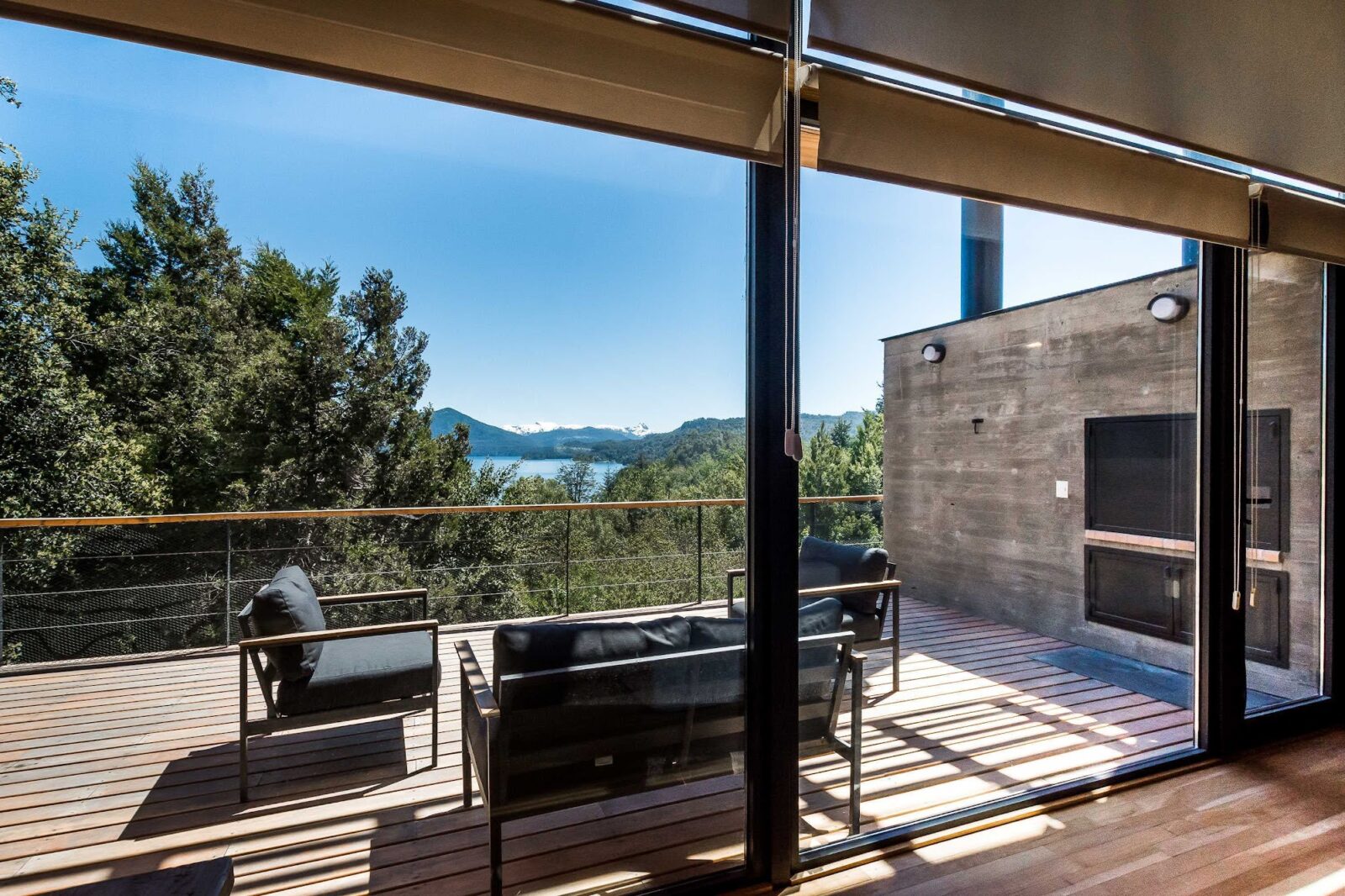 Moderna propiedad ubicada dentro de un barrio privado residencial al que se accede por portón eléctrico y se encuentra frente al lago Nahuel Huapi.