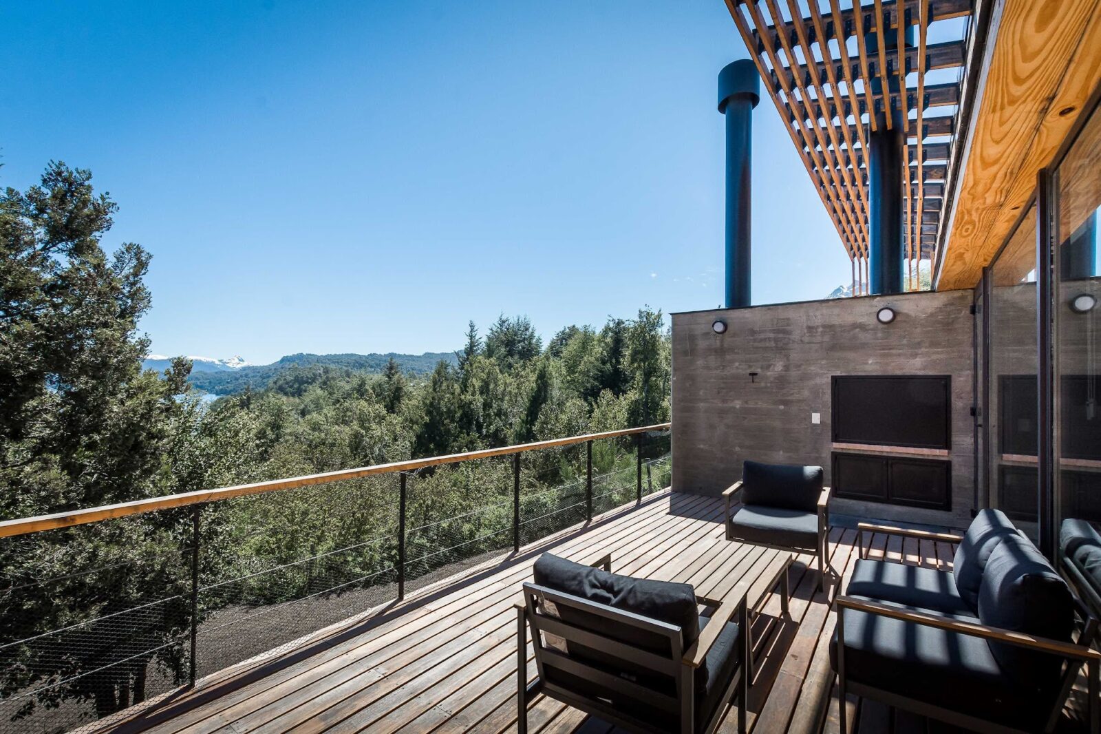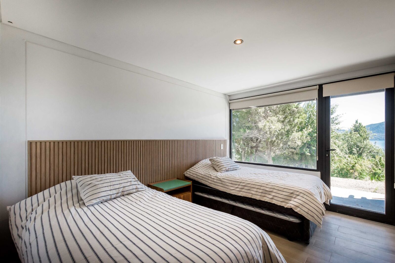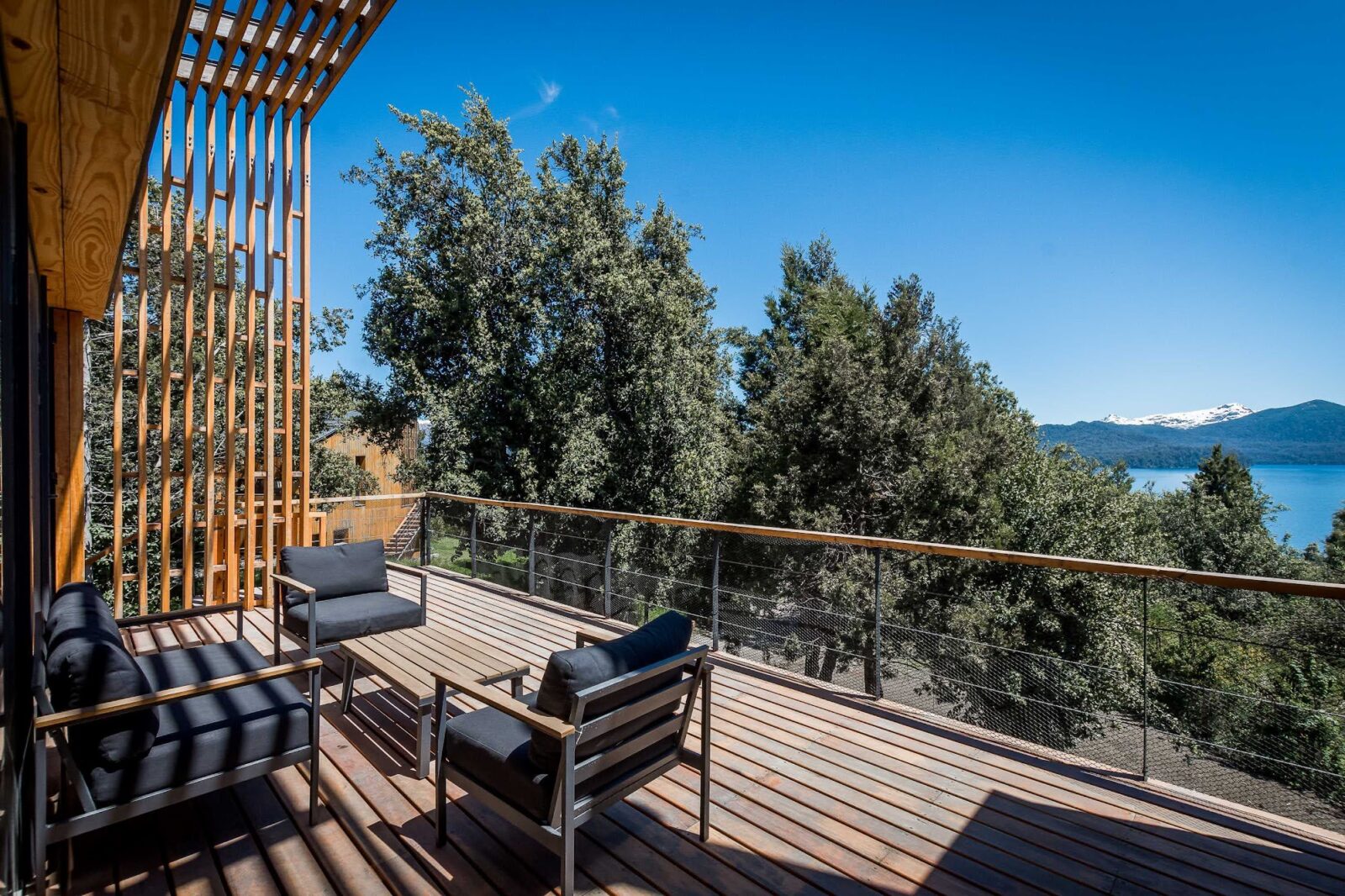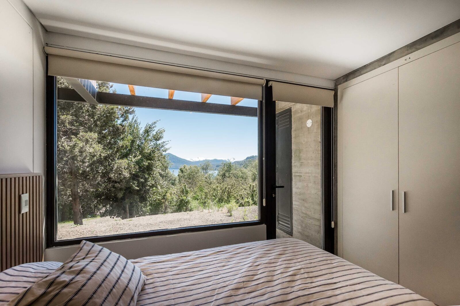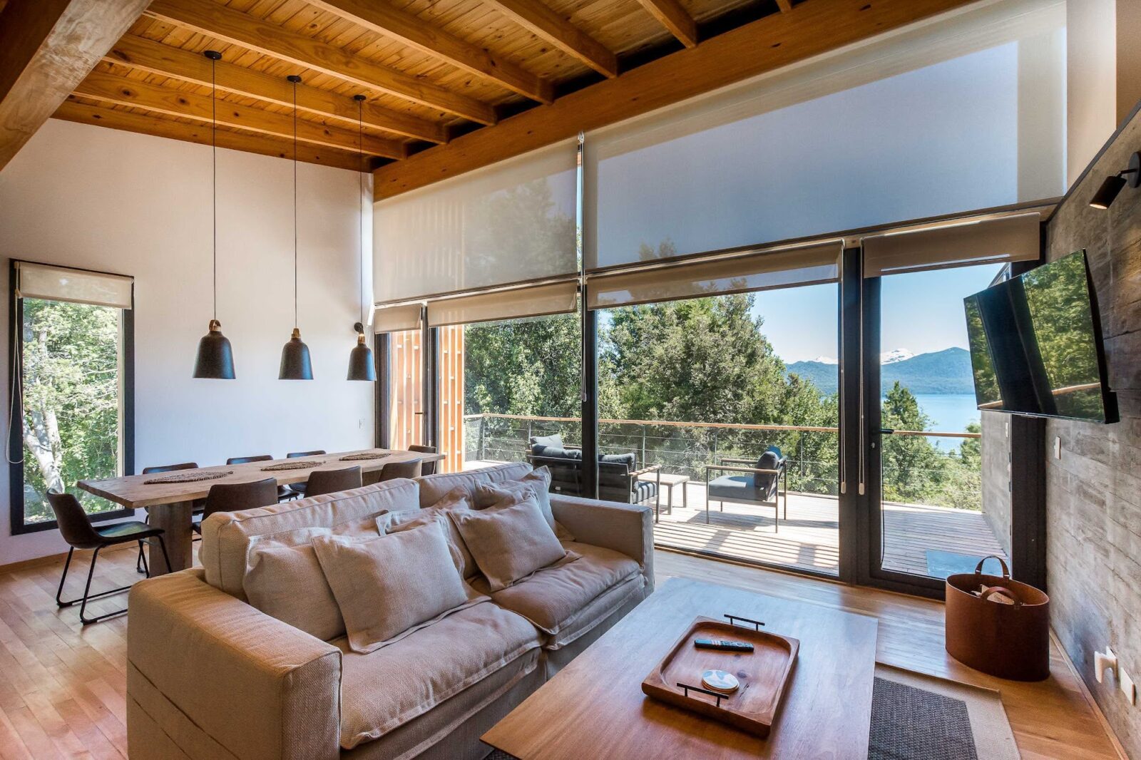 Moderna propiedad ubicada dentro de un barrio privado residencial al que se accede por portón eléctrico y se encuentra frente al lago Nahuel Huapi.