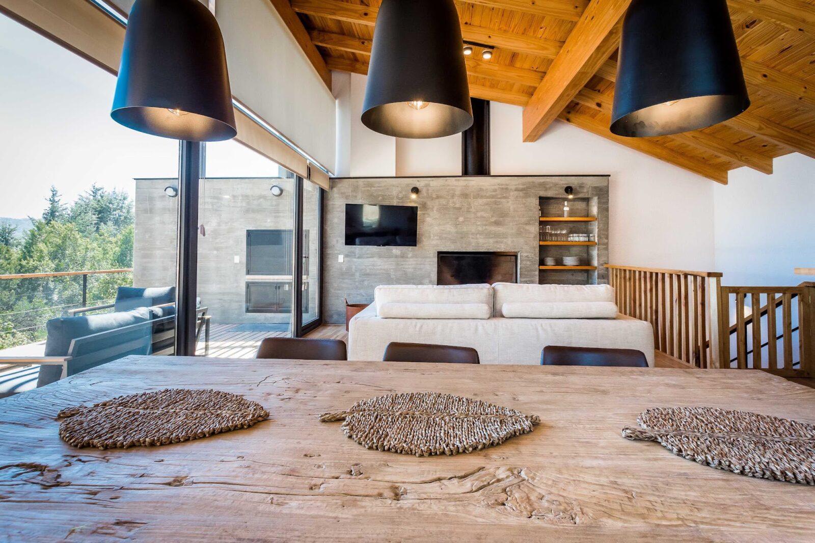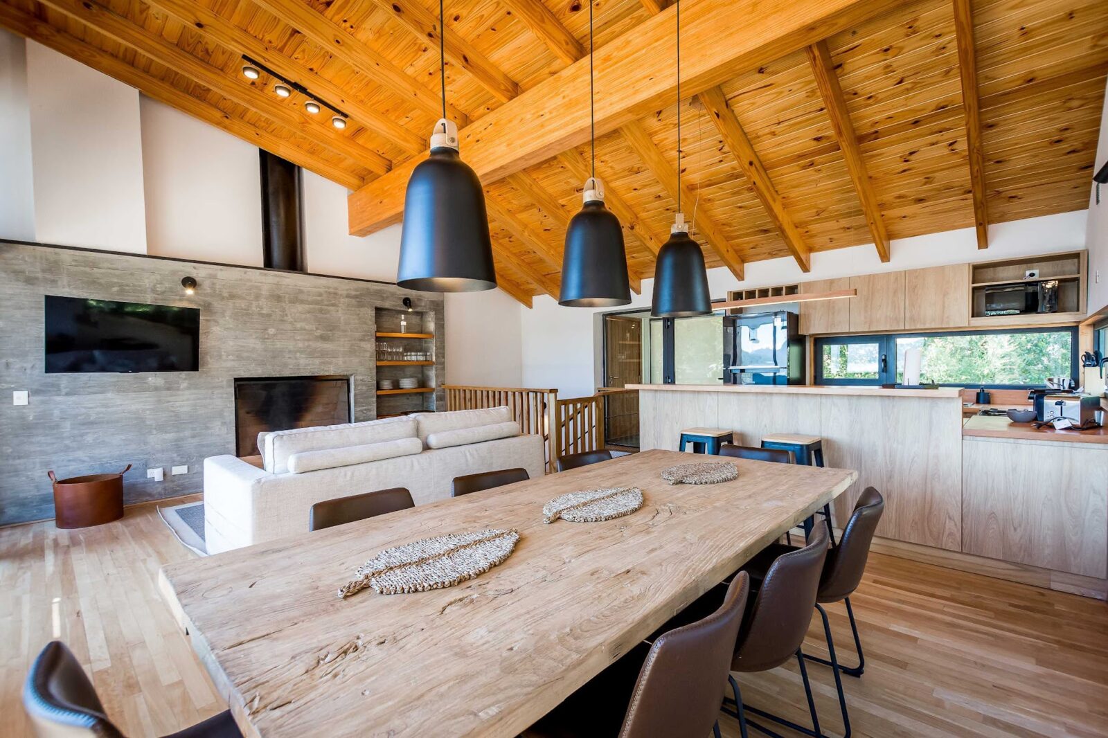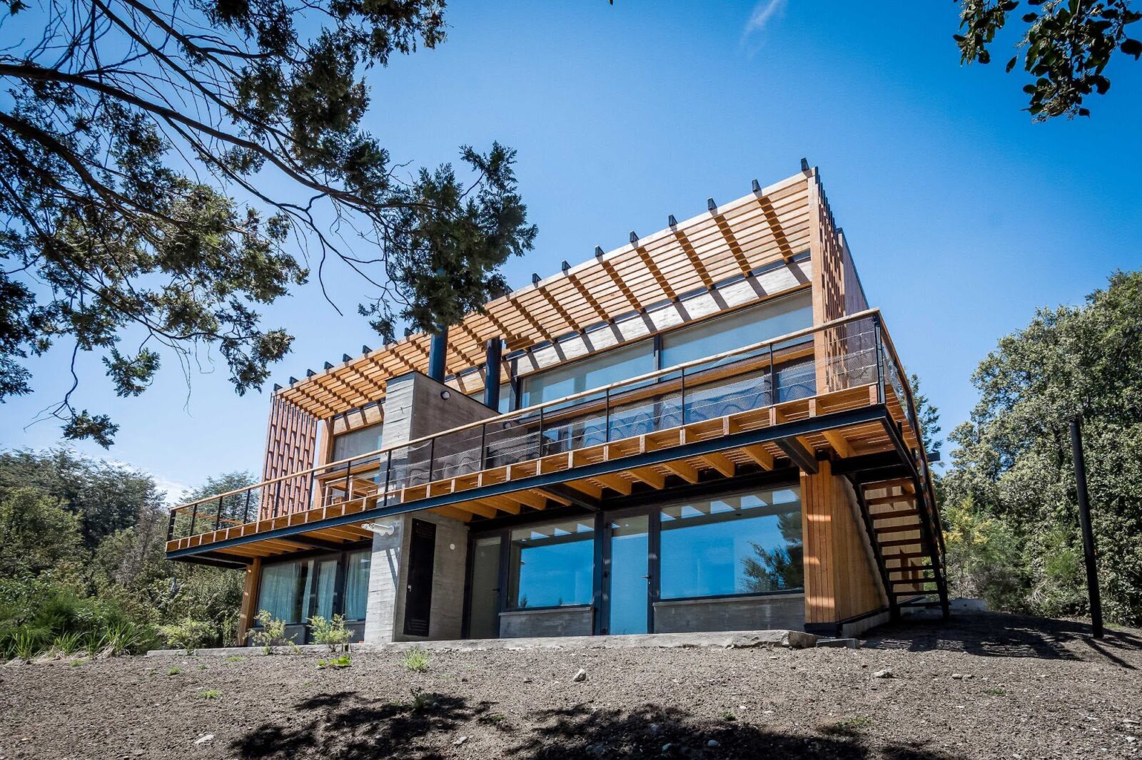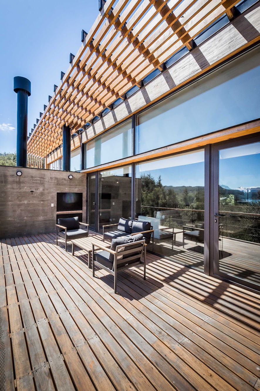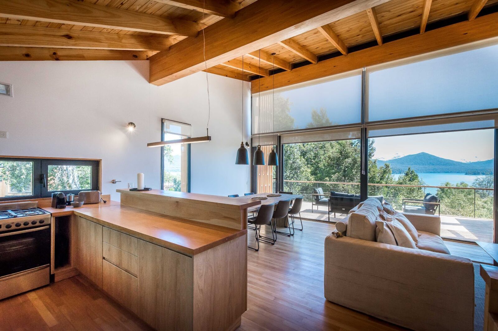Moderna propiedad ubicada dentro de un barrio privado residencial al que se accede por portón eléctrico y se encuentra frente al lago Nahuel Huapi.