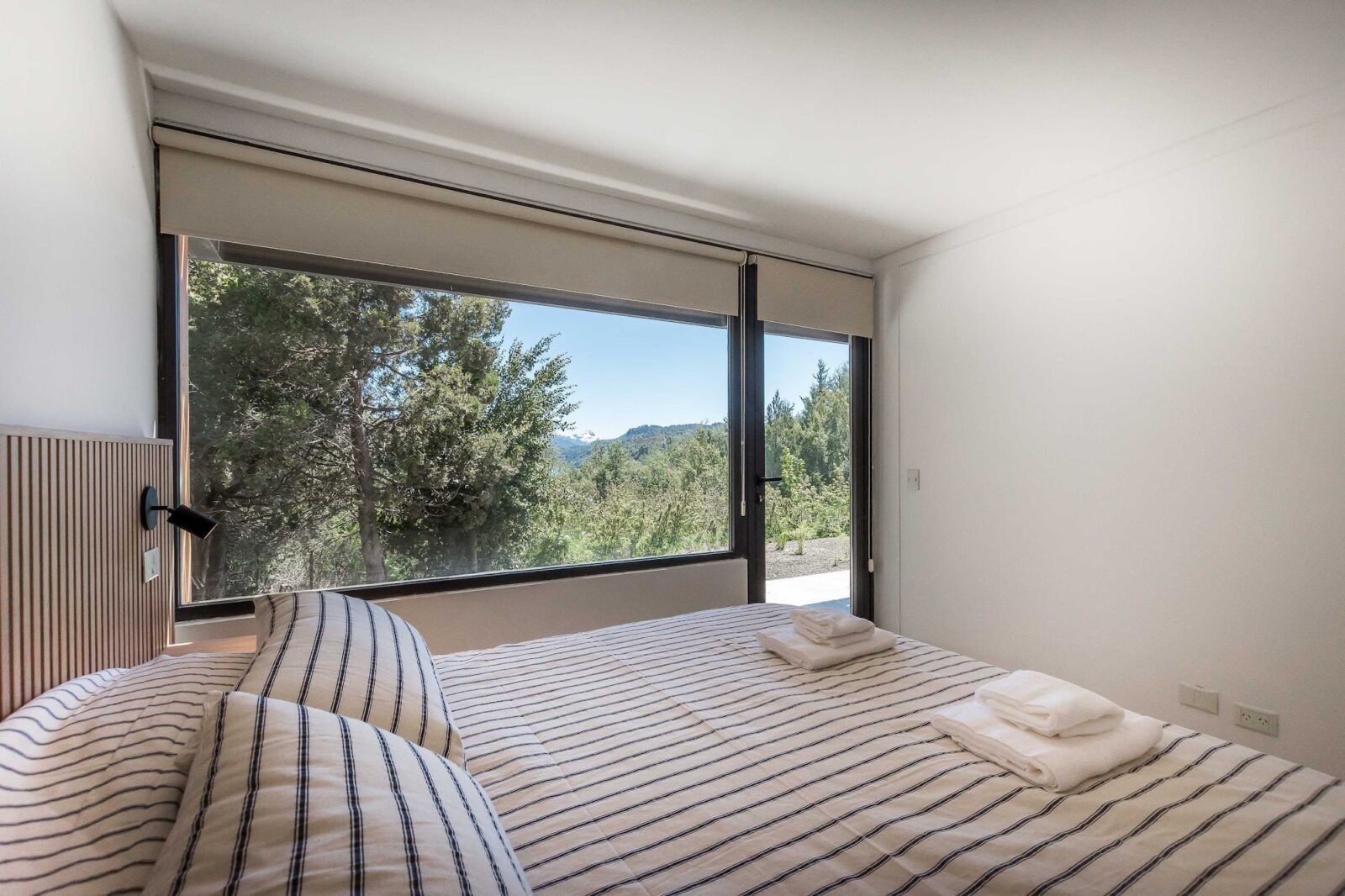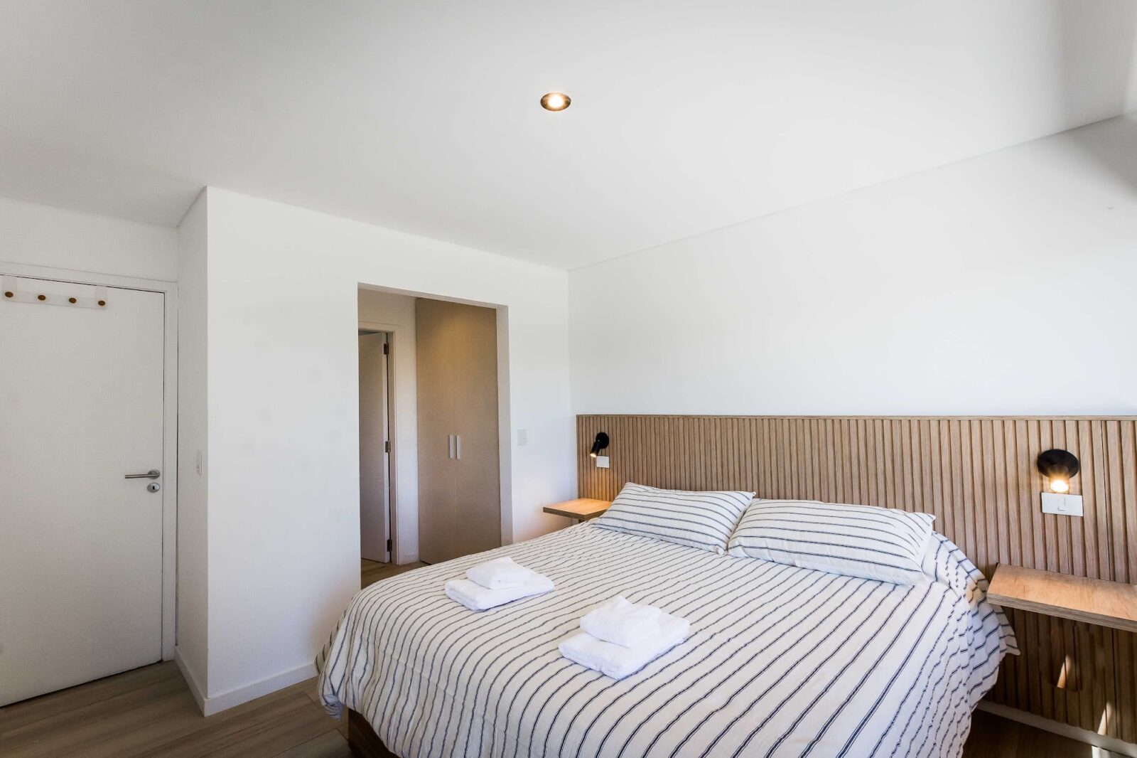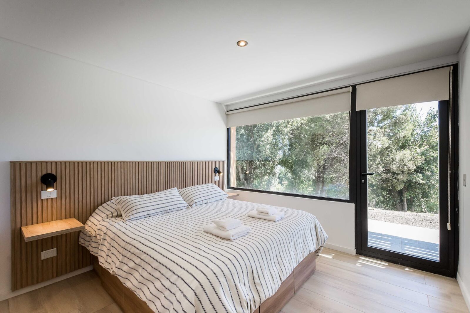La casa tiene capacidad para 6 huéspedes. Cuenta con un dormitorio matrimonial con vestidor y baño completo en suite. Y otro dormitorio con 2 camas singles. sofá cama en la zona de estar.