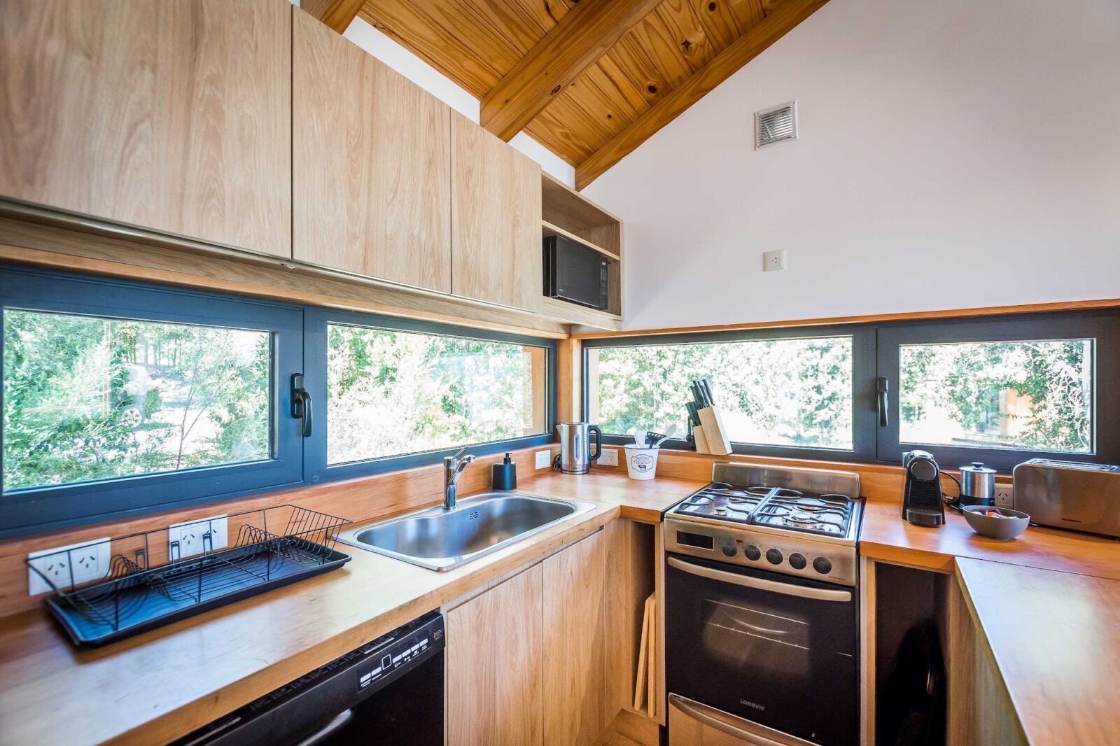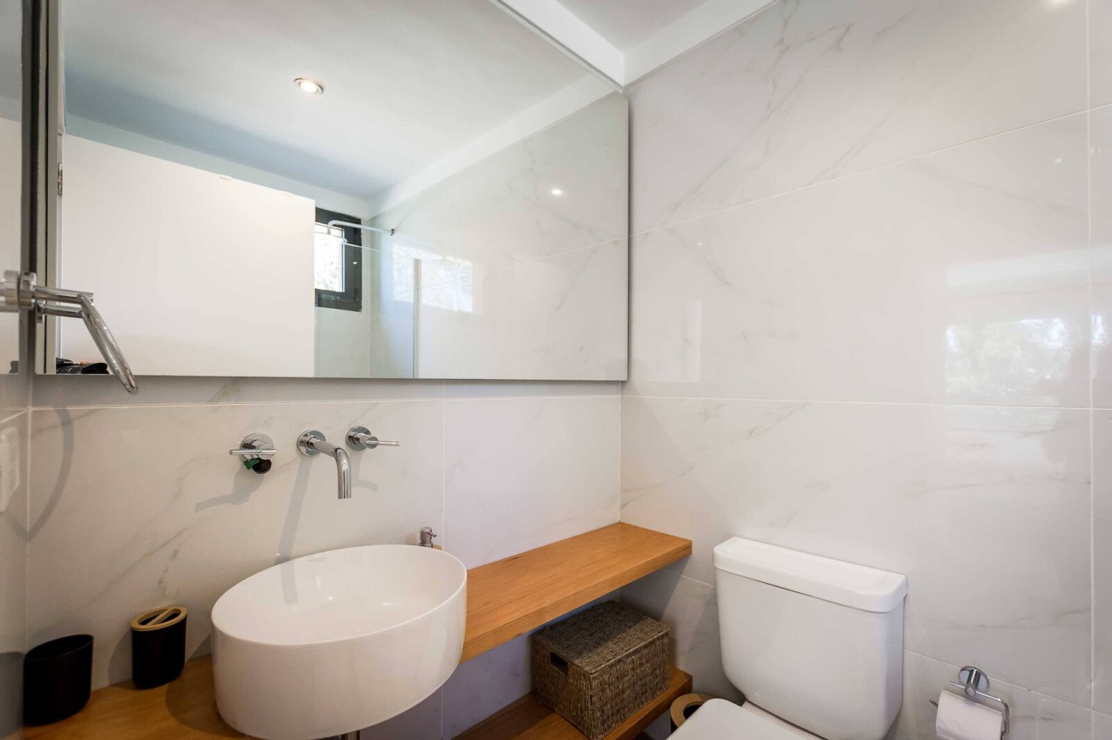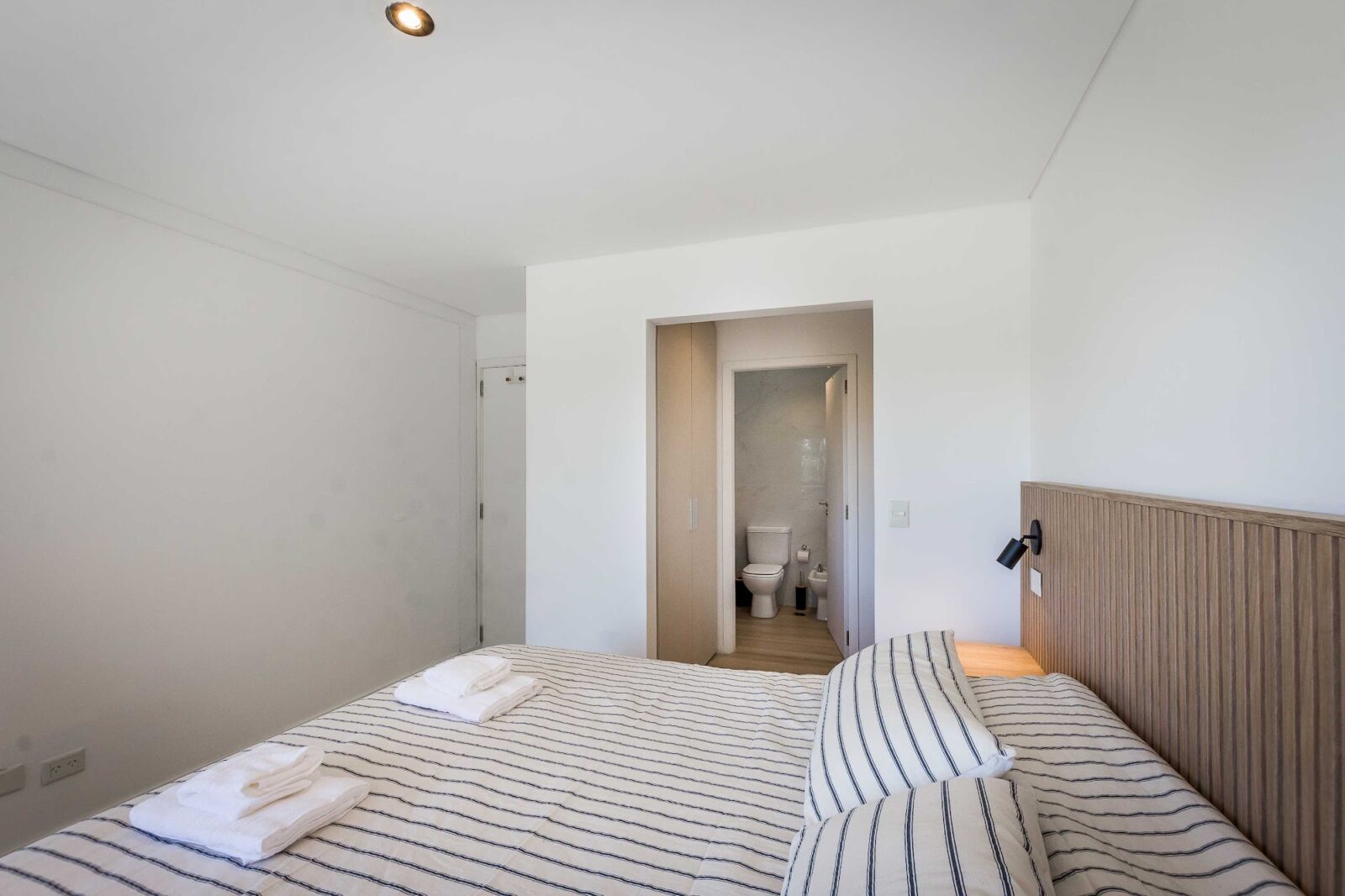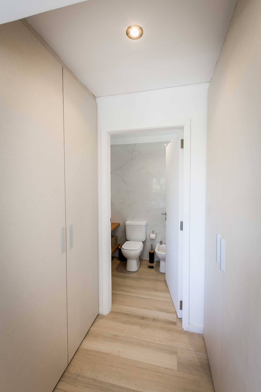 La casa tiene capacidad para 6 huéspedes. Cuenta con un dormitorio matrimonial con vestidor y baño completo en suite. Y otro dormitorio con 2 camas singles. sofá cama en la zona de estar.