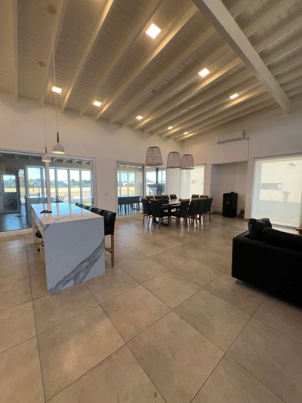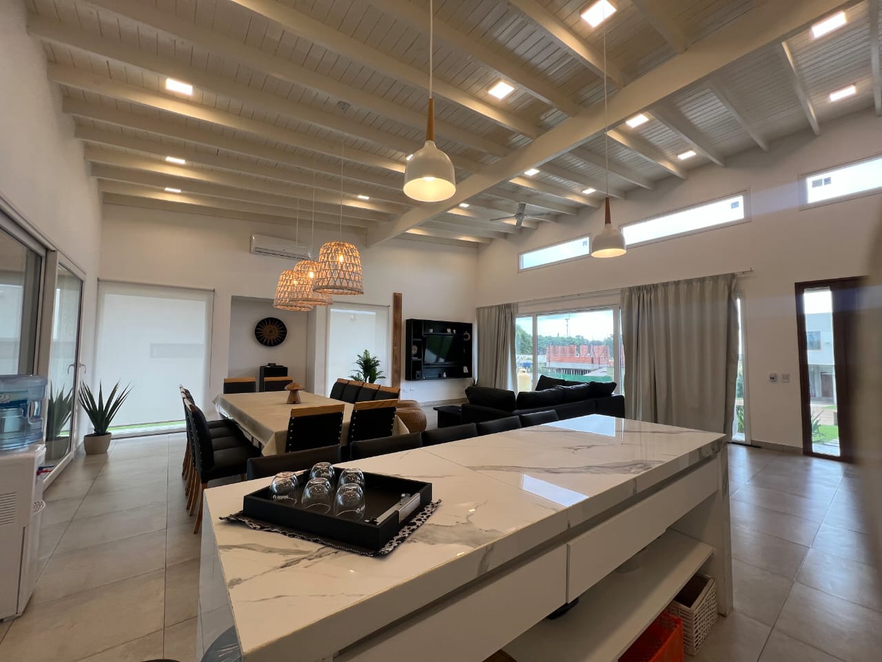 Amplio living comedor con aire acondicionado.