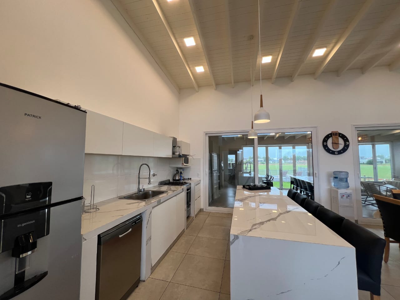 Cocina completa integrada con lavavajillas y barra desayunador.