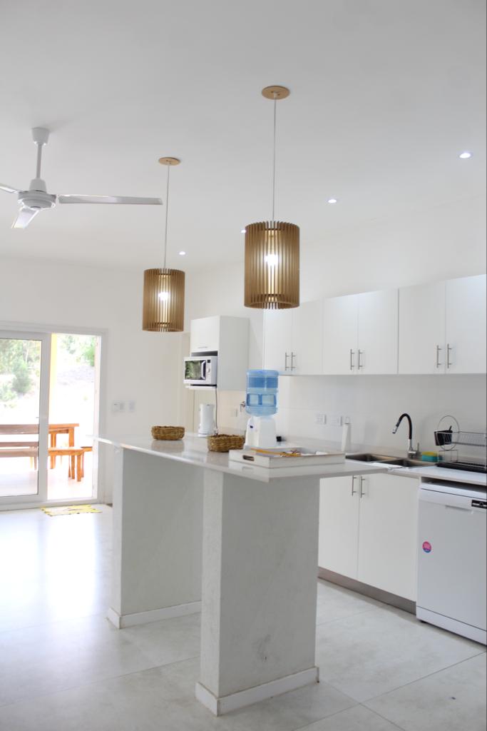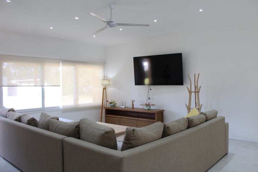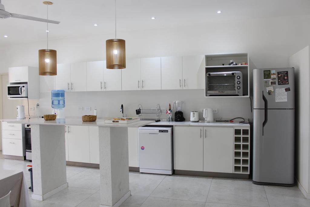 Cinco dormitorios y cuarto baños completos. Cuatro de los dormitorios con cama matrimonial y un dormitorio con tres camas individuales con posibilidad de anexar dos colchones para dos huéspedes mas.