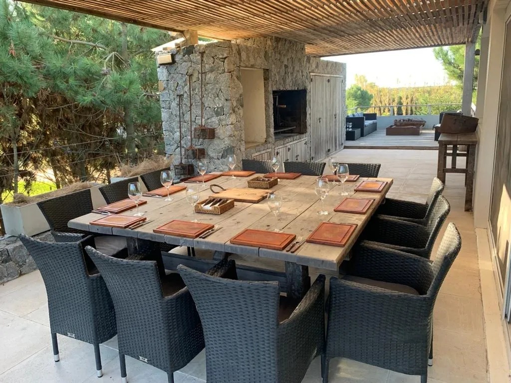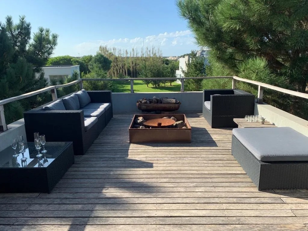 BALCON con vista al fondo de la casa (PARQUE, PISCINA, QUINCHO, CANCHA DE GOLF y FOGÓN)