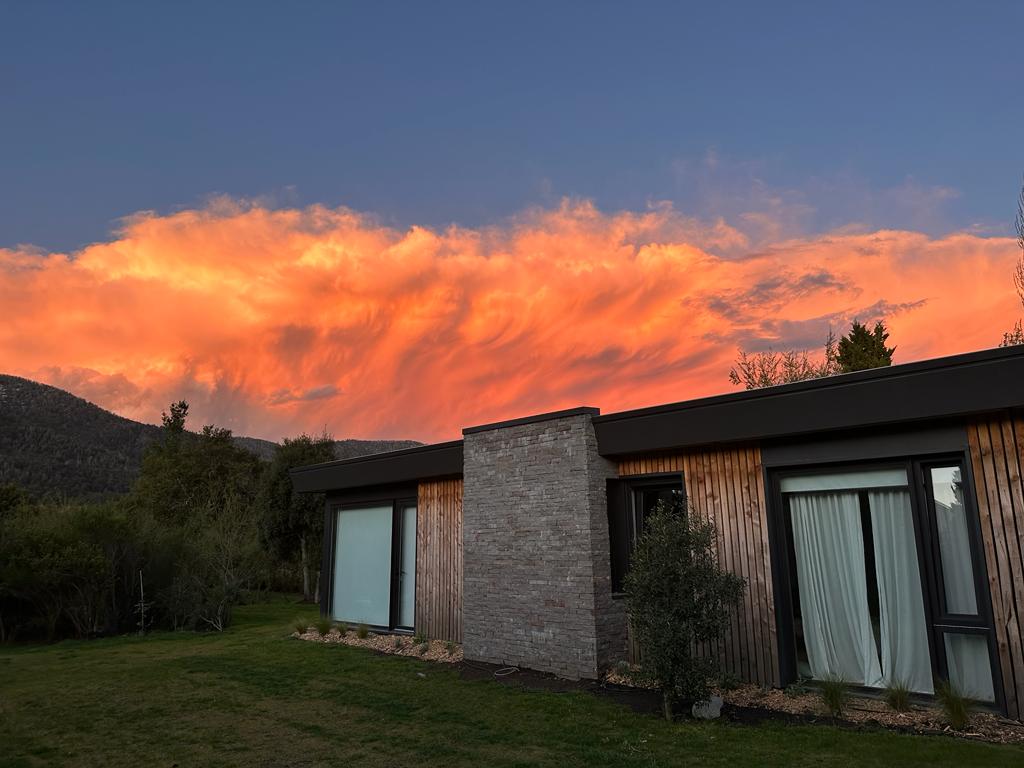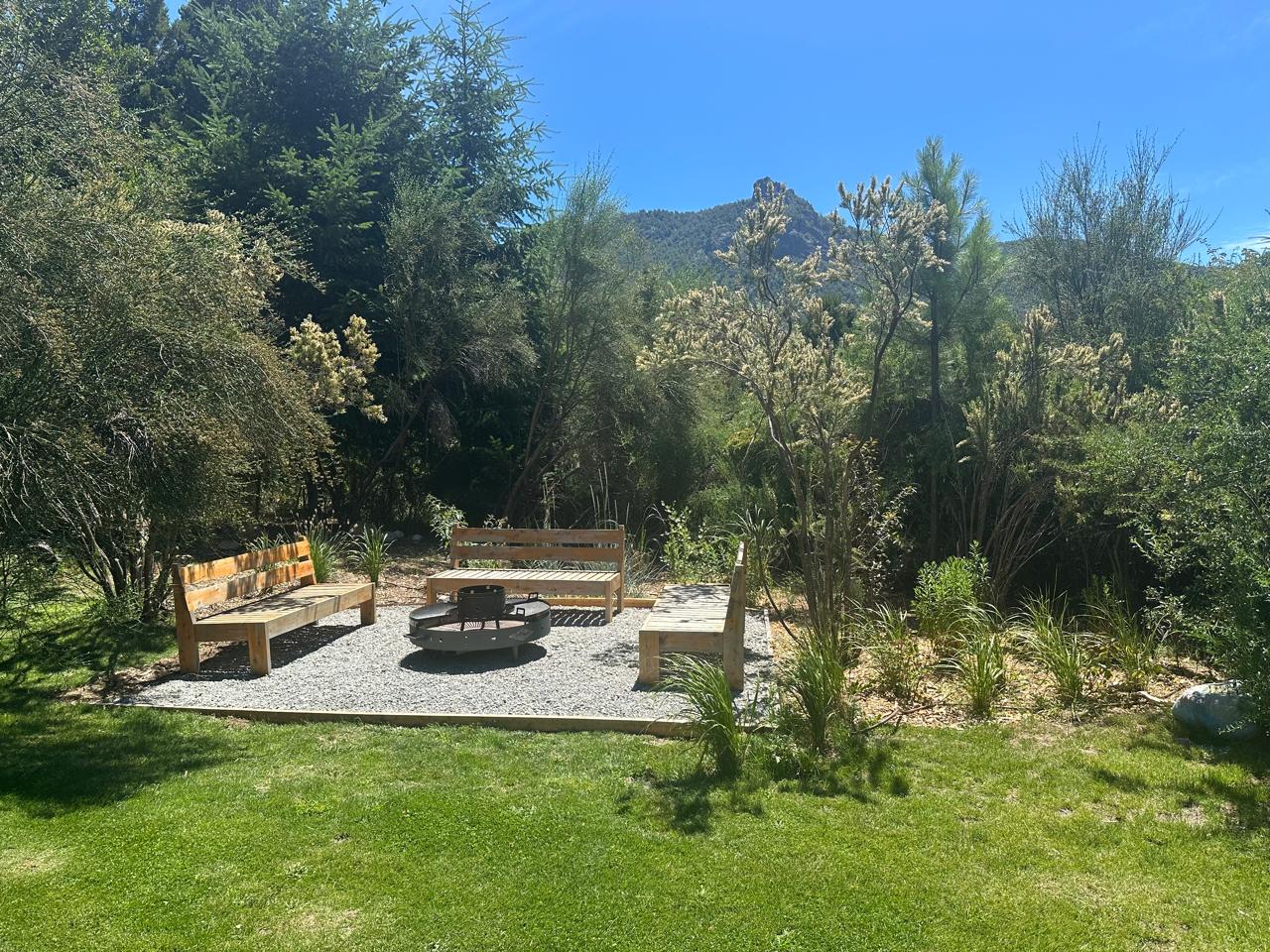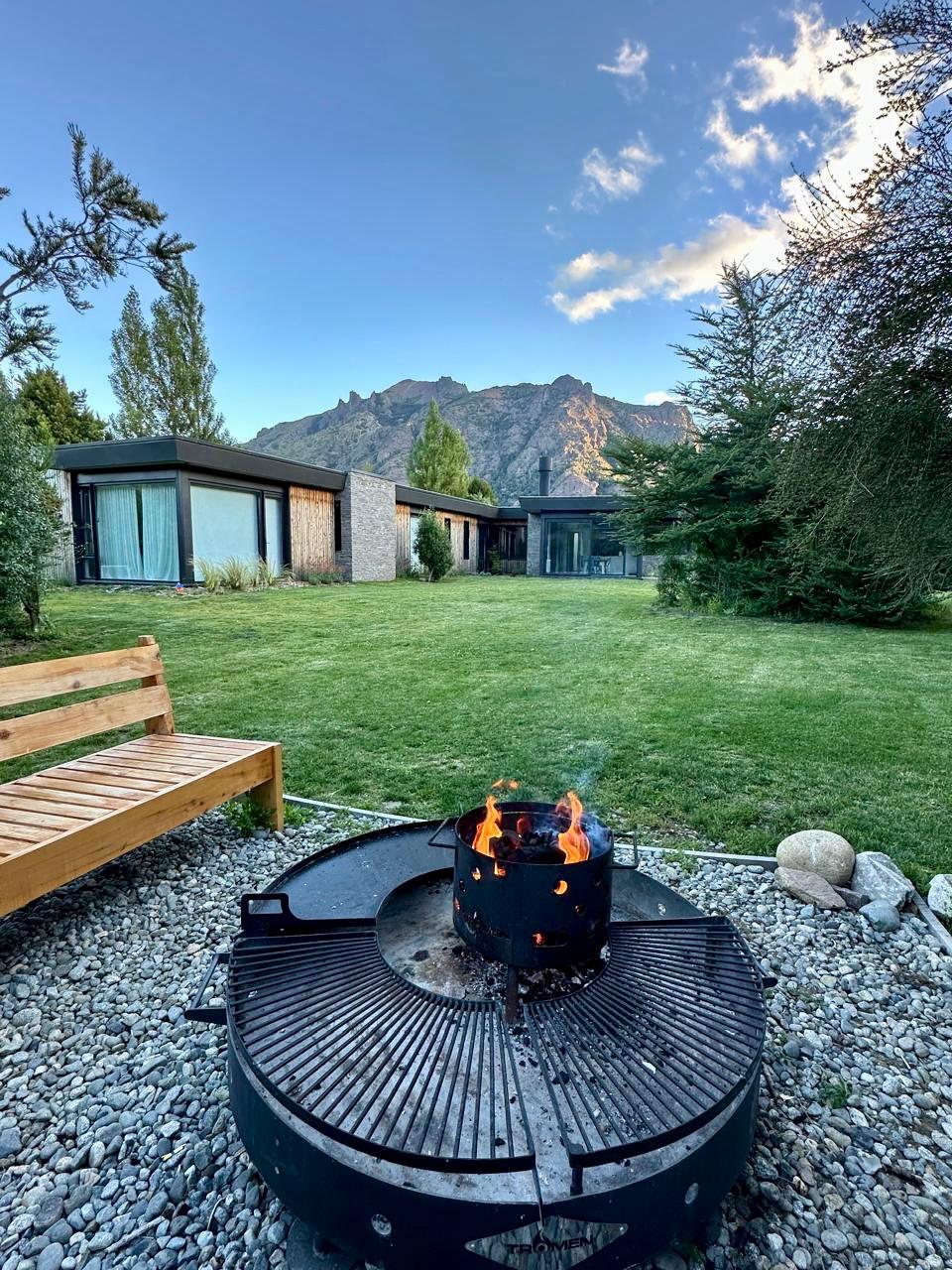Fogonero exterior con un cálido espacio de living para reuniones al aire libre.