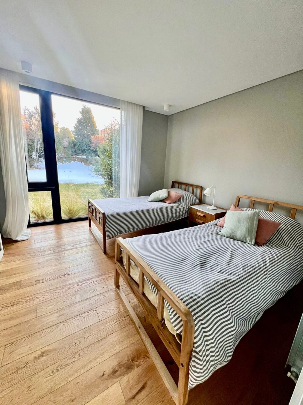 Dos dormitorios secundarios con dos camas cada uno, también con baño en suite.