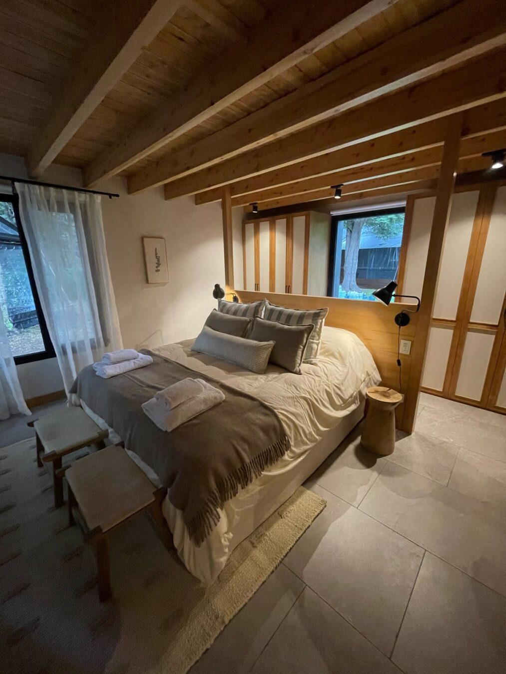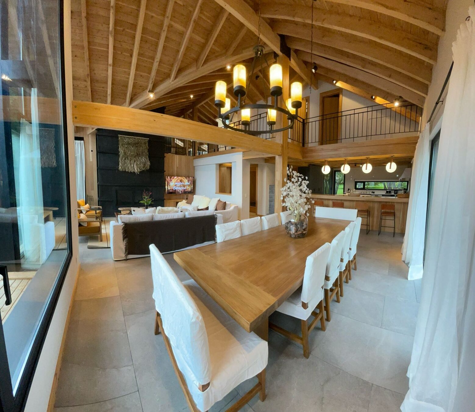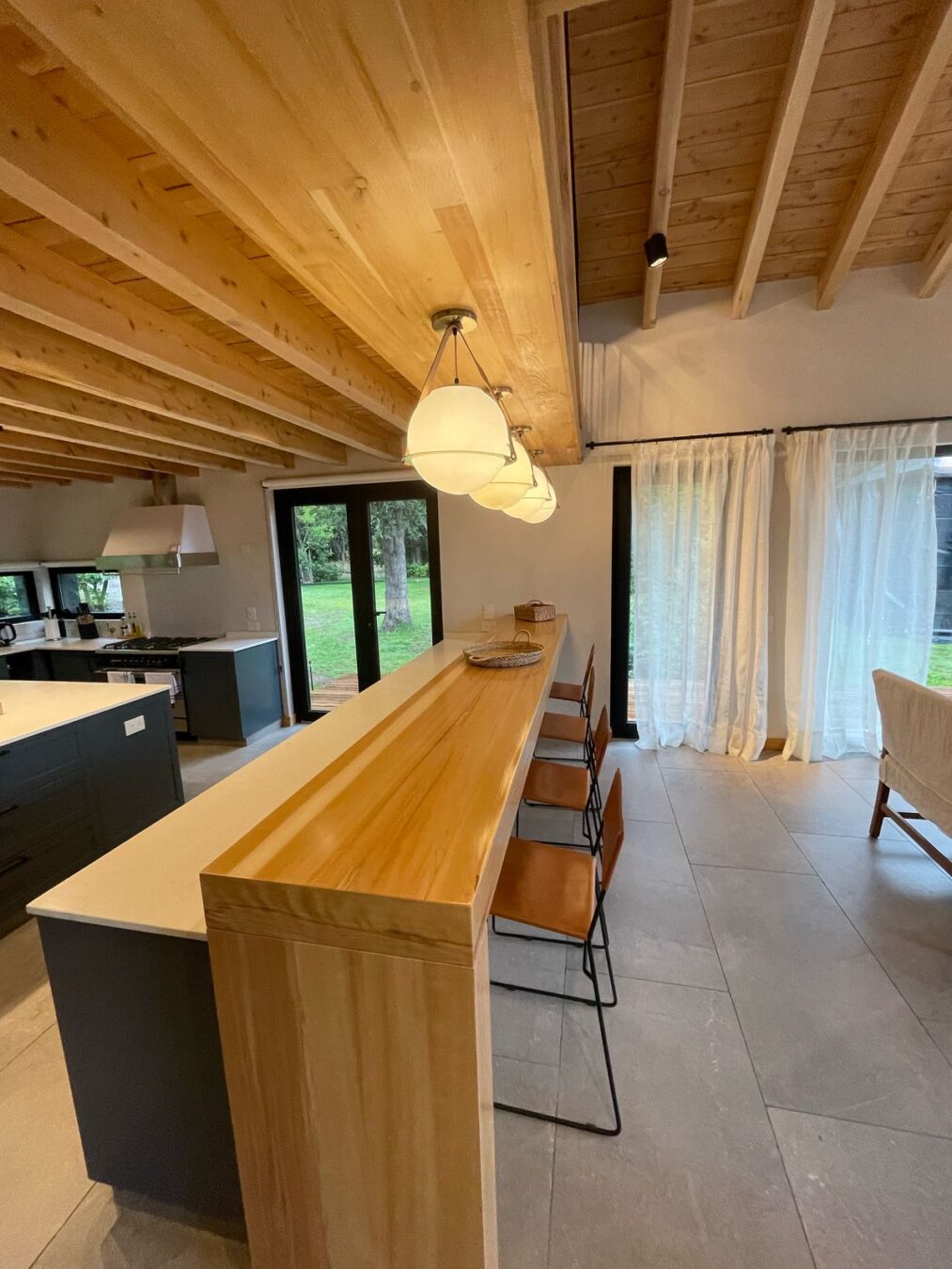 La casa tiene capacidad para 11 personas, cuenta con un amplio living comedor, una chimenea que acompaña el entorno cálido y sereno, una cocina grande con una isla desayunadora.