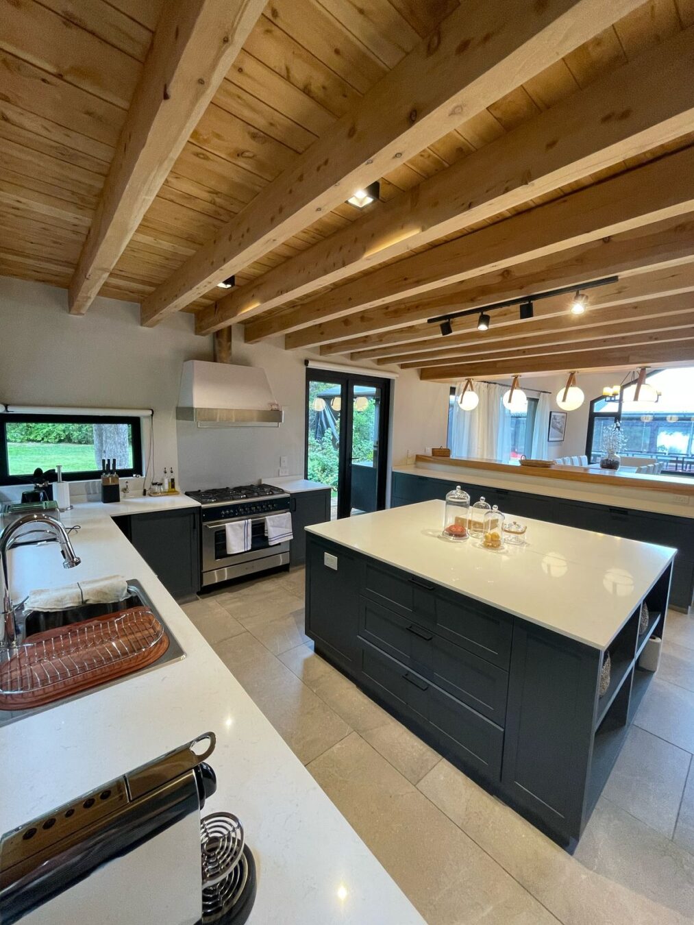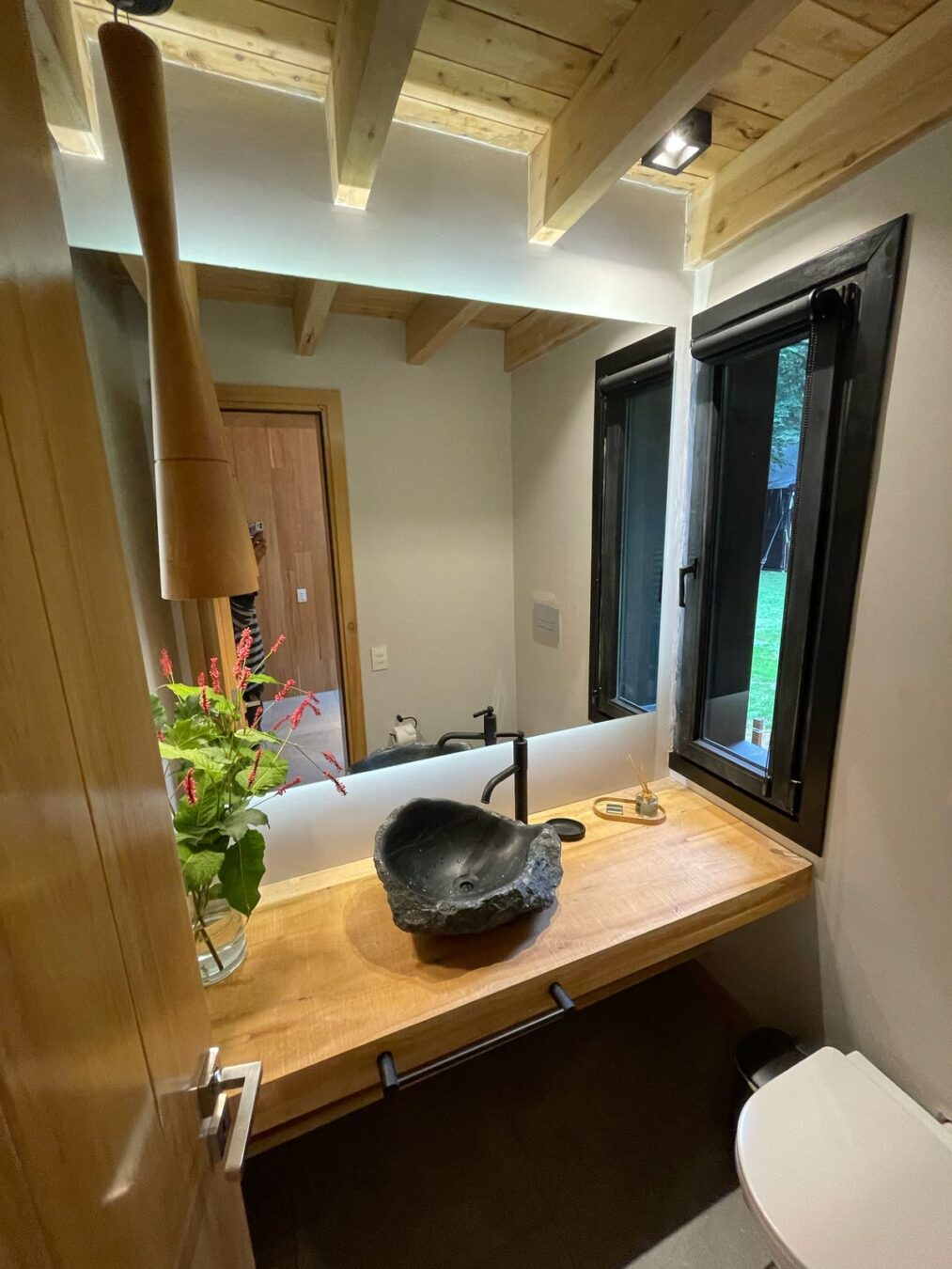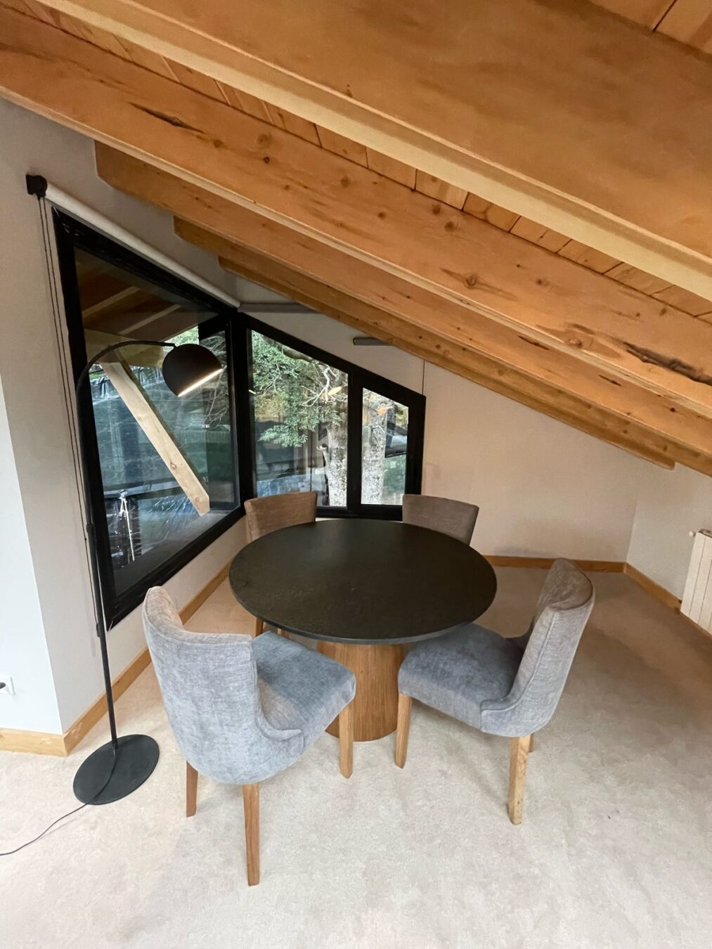 La casa tiene capacidad para 11 personas, cuenta con un amplio living comedor, una chimenea que acompaña el entorno cálido y sereno, una cocina grande con una isla desayunadora.