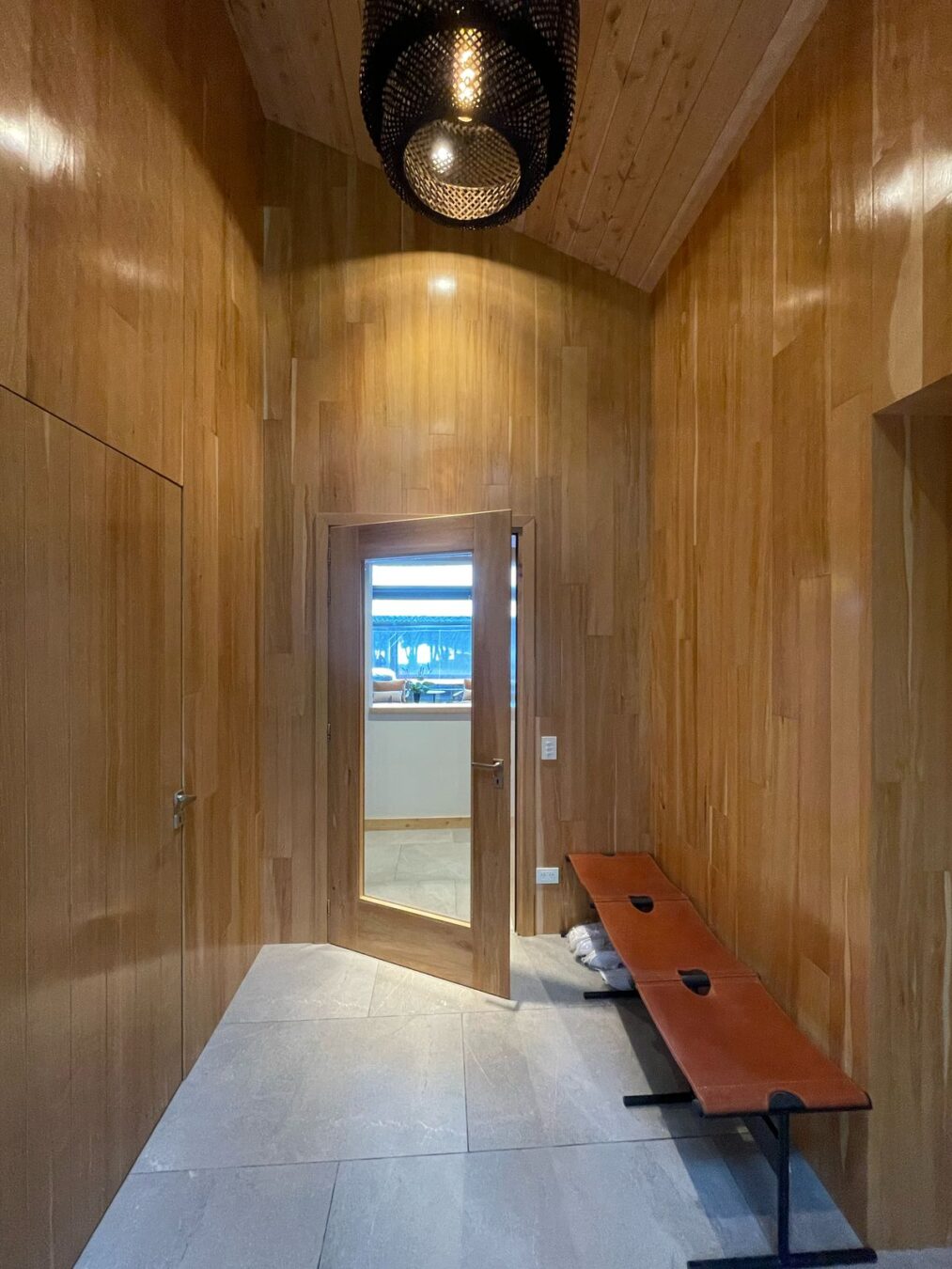 El sector exterior de la casa también cuenta con parrilla y una bañera japonesa Hiroki.
