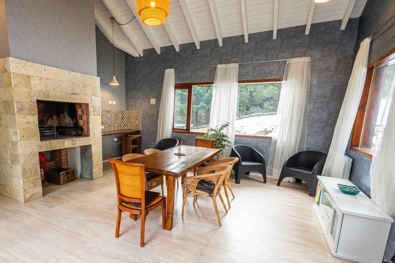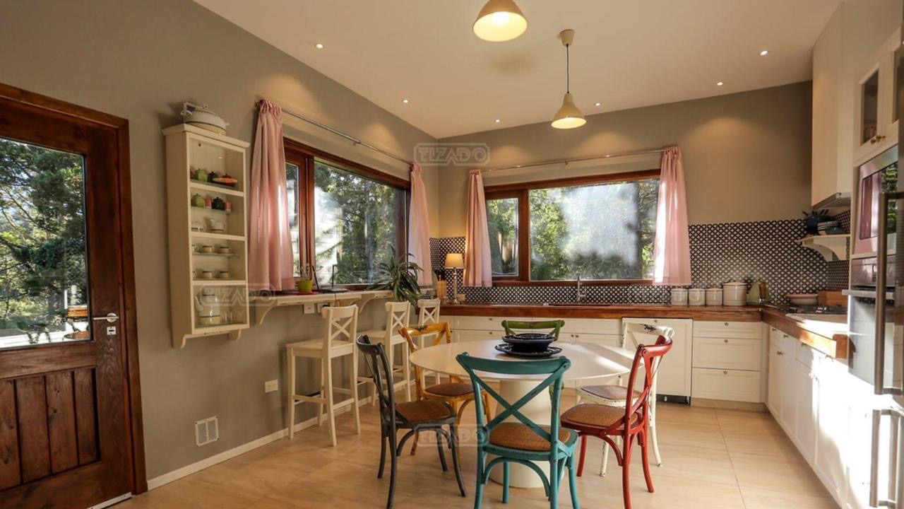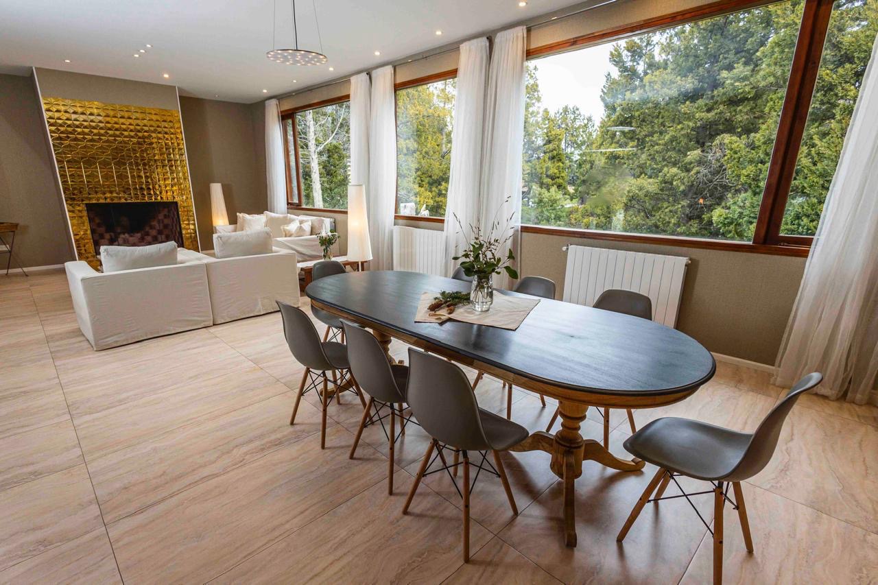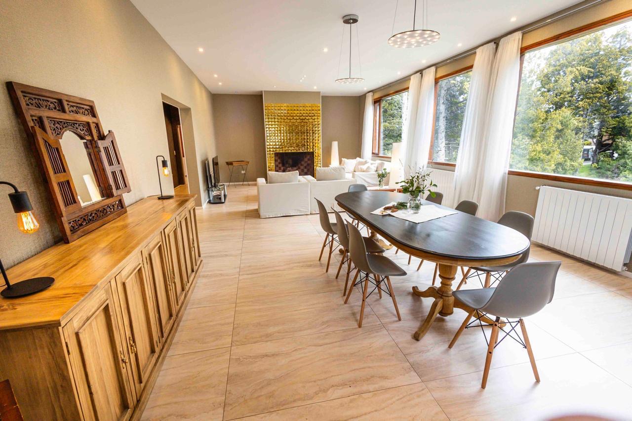 Se divide en una zona central donde encontramos un gran salón (living comedor), con chimenea, TV pantalla plana.