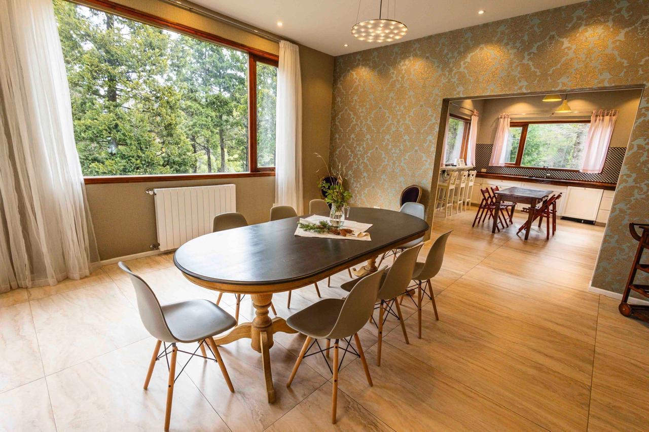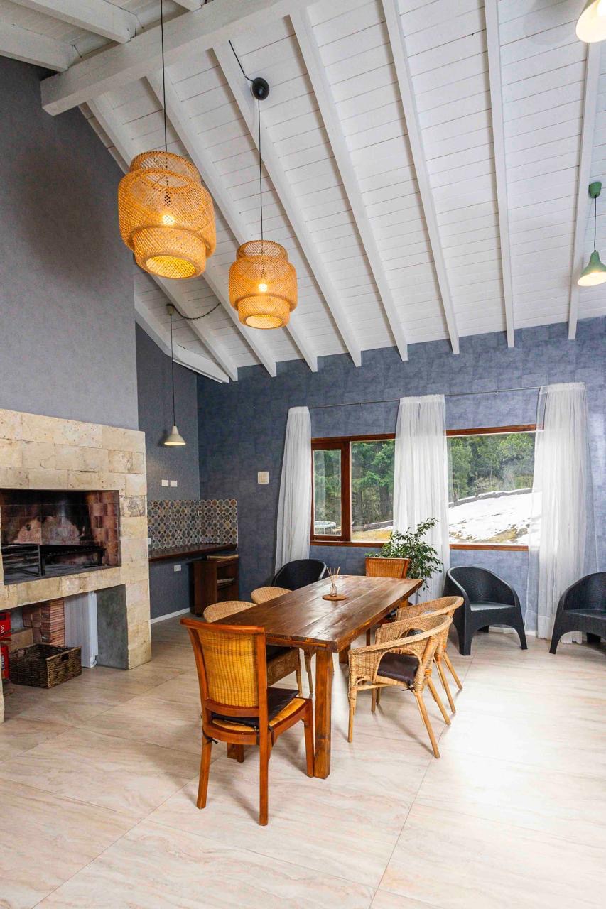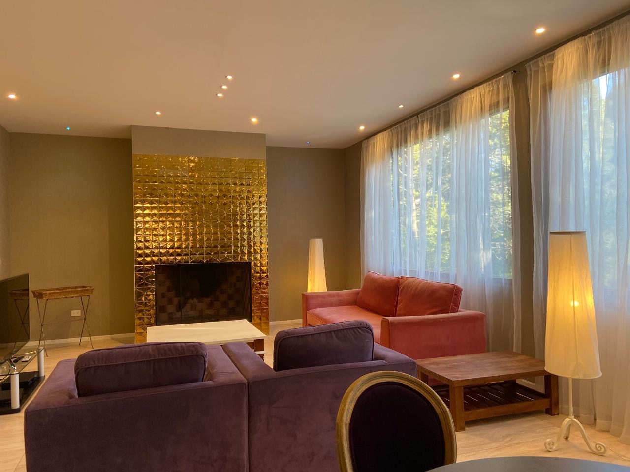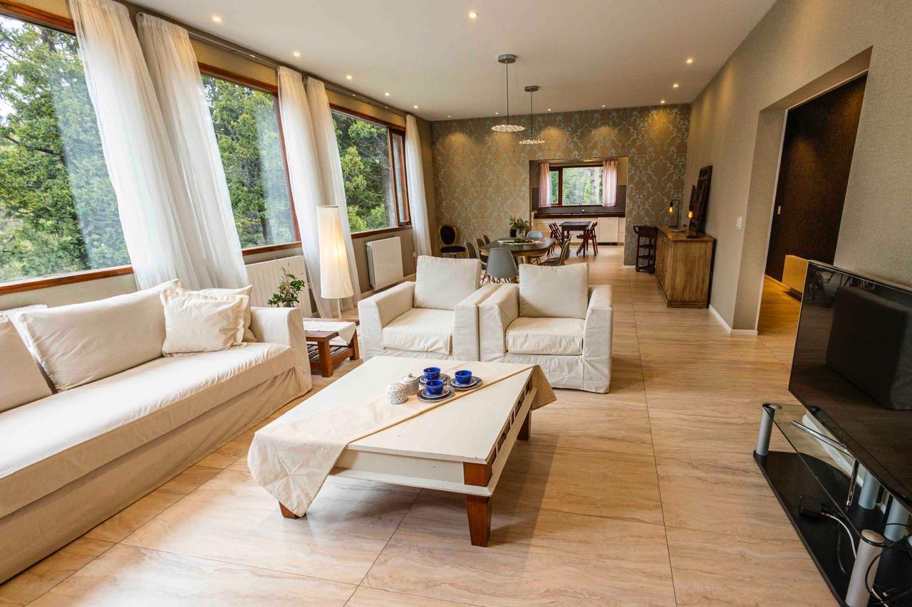 Se divide en una zona central donde encontramos un gran salón (living comedor), con chimenea, TV pantalla plana.