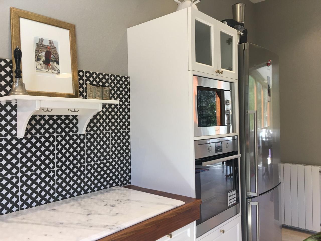 Heladera con freezer de última generación, lavavajillas de última generación, doble bacha, horno eléctrico empotrado, microondas, anafe a gas.