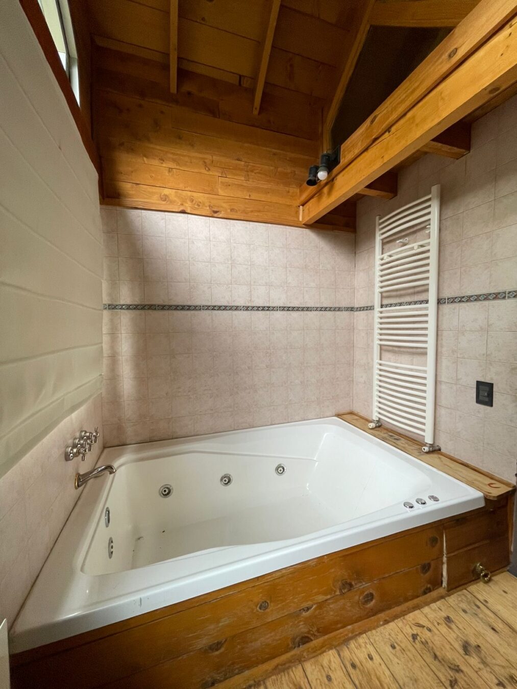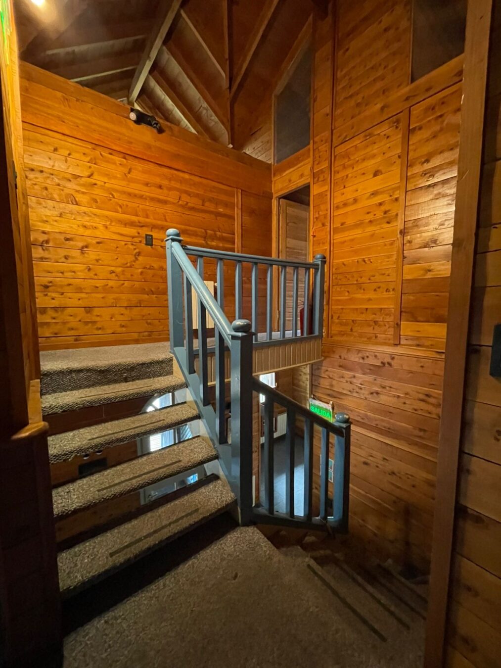 Suite principal: Espaciosa habitación equipada con cuatro camas individuales, con acceso mediante escalera caracol a un segundo ambiente privado que incluye dos camas individuales convertibles en una cama queen, jacuzzi y ducha de hidromasaje, ofreciendo una experiencia tipo spa.