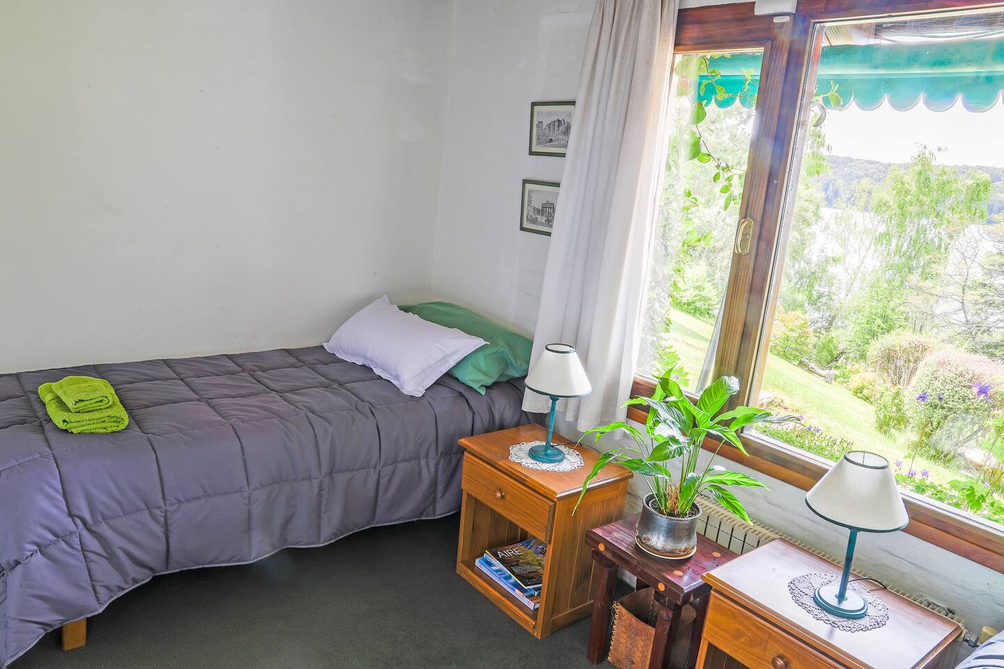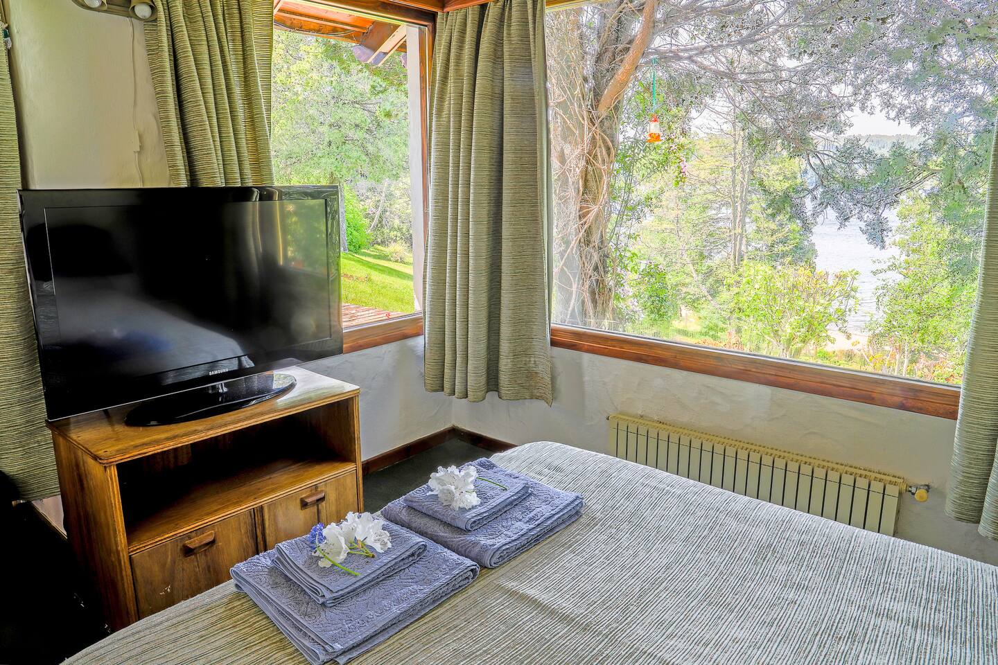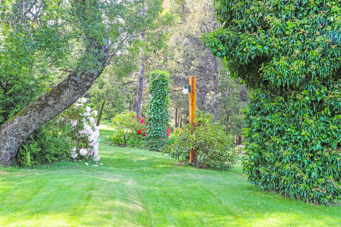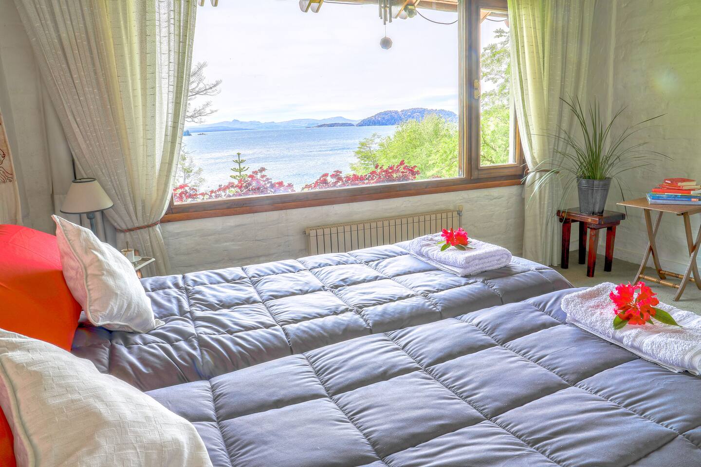Más de 4 hectáreas de parque privado, con frondoso bosque autóctono, árboles frutales y un arroyo propio que desemboca en el lago.