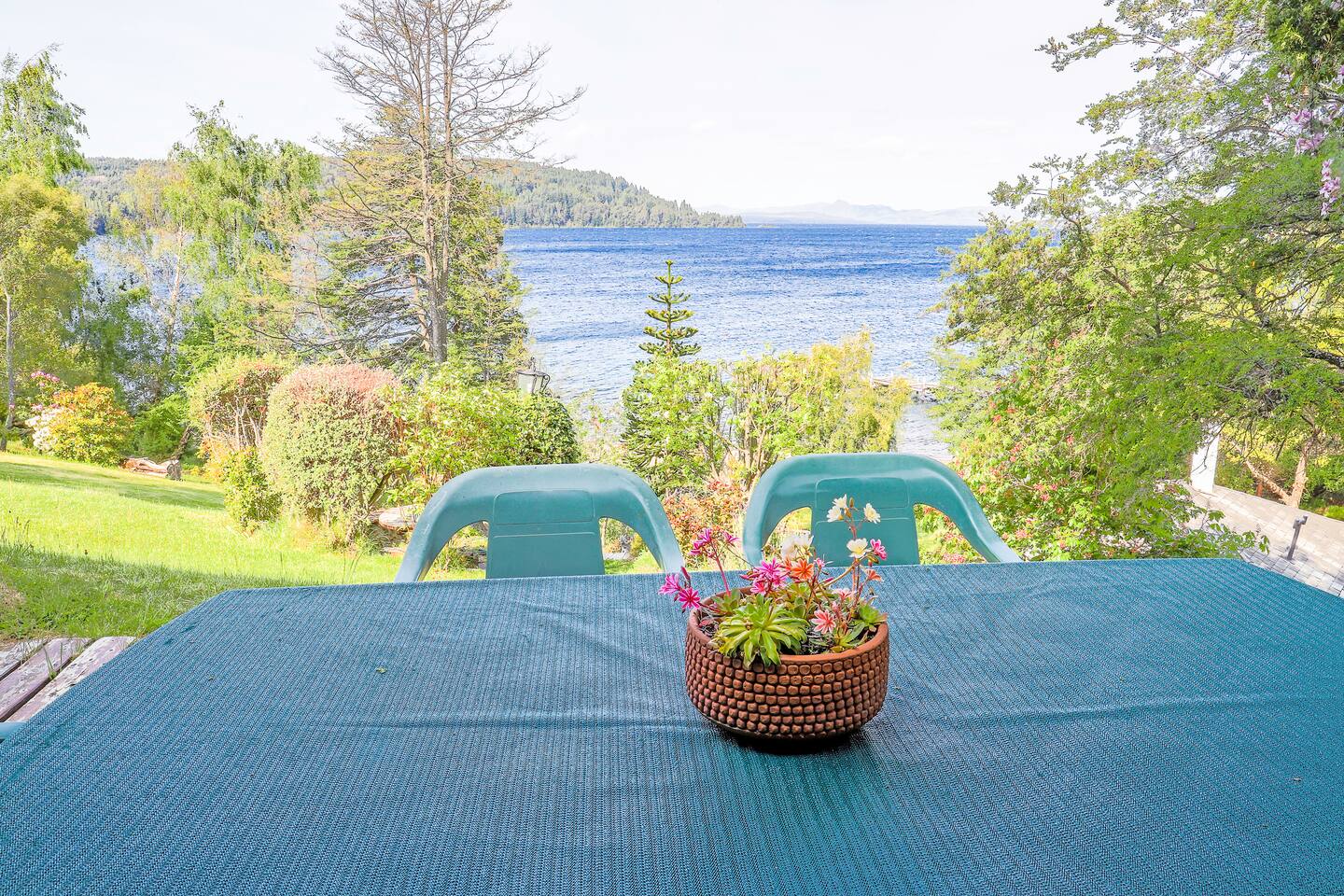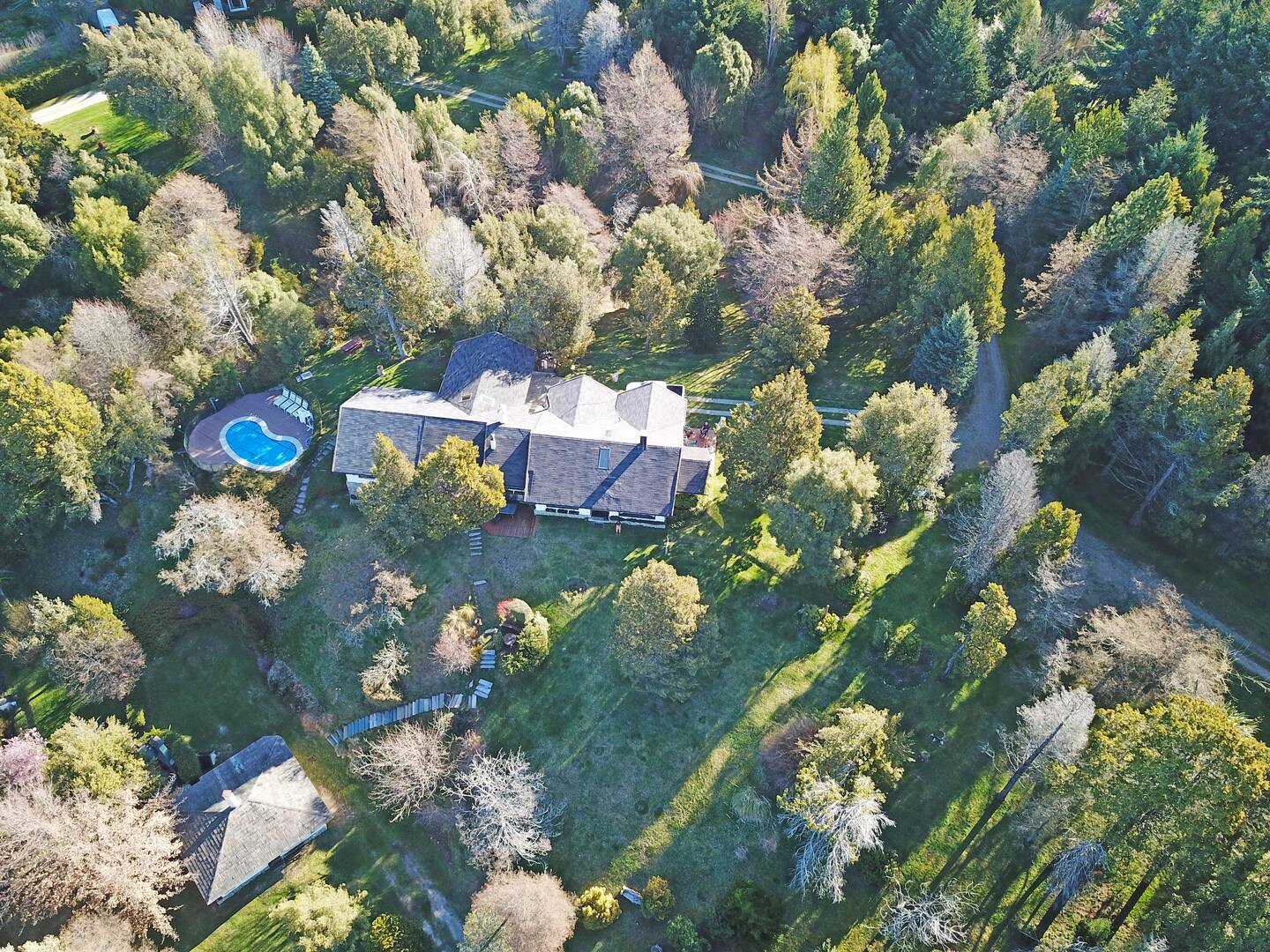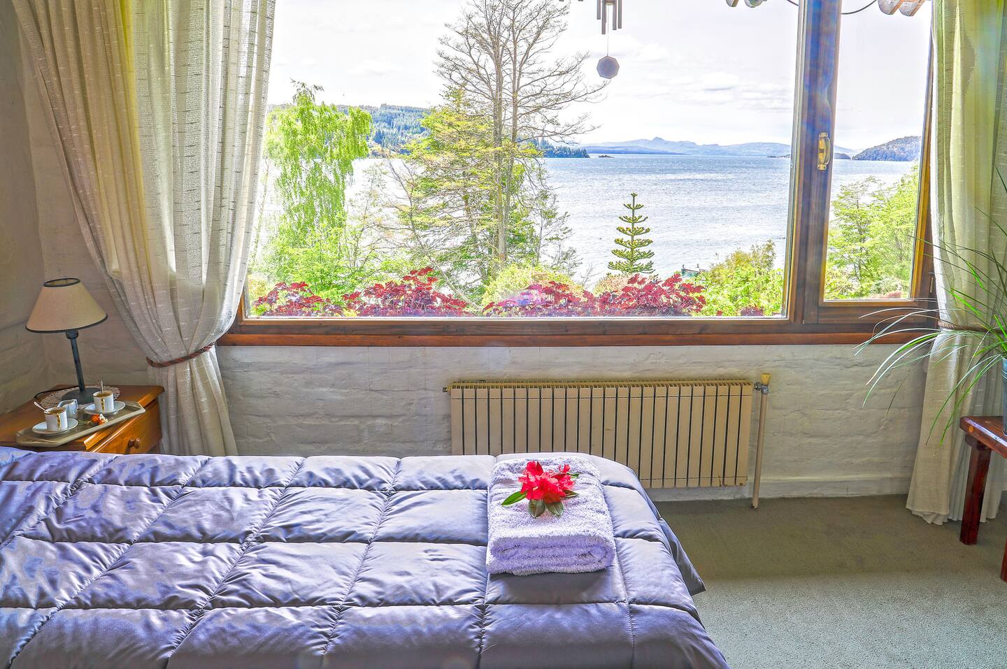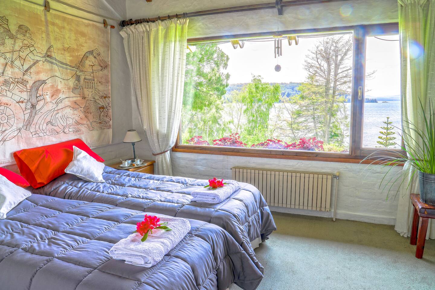 Más de 4 hectáreas de parque privado, con frondoso bosque autóctono, árboles frutales y un arroyo propio que desemboca en el lago.