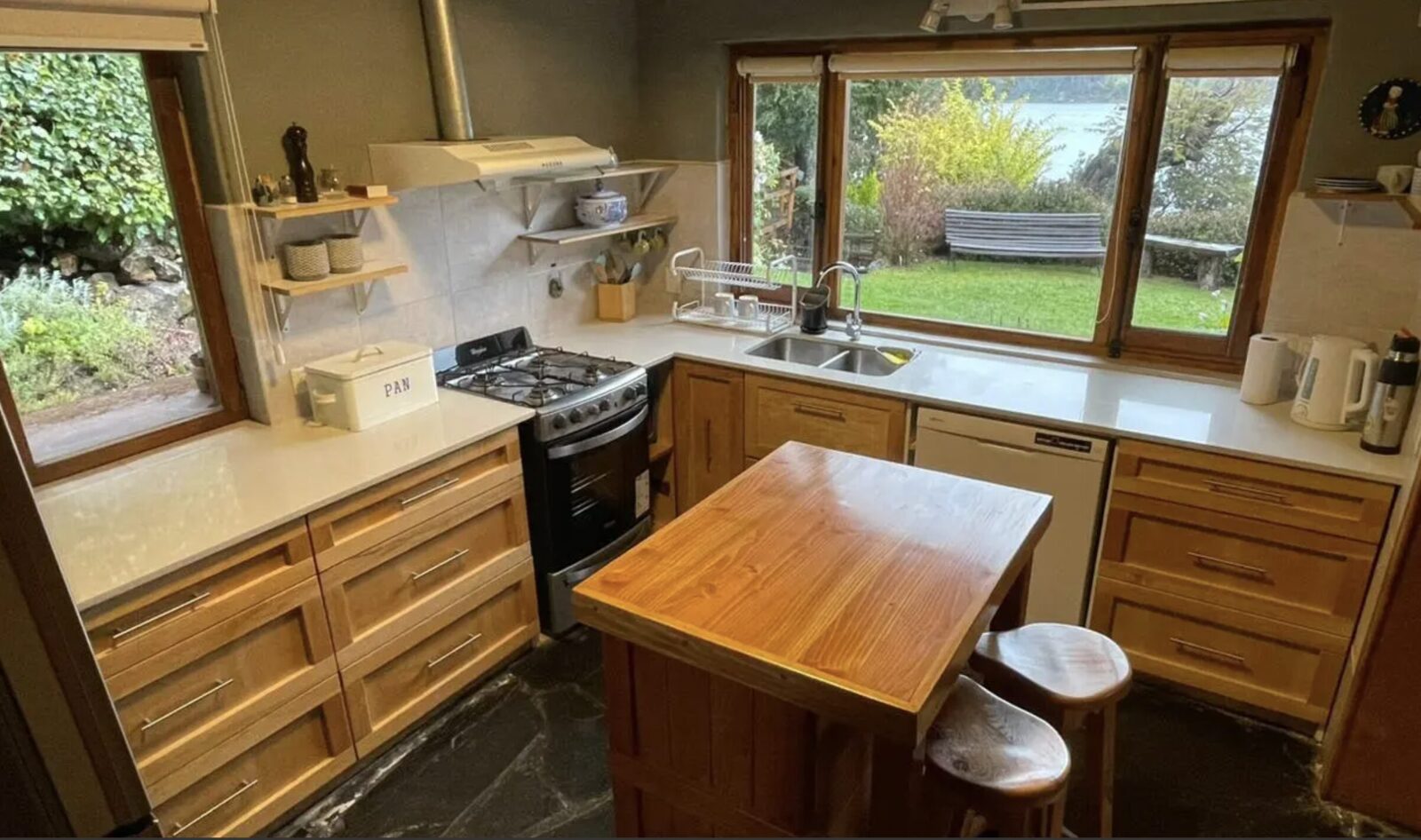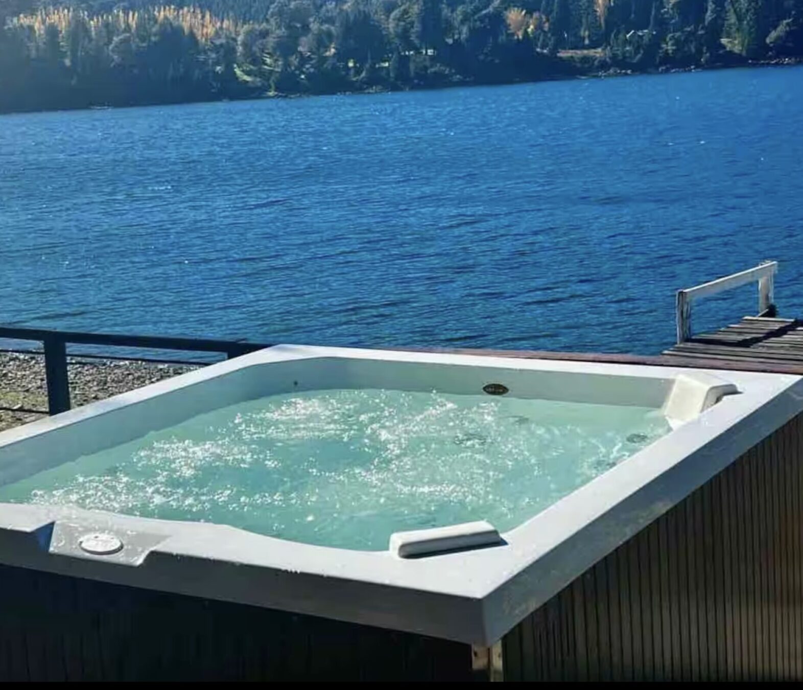Ubicada en la zona de campanario , km 17 300 sobre Nahuel Huapi , cuenta con muelle privado , y jacuzzi. Playa exclusiva , dentro de una bahia reparada del viento.