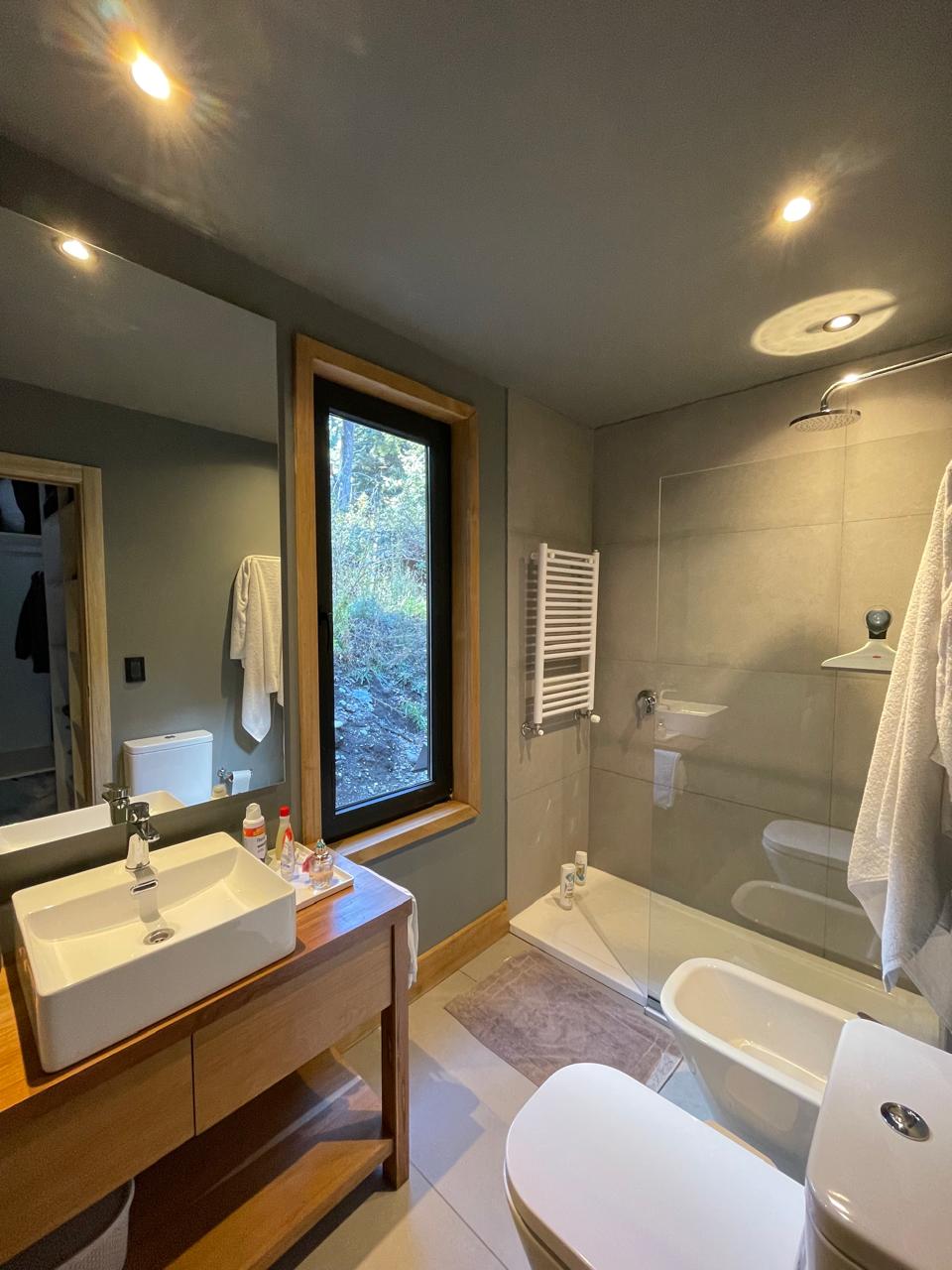 ¡Bienvenido a Negra Arelauquen! Casa encontrada en el barrio más exclusivo de Bariloche, Arelauquen Golf & Country Club, al pie del Lago Gutiérrez. A 25 minutos del aeropuerto de Bariloche este refugio ofrece 4 cuartos en suite para 8 personas, y la posibilidad de ampliar el alquiler a un máximo de 12 personas incorporando la casa de huéspedes (la cual está conectada a la casa), además de contar con espacios comunes amplios, cálidos y luminosos para compartir en familia y con amigos. La casa se encuentra en una ubicación única, emplazada junto a una roca que incluye pared de escalada y una cueva (La Cueva del Oso). Desde la casa es posible conectar distintos circuitos de trekking que te llevan a la Piedra de Hasburgo, el mirador del Gutierrez y el Refugio de Arelauquen. Aprovechá de este lugar para descansar contando con la tranquilidad de la seguridad del barrio cerrado las 24 hs.