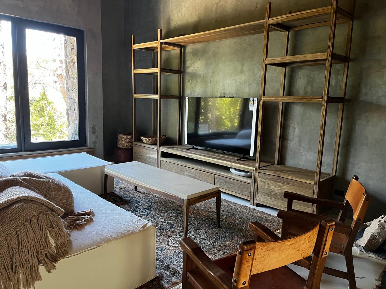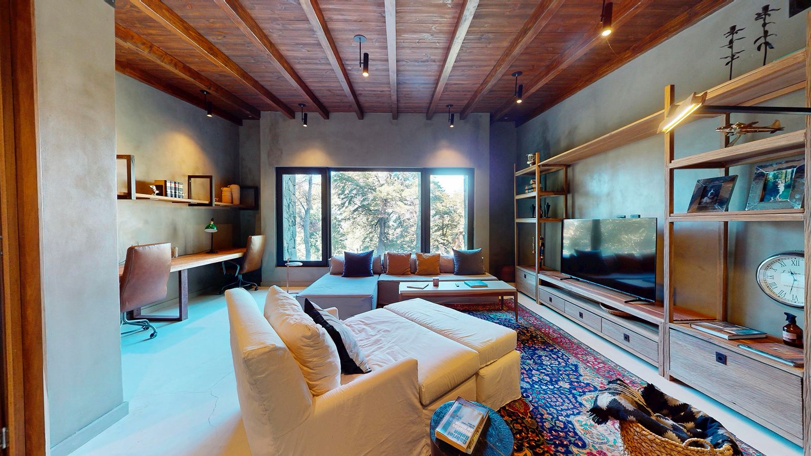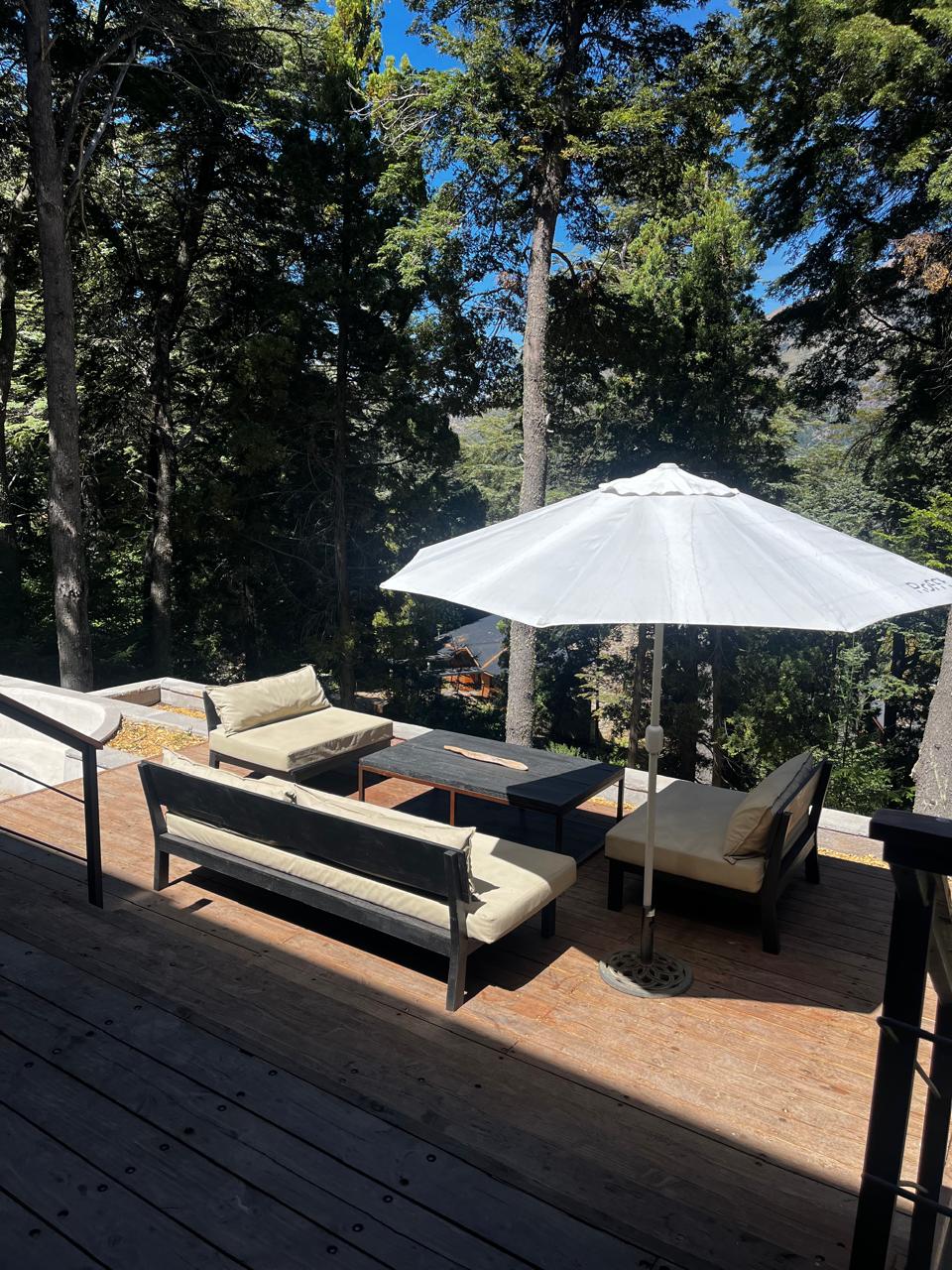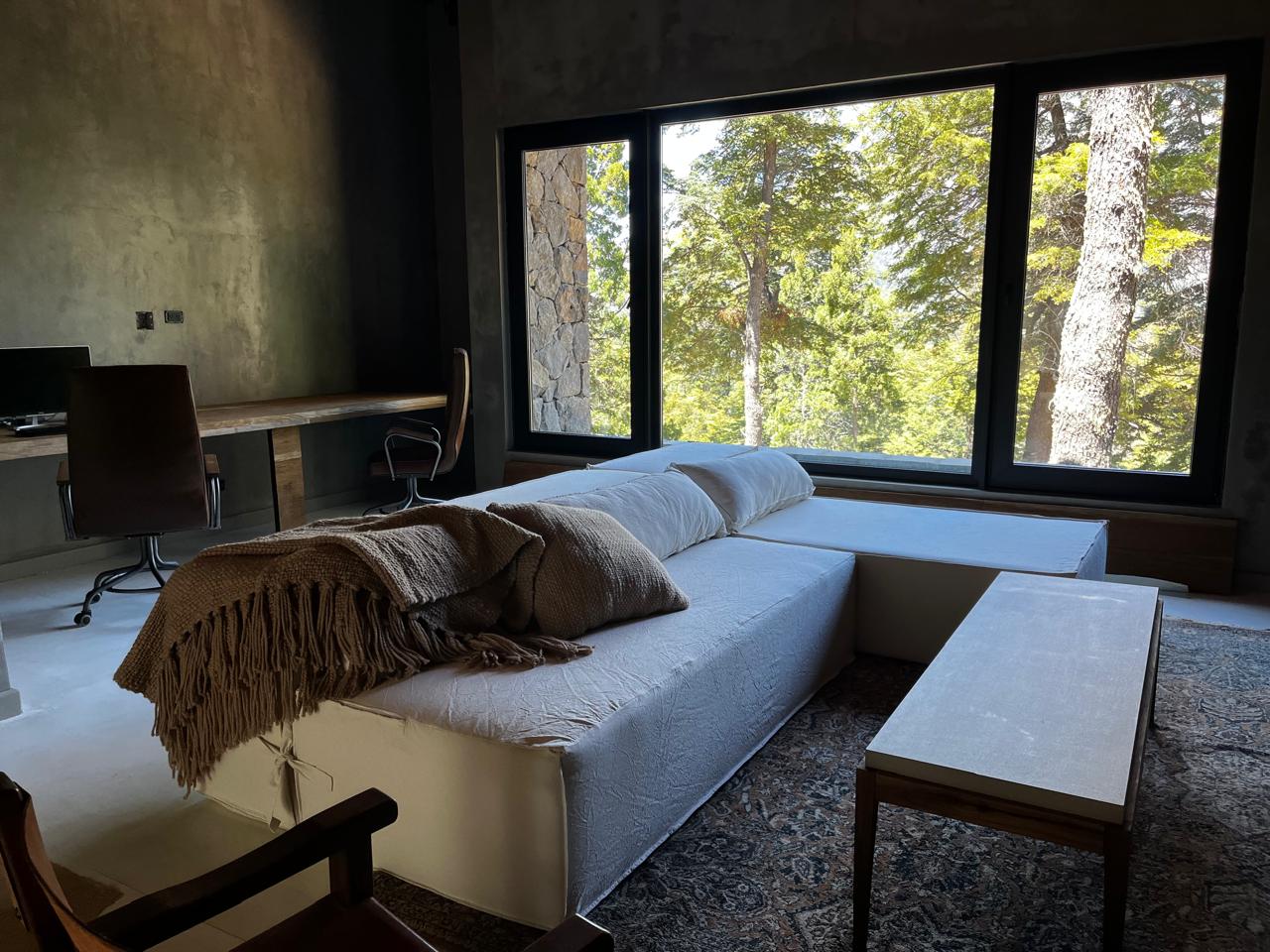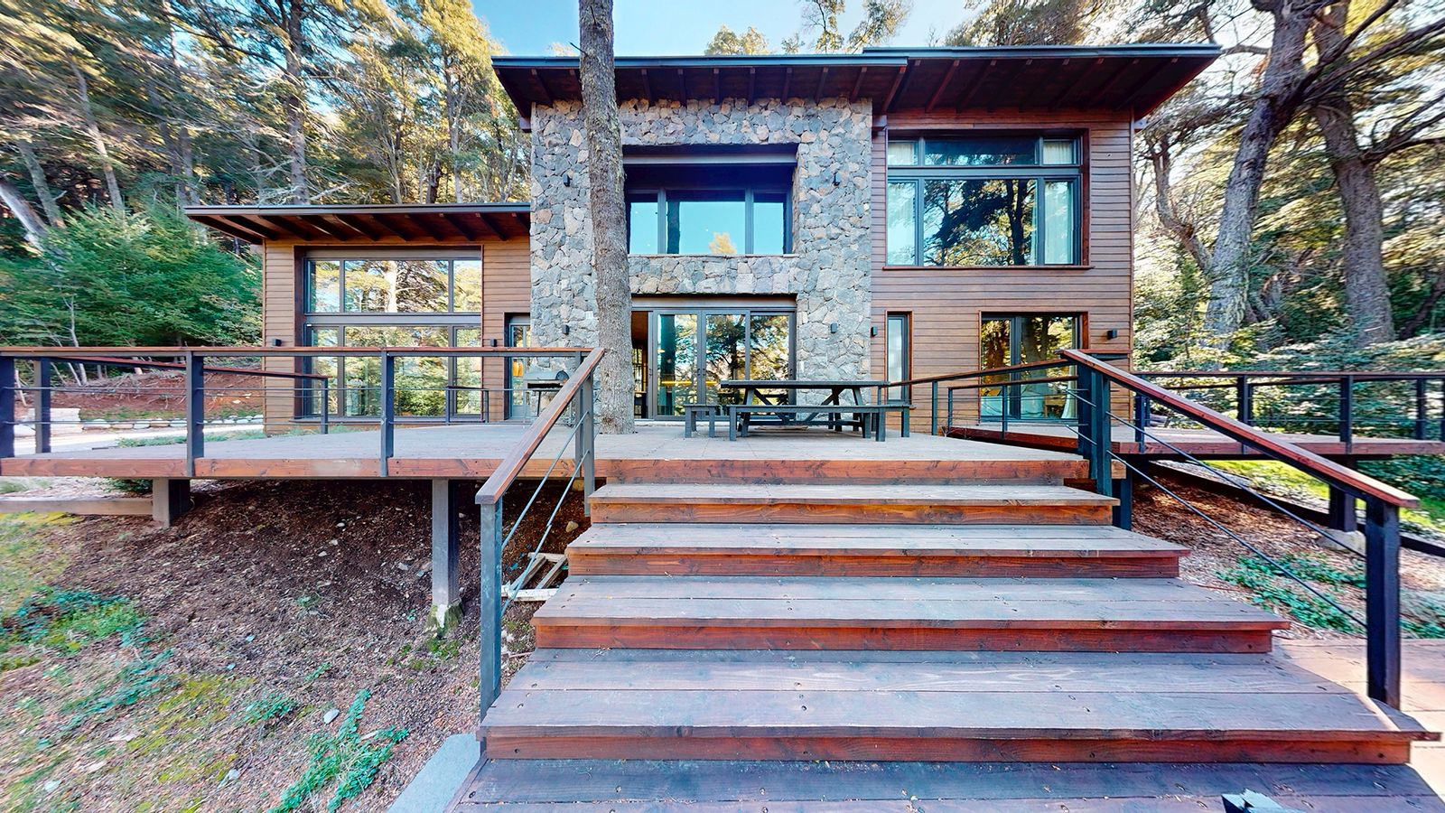 Casa de 400 mts2 ubicada en Arelauquen, que cuenta con 3 suites, playroom, living, comedor, cocina, toilette. Además, dispone de un loft con 3 sommiers, que ha sido acondicionado para su uso en verano, ya que solo cuenta con aire acondicionado frío/calor.
