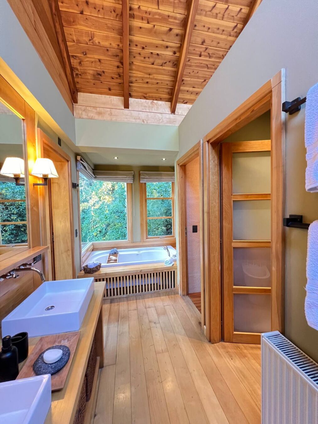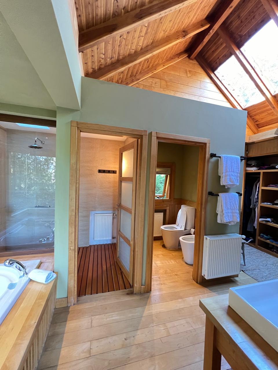 La casa está construida en una ladera con escaleras para acceder a los diferentes niveles. En invierno, la zona puede experimentar nieve y hielo. El acceso es a través de una carretera de grava de 1,3 km, por lo que se recomienda un vehículo con neumáticos de nieve o 4×4. Contamos con un motor-generador para cortes de energía. La ubicación es ideal para aventureros, lejos de las carreteras principales, en un entorno boscoso frente al lago.