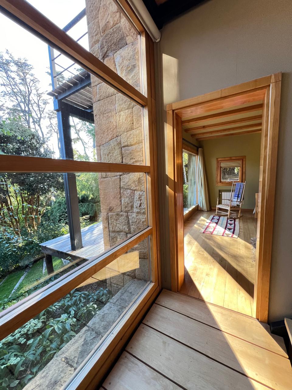 Se encuentra en medio de la naturaleza, dentro de una reserva natural urbana y parte del parque municipal Llao Llao, vecino del Parque Nacional Nahuel Huapi. Ubicado en una ladera rodeada de árboles nativos y junto al lago Morenito, ofrece una de las vistas más impresionantes del Cerro Tronador. La casa, construida en piedra y madera, presenta un diseño moderno y una decoración exquisita, perfecta para unas vacaciones de ensueño para amantes de la naturaleza y la comodidad.
