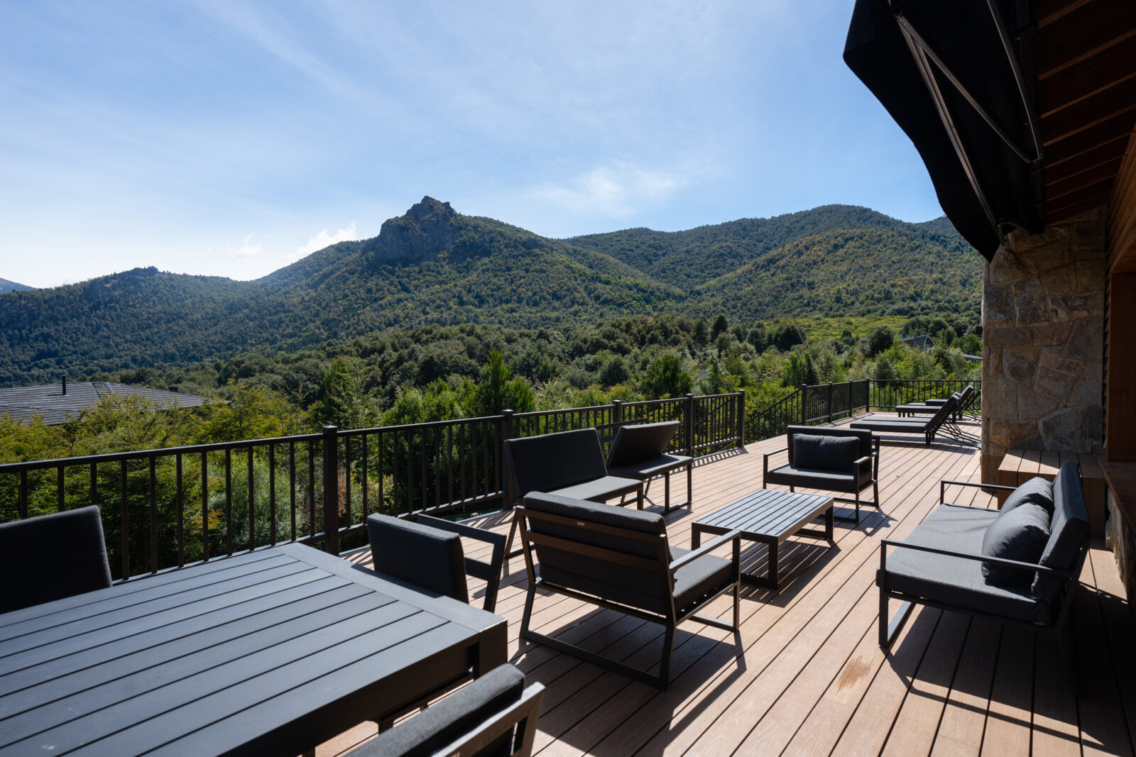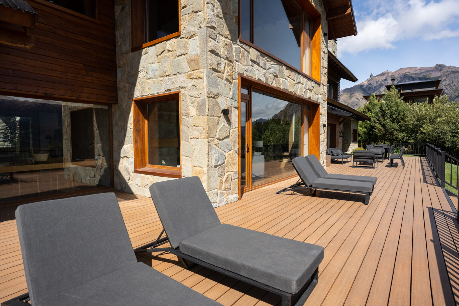 En el exterior se encuentra un amplio deck con mesas, sillas y reposeras para disfrutar las hermosas vistas.