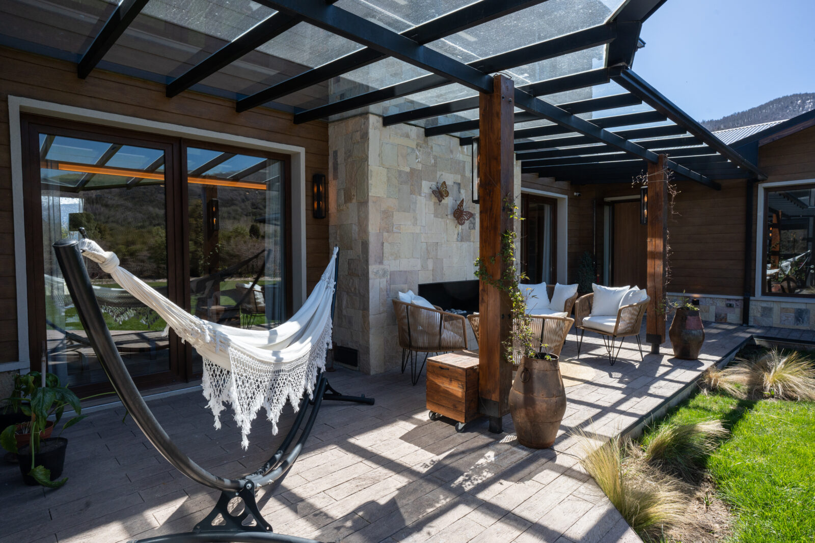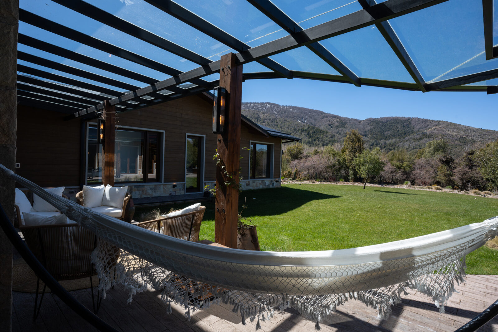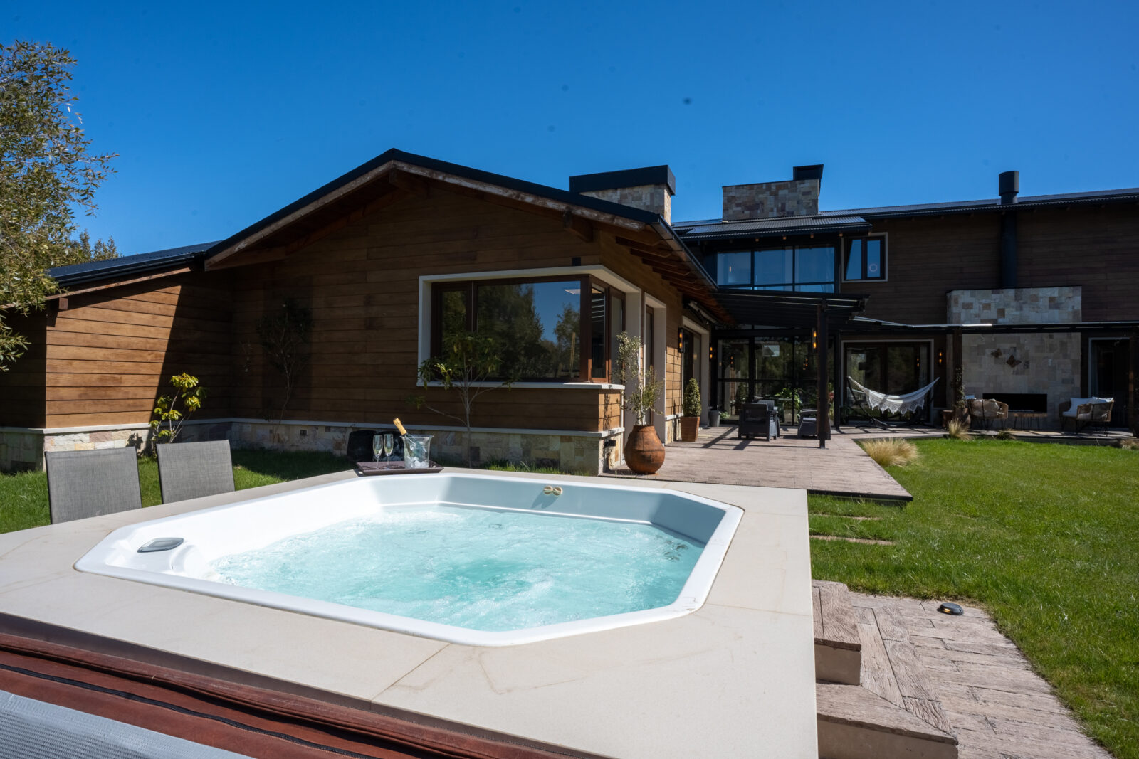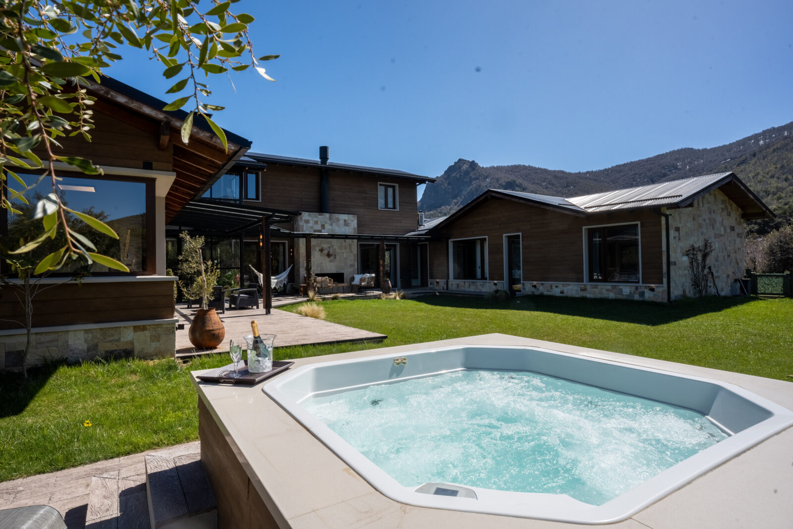 La casa cuenta con un patio interno totalmente privado y reparado, con una galería amplia y techada, espacio de living y fogón donde se puede disfrutar de un cálido atardecer, hamaca de relax (tipo Paraguaya) y nuestro Jacuzzi de exterior, habilitado todo el año y con capacidad para 6 personas donde los huéspedes podrán relajar tanto después de un agitado día de esquí como de un soleado día de Playa y Montaña.