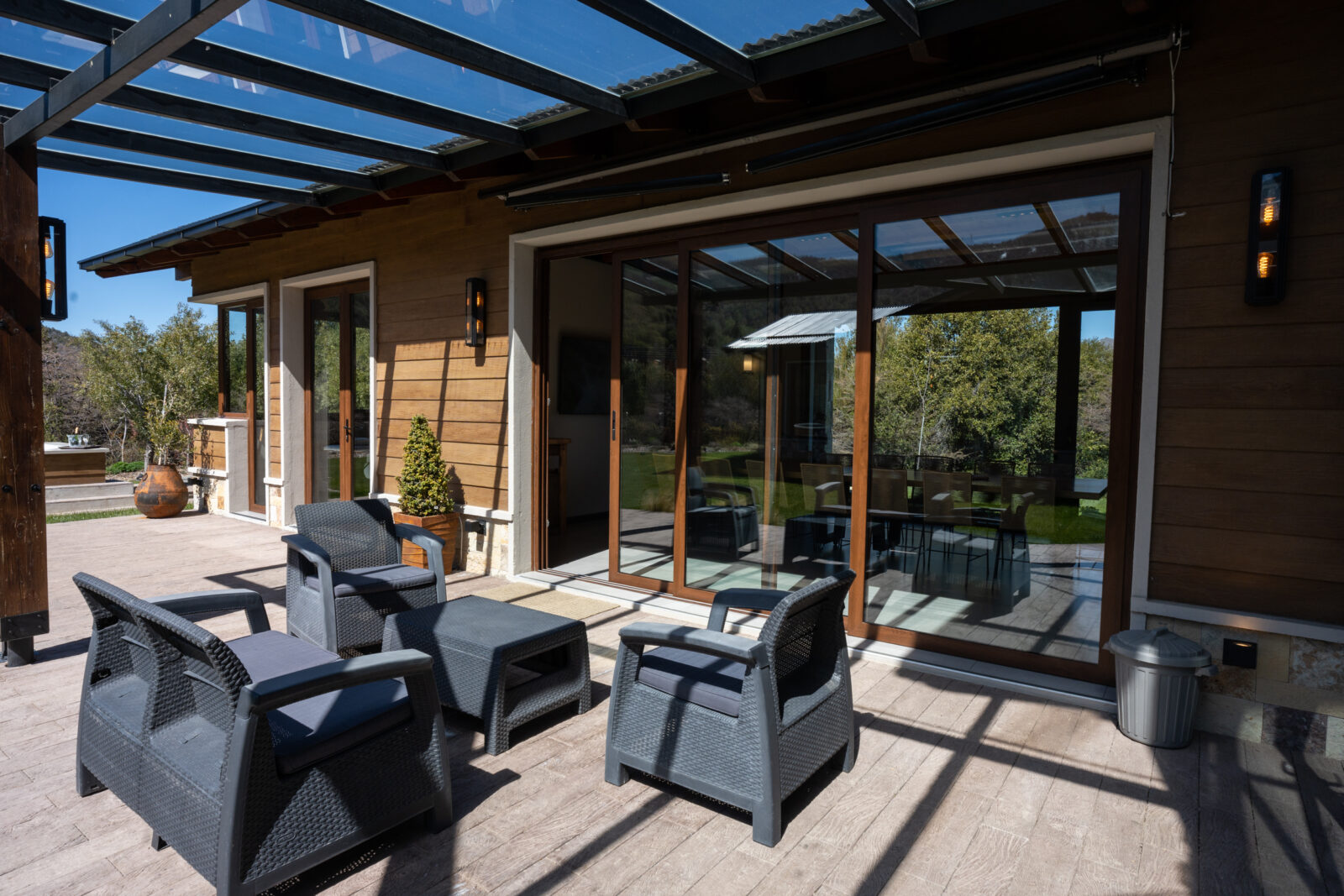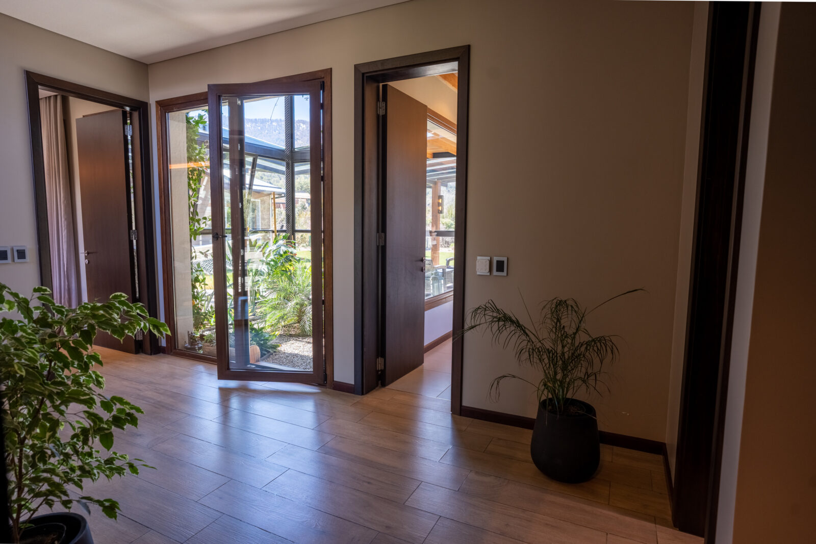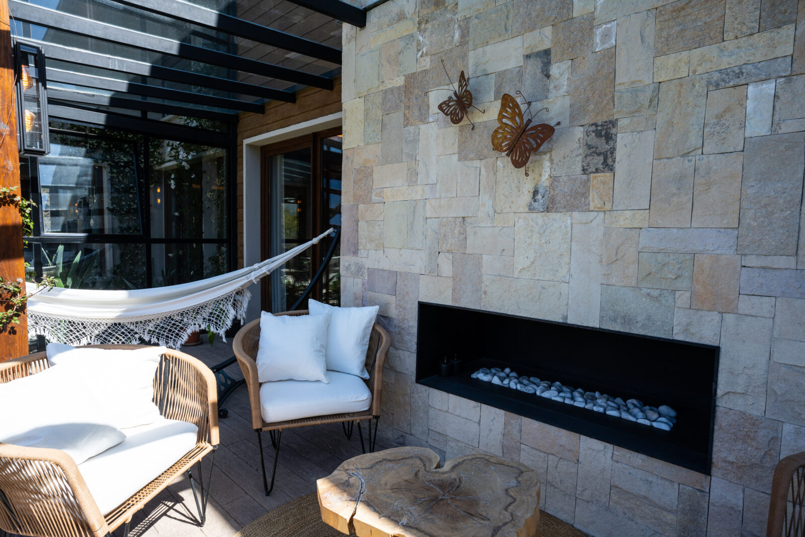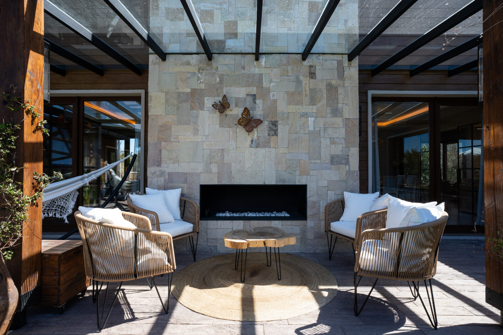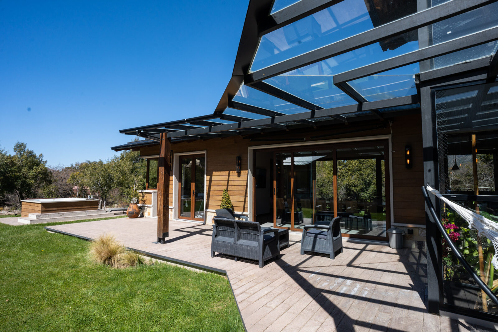 La casa cuenta con un patio interno totalmente privado y reparado, con una galería amplia y techada, espacio de living y fogón donde se puede disfrutar de un cálido atardecer, hamaca de relax (tipo Paraguaya) y nuestro Jacuzzi de exterior, habilitado todo el año y con capacidad para 6 personas donde los huéspedes podrán relajar tanto después de un agitado día de esquí como de un soleado día de Playa y Montaña.