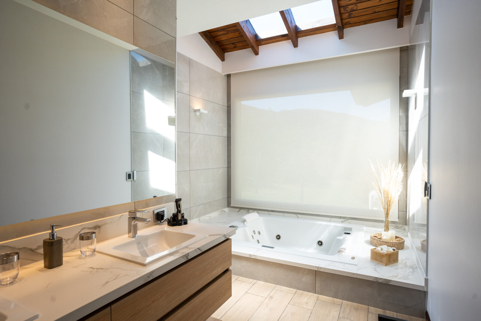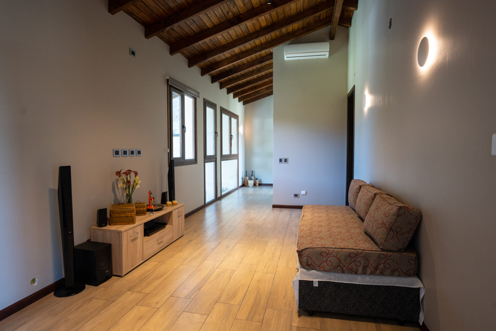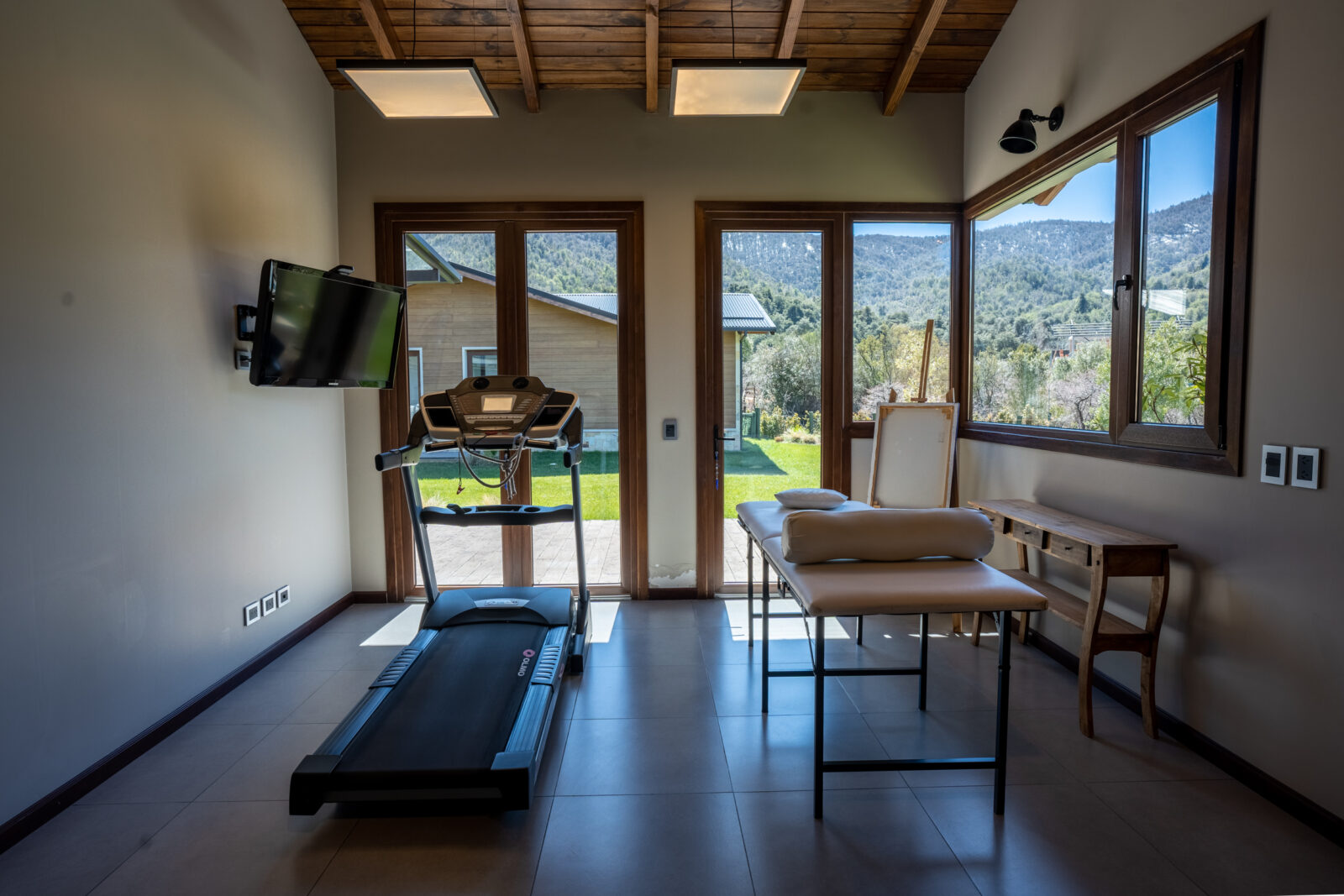 En el área SUM encontramos elementos para la ejercitación física (Cinta de caminar, colchonetas, pesas) y también de relax como una cómoda camilla de masajes en donde los huéspedes podrán relajarse con masajes después de un cálido baño en el jacuzzi exterior.