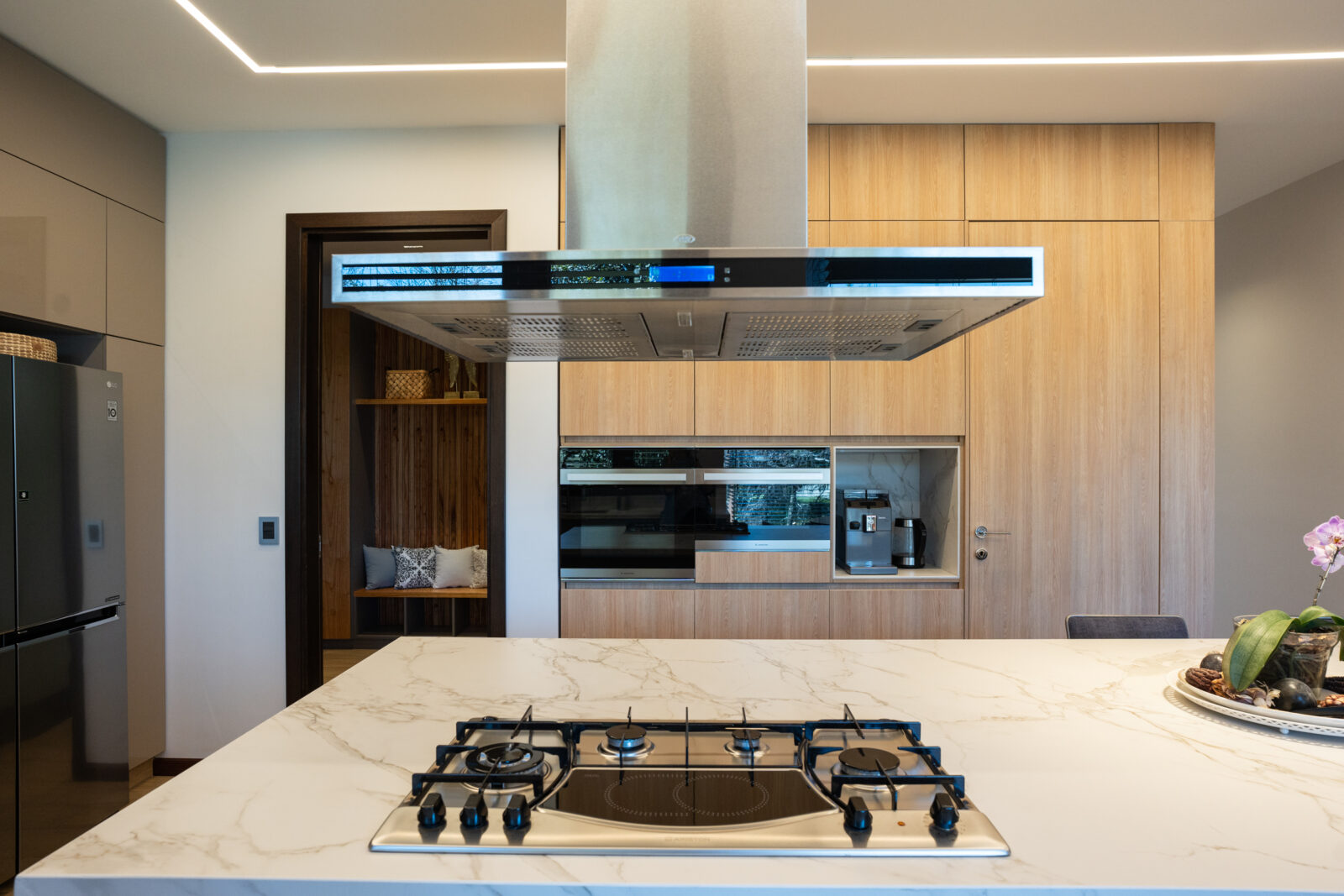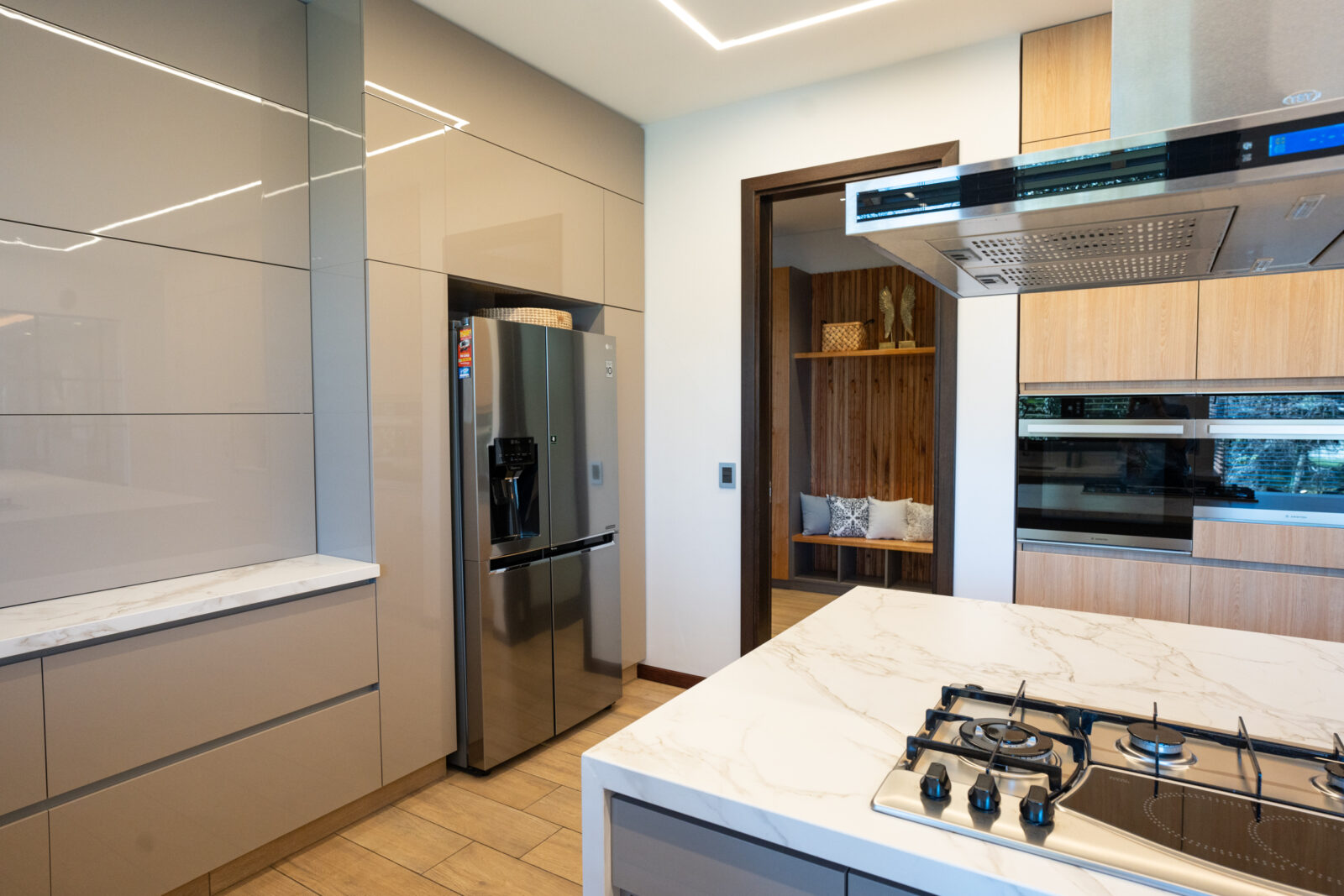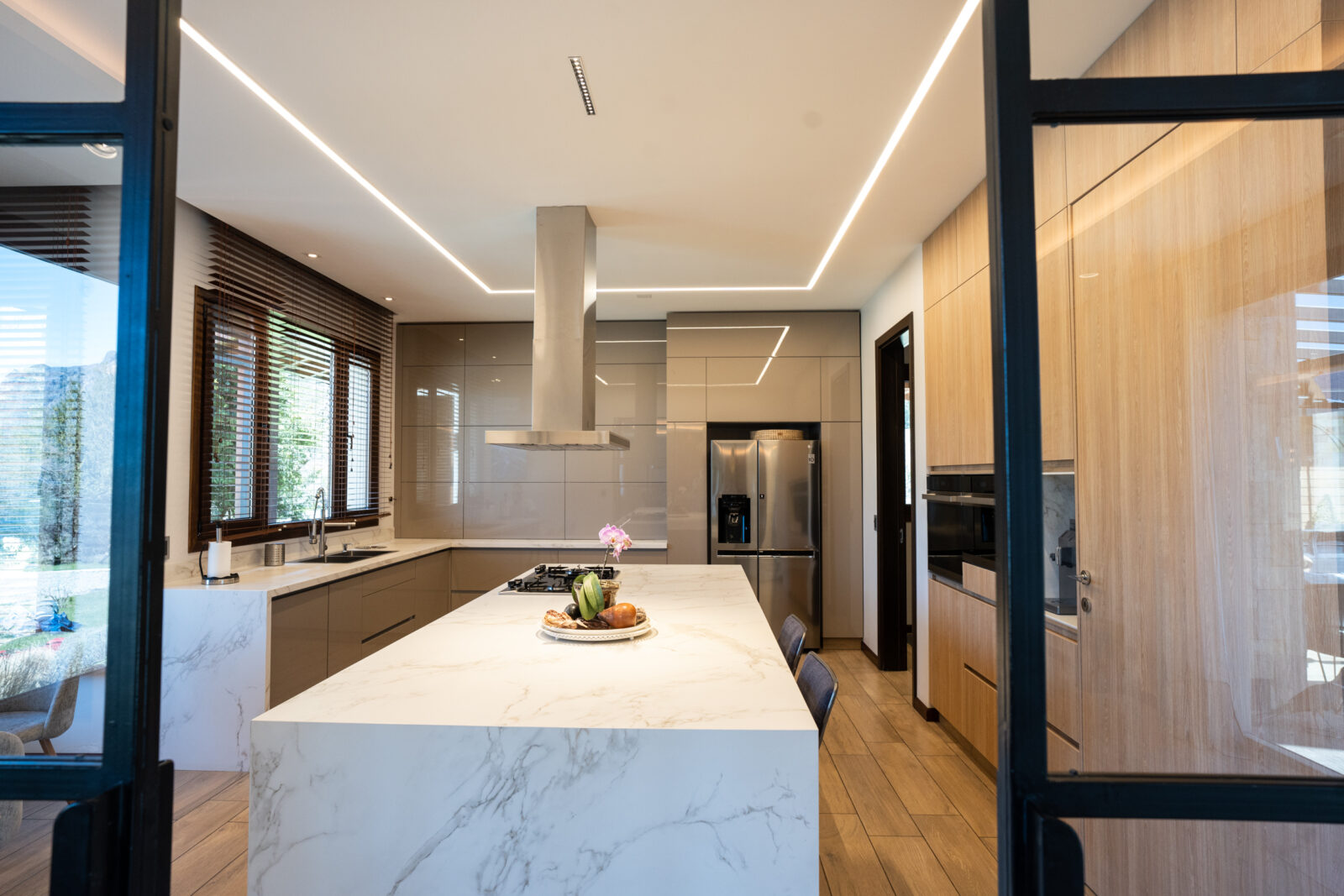 La cocina de la casa, equipada con la mejor calidad y elementos de última generación, ofrece a los amantes del buen comer un espacio donde cocinar cómodamente.