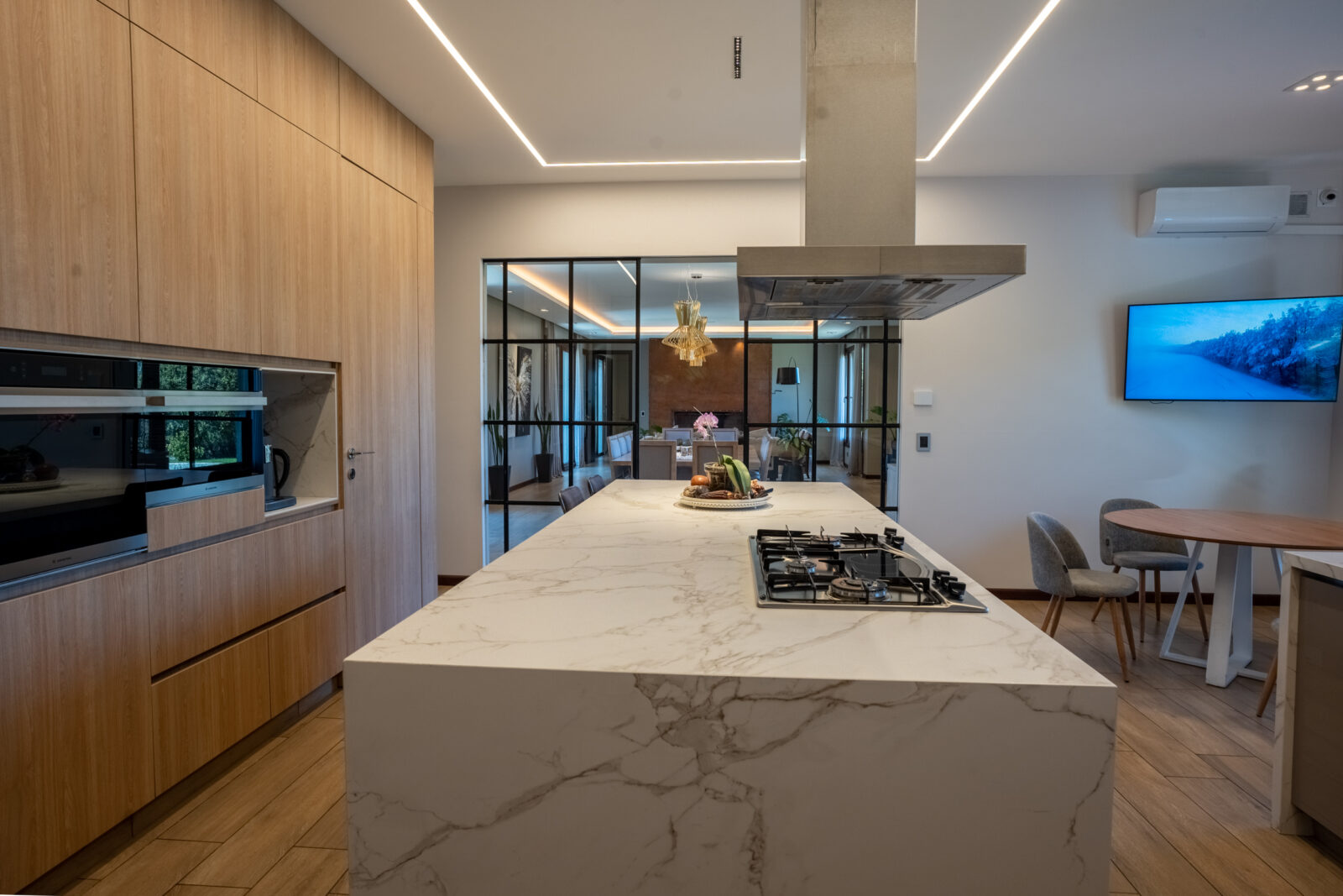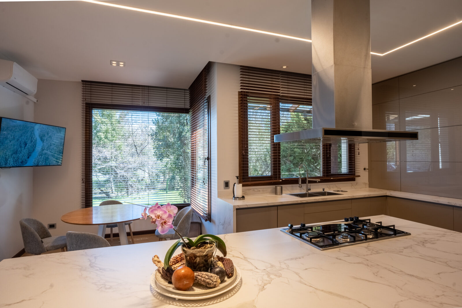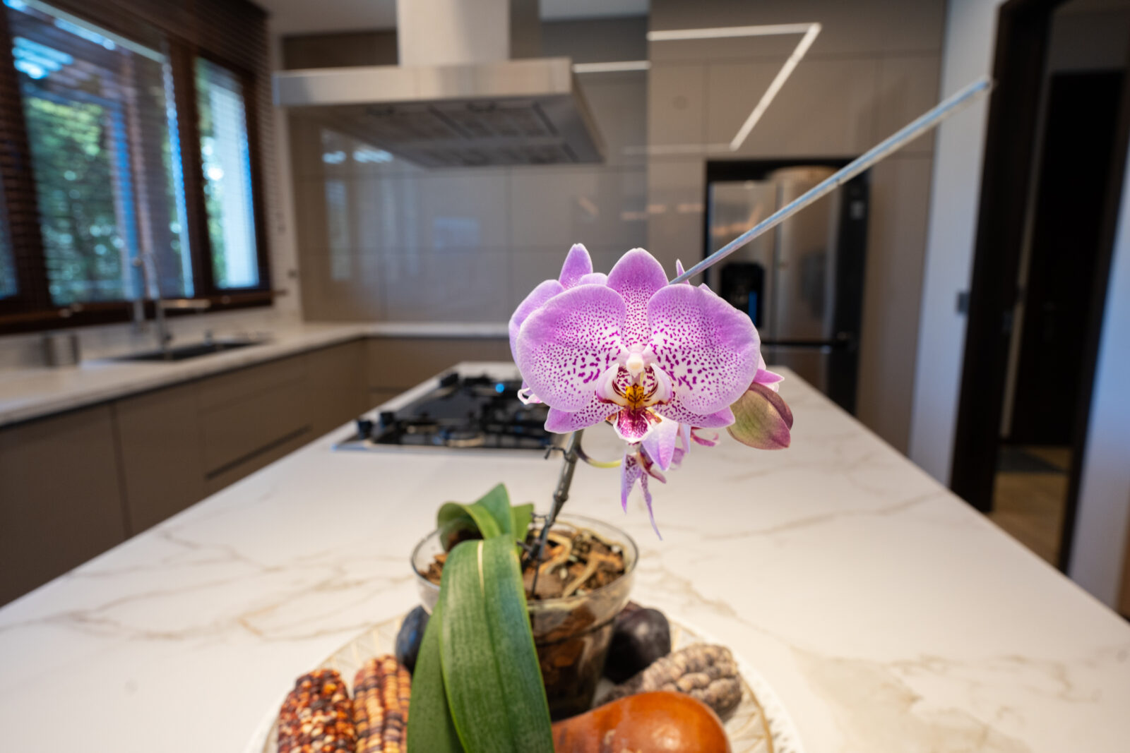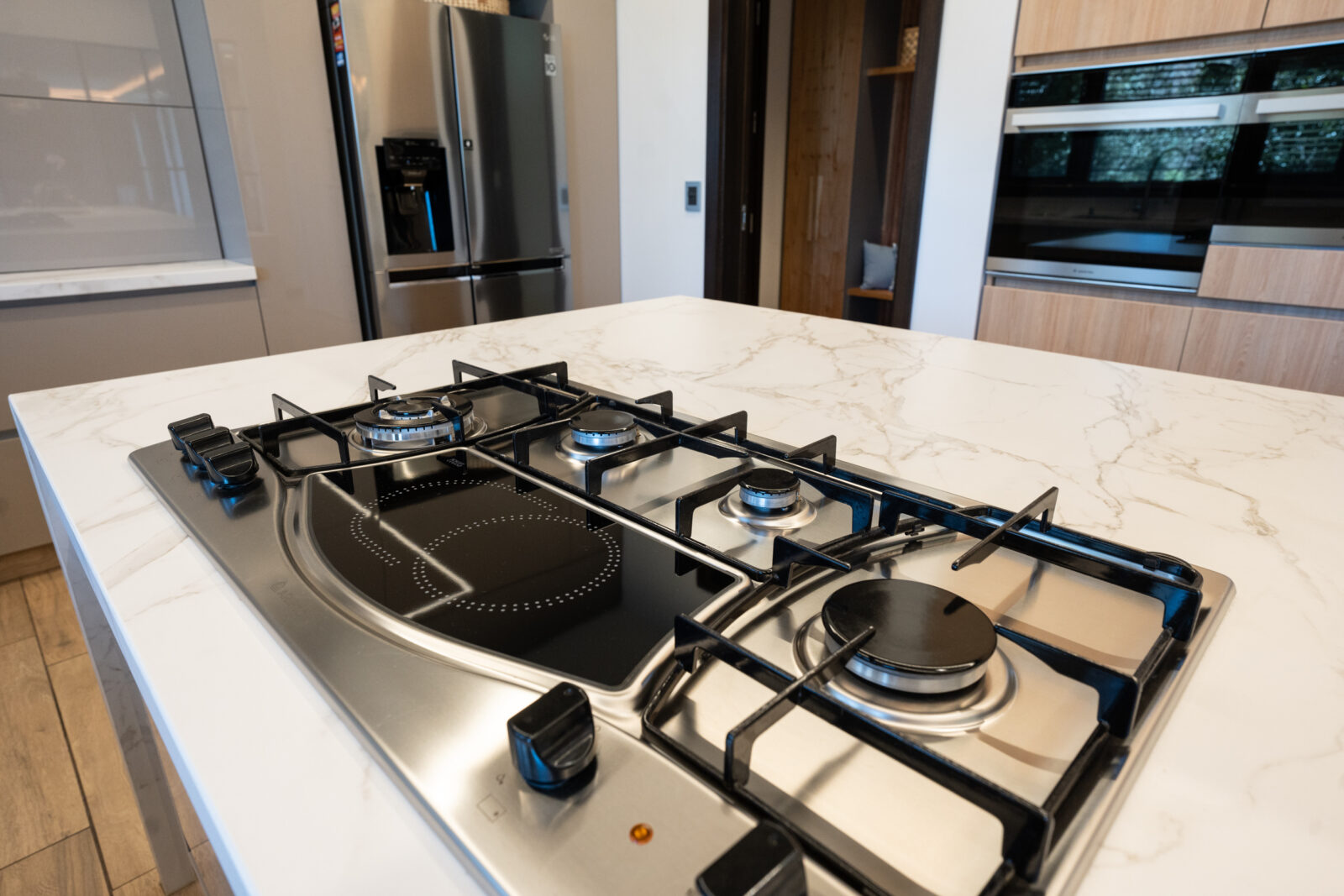 La cocina de la casa, equipada con la mejor calidad y elementos de última generación, ofrece a los amantes del buen comer un espacio donde cocinar cómodamente.