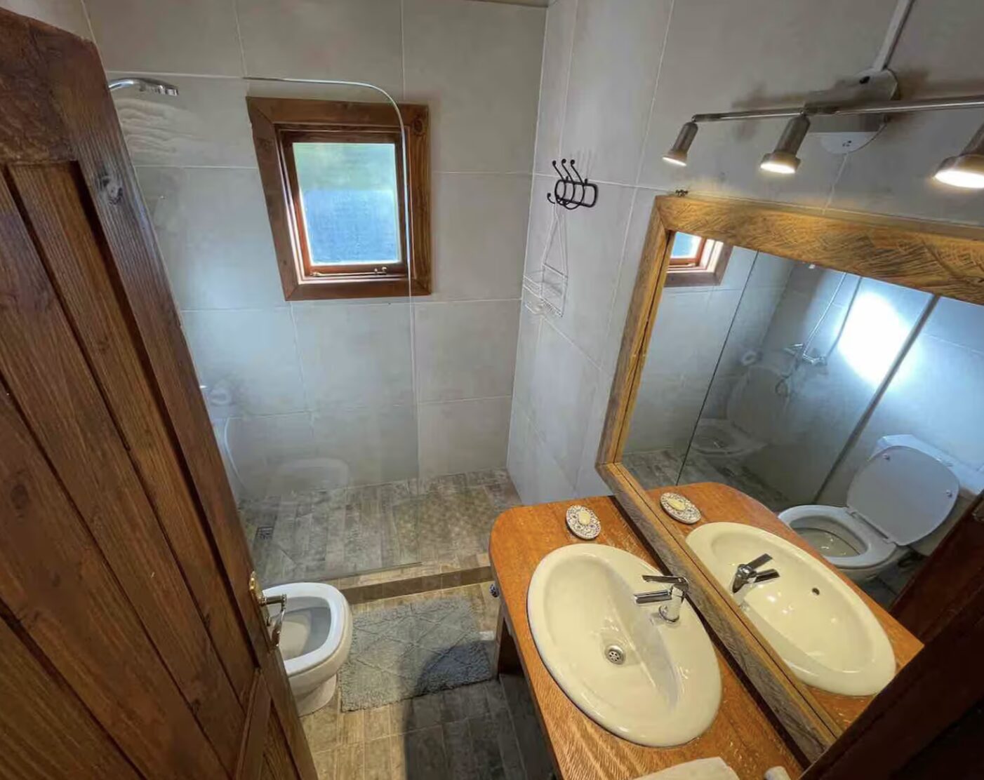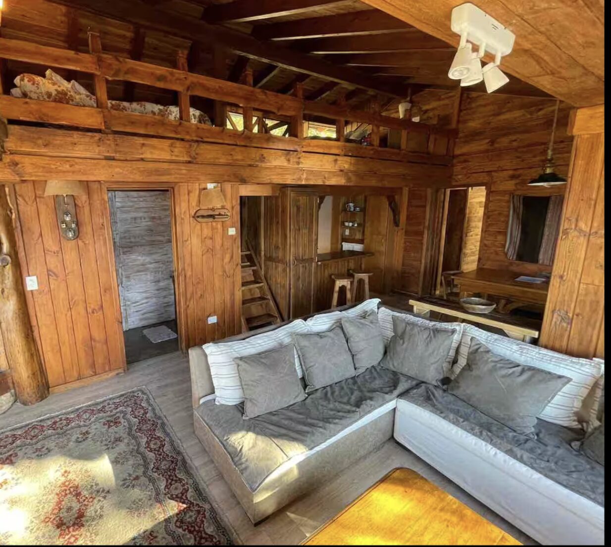 La cabaña es grande podrían ingresar 2 personas ya qué hay una cama en el entrepiso y dos baños. Las vistas son increíbles sentís que estás en un barco ya que el lago está a pocos metros del agua
