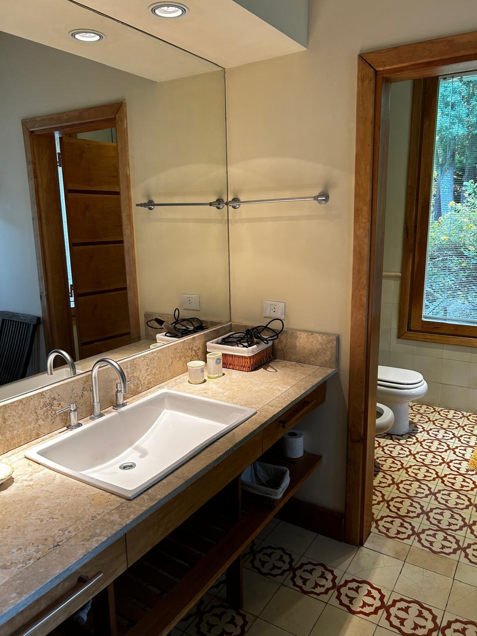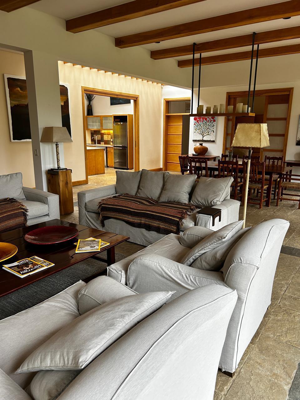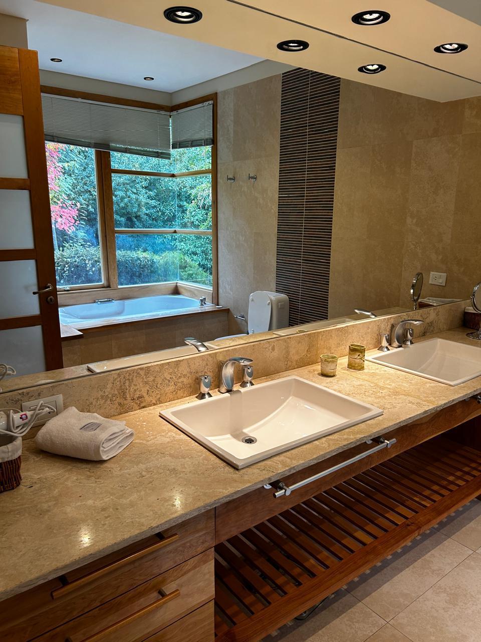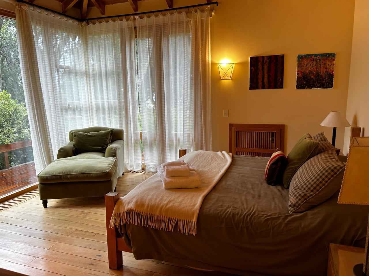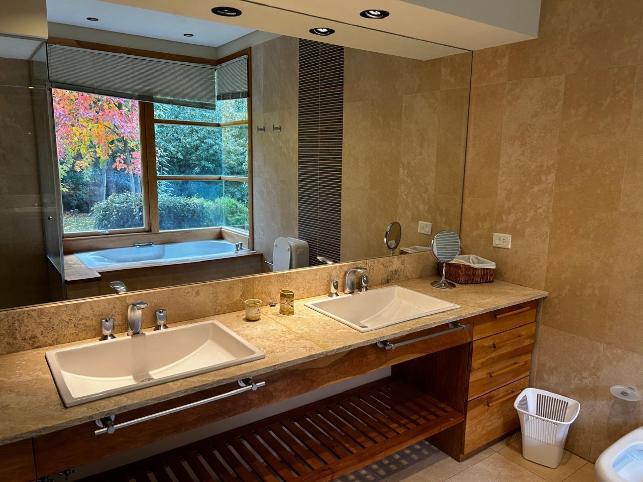 Casa muy luminosa en una sola planta. Tiene 3 habitaciones y un playroom que puede ser habitacion. Tres baños, cocina amplia integrada al living comedor. Lavadero con lavarropas y secarropas. jardin plano. Muy cerca del starter del golf.