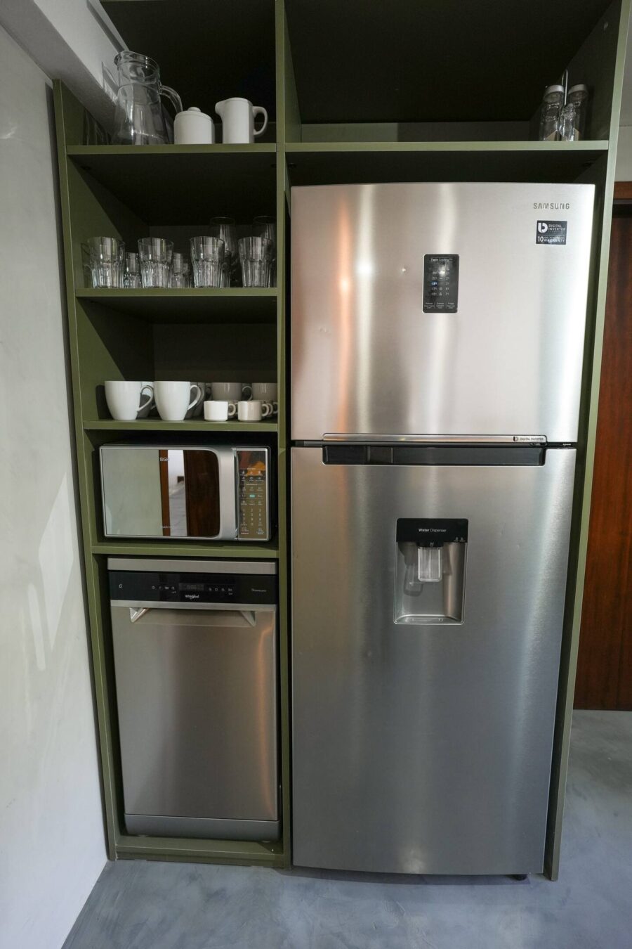 La cocina comedor está totalmente equipada con utencillos y microondas, lavadora vajillas, cocina industrial, cafetera, pava electrica, etc.