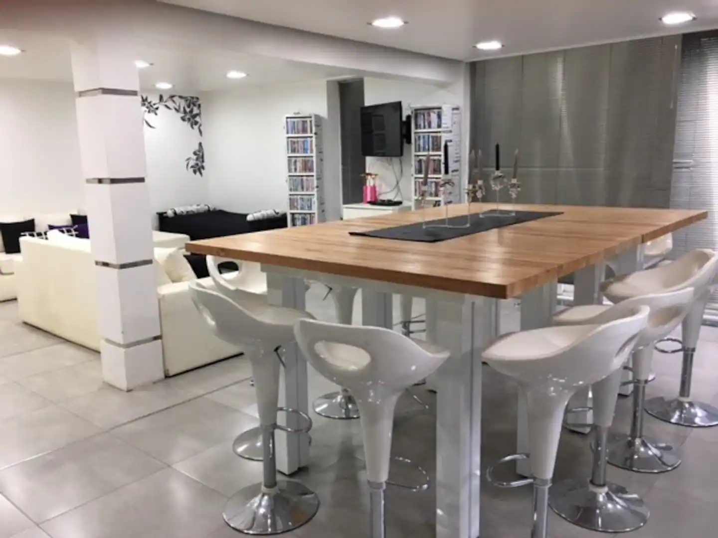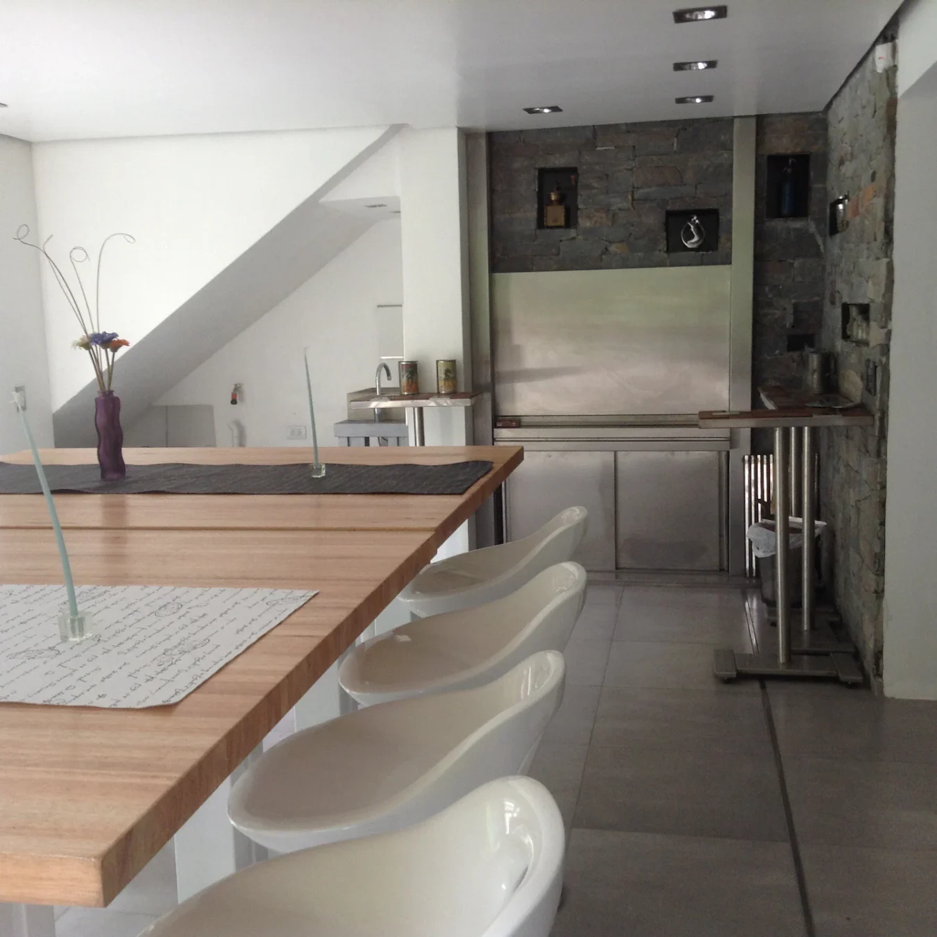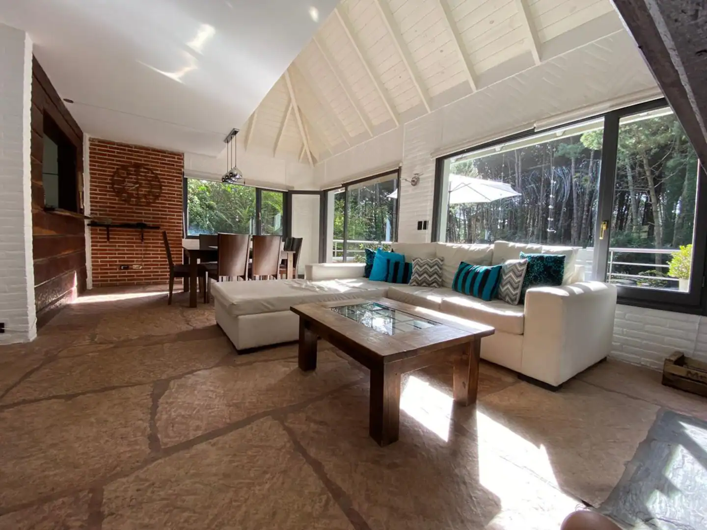 la casa se comunica directamente con la piscina con un gran salon y un espacio parrilla cerrado