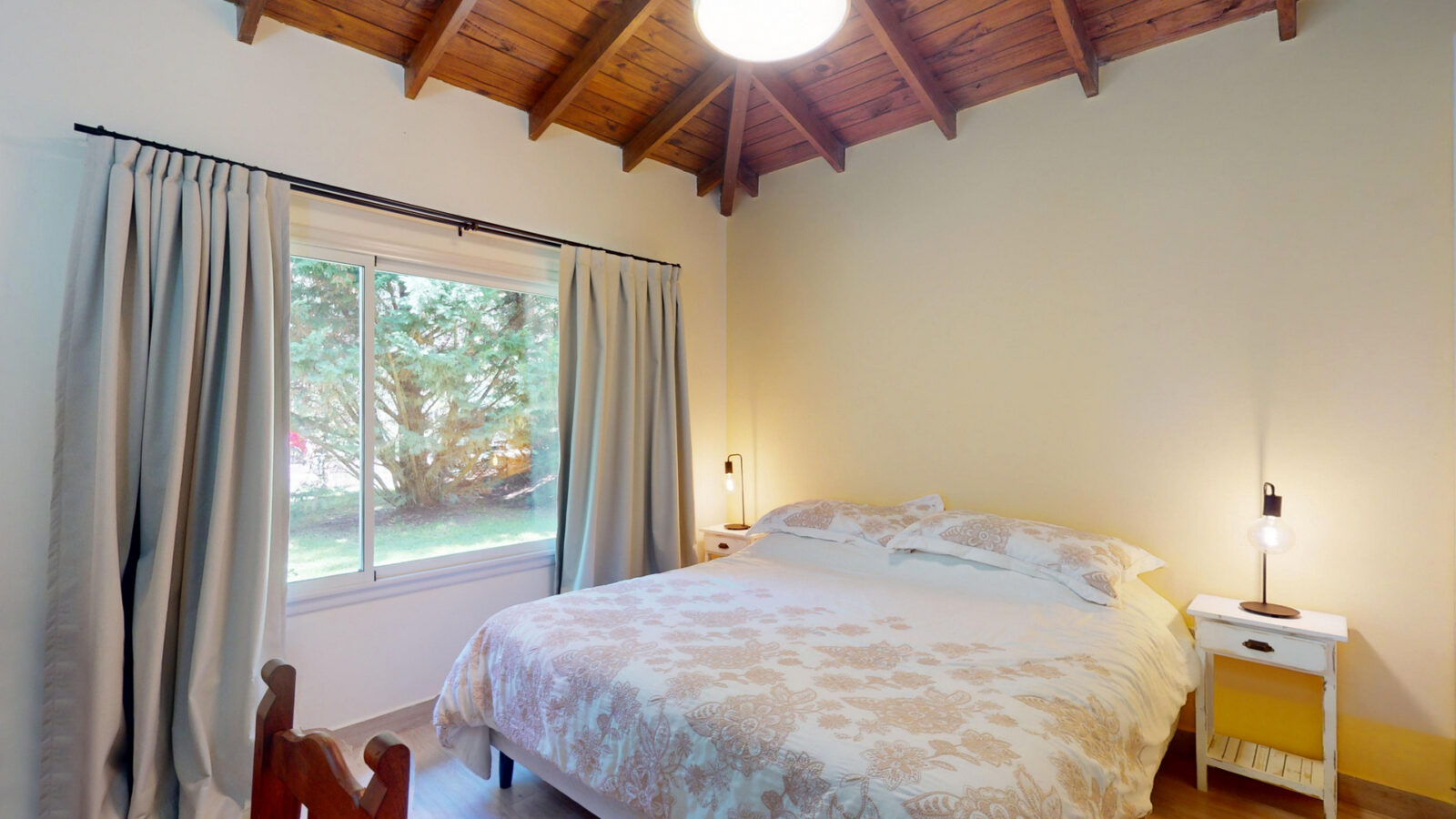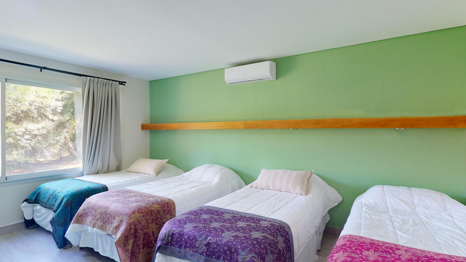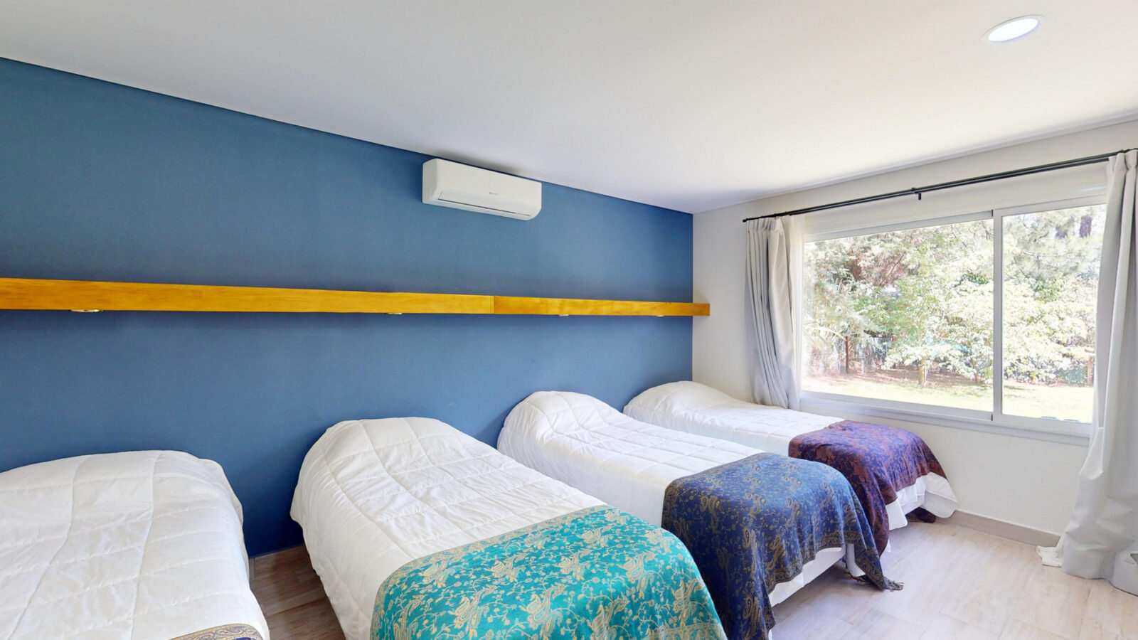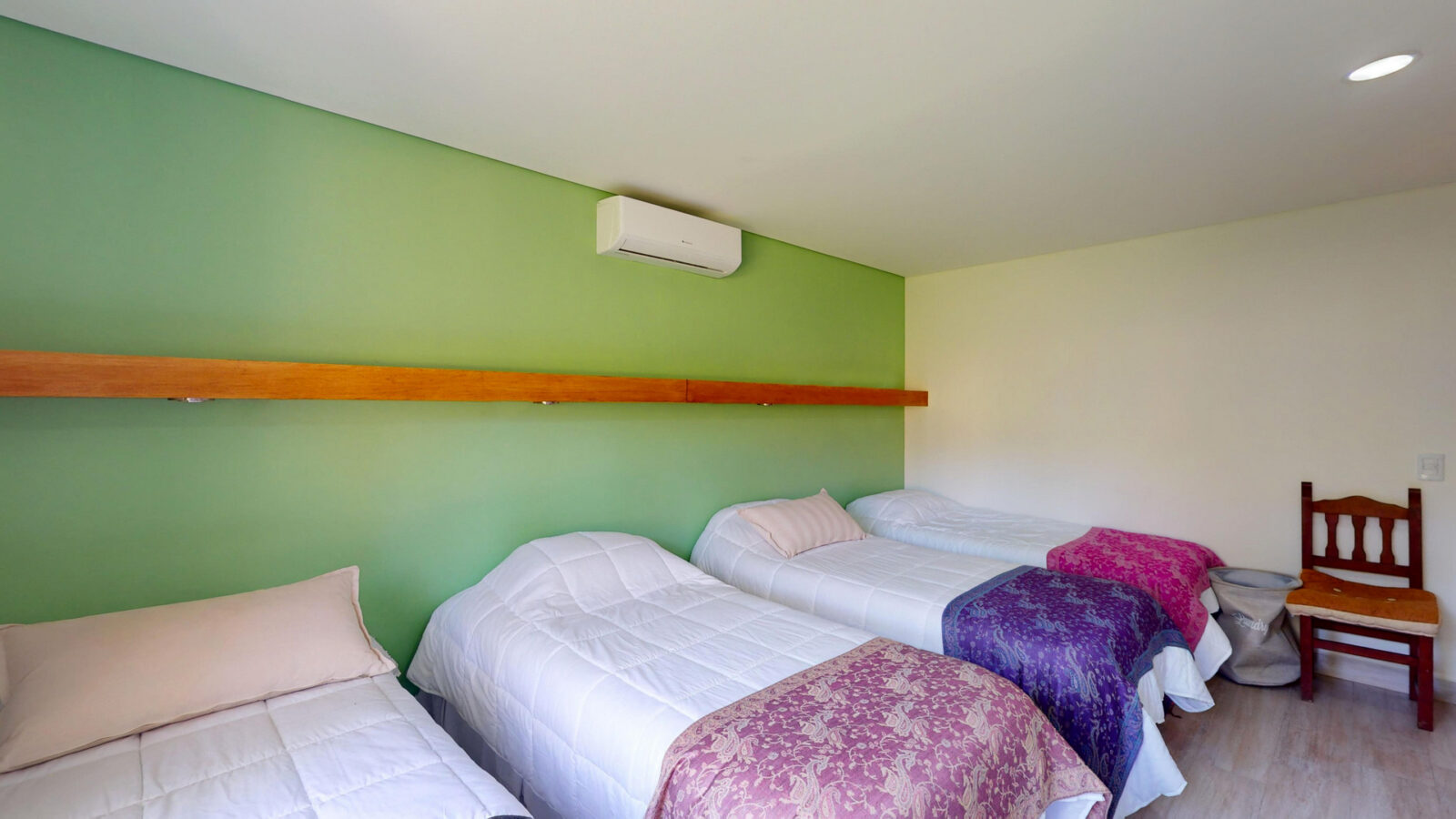 Cuenta con living comedor, cocina y cuatro dormitorios + 4 baños. Todos los dormitorios son con cama matrimonial, otros dos camas individuales, las cuales pueden convertirse en cama matrimonial también.