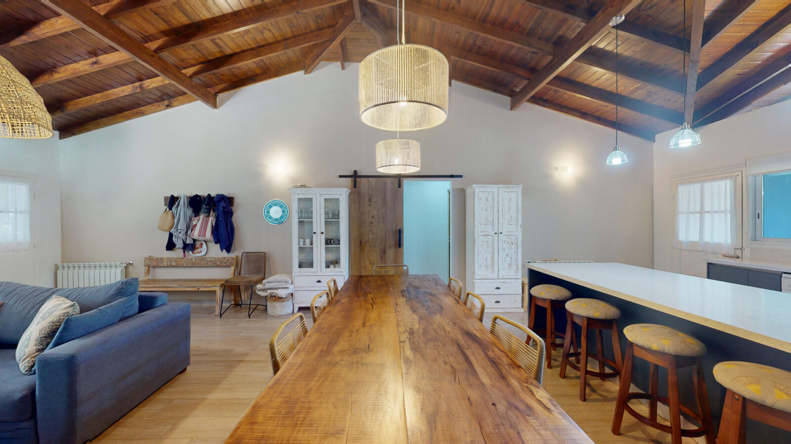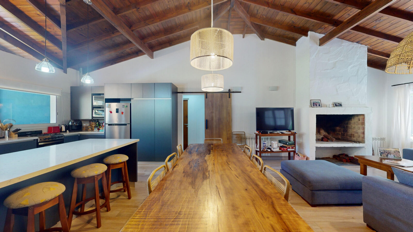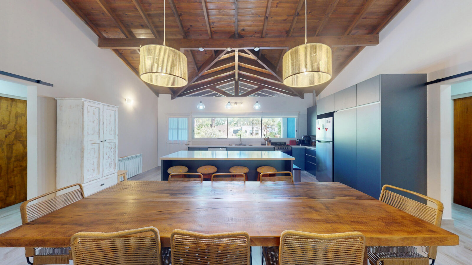 Cuenta con living comedor, cocina y cuatro dormitorios + 4 baños. Todos los dormitorios son con cama matrimonial, otros dos camas individuales, las cuales pueden convertirse en cama matrimonial también.