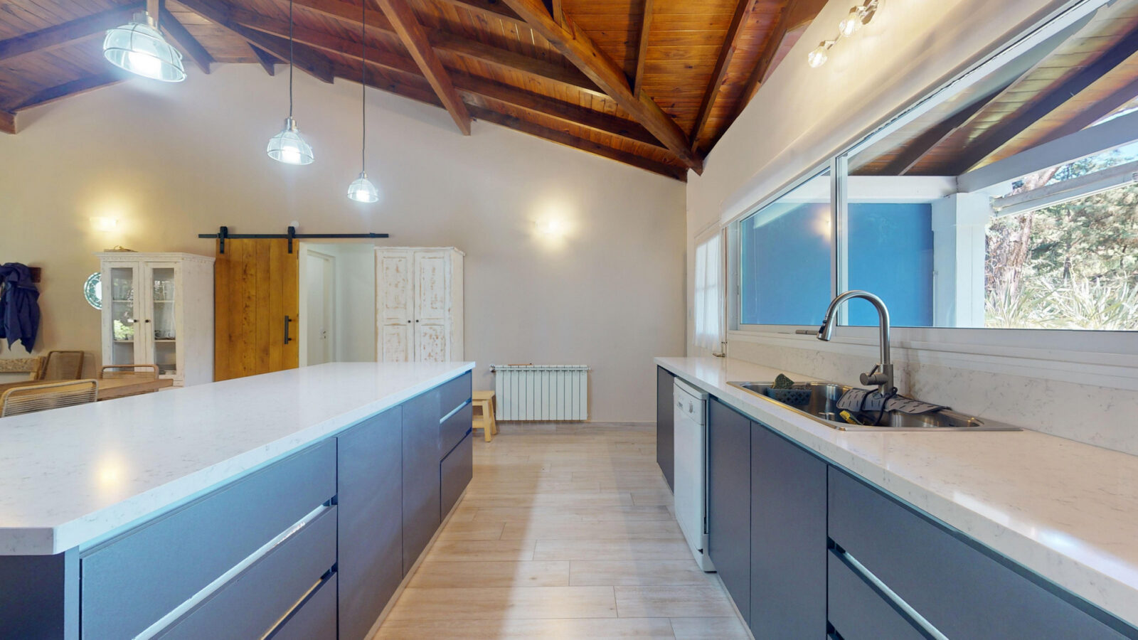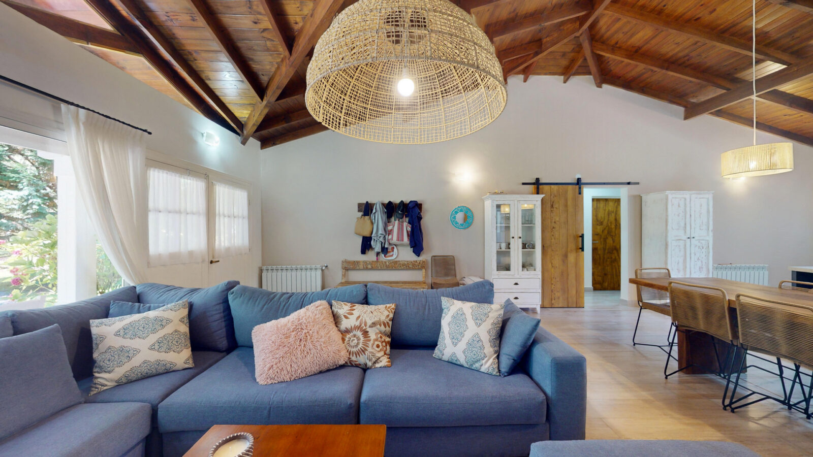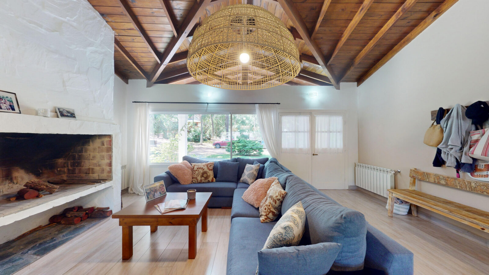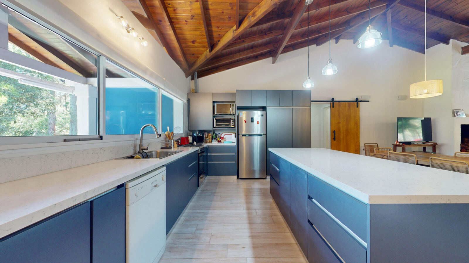 Cuenta con living comedor, cocina y cuatro dormitorios + 4 baños. Todos los dormitorios son con cama matrimonial, otros dos camas individuales, las cuales pueden convertirse en cama matrimonial también.
