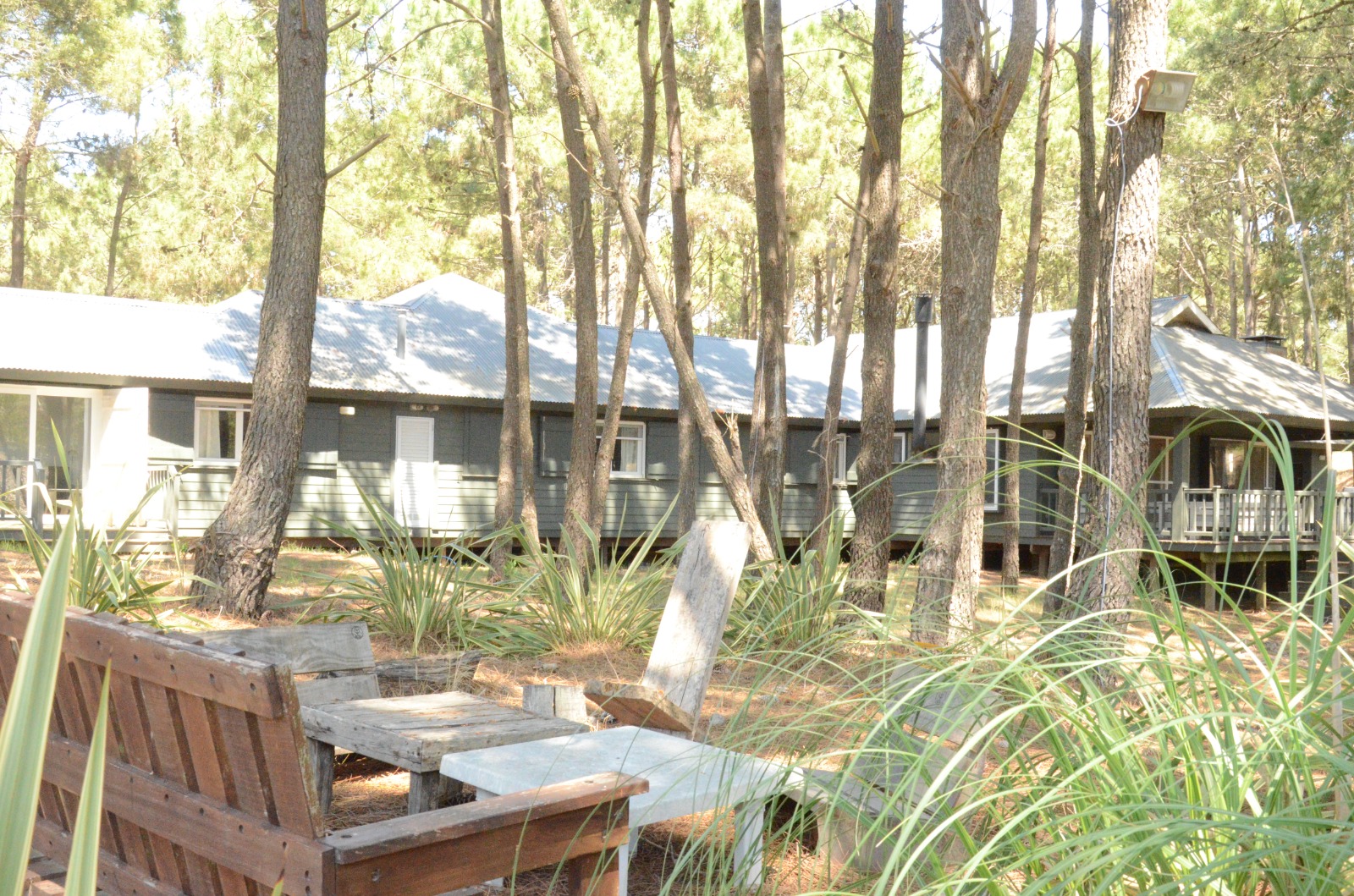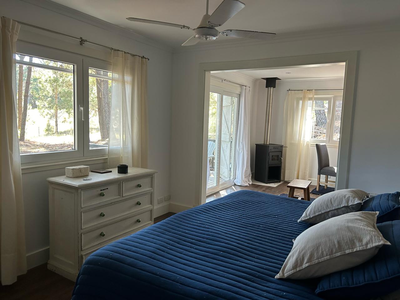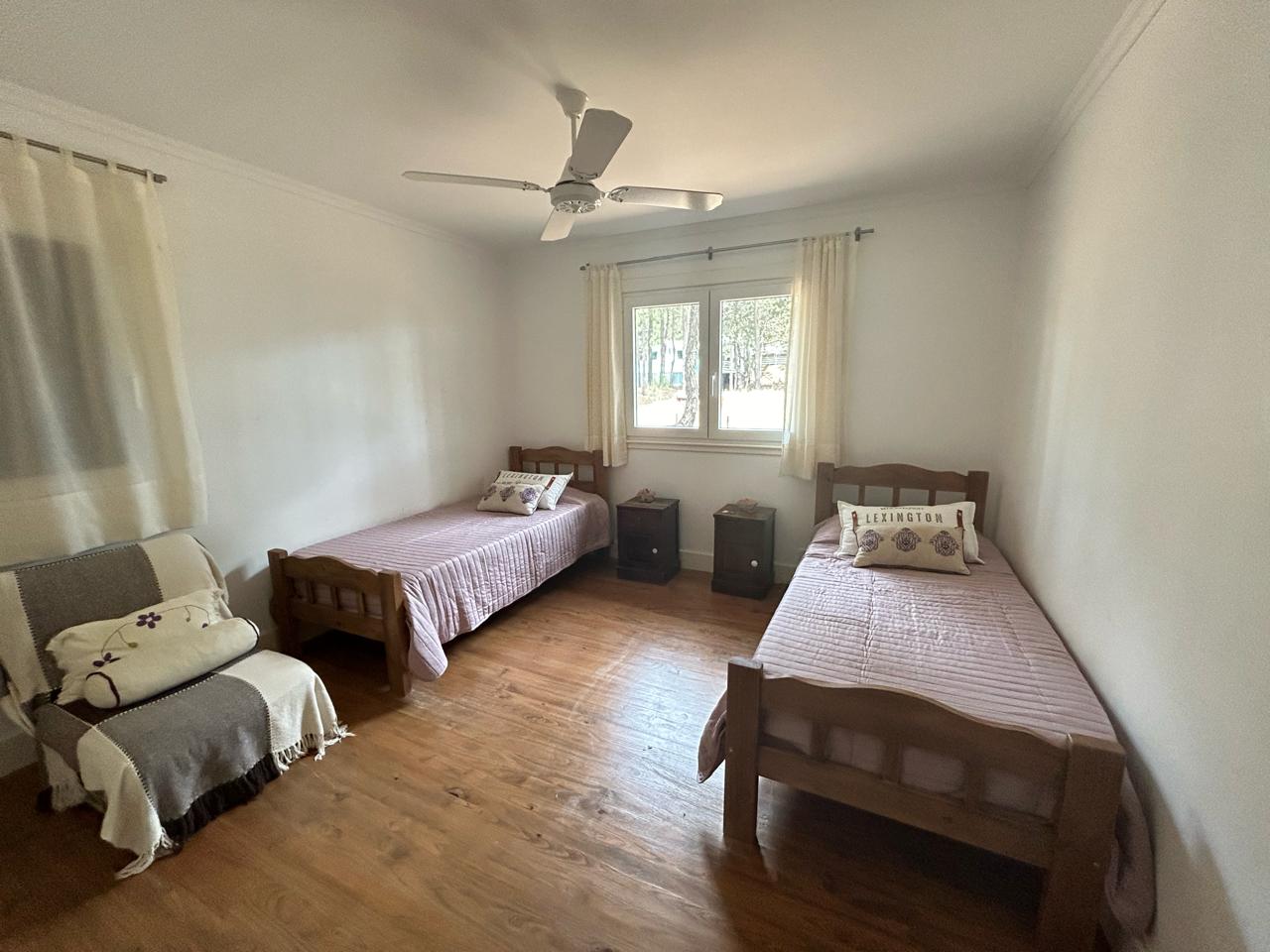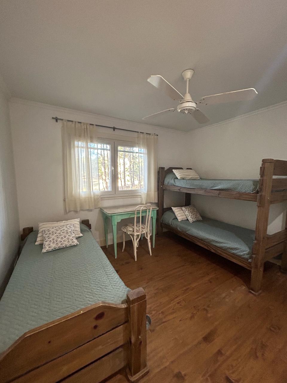 Dormitorio principal en suite con living privado. al lado hay un cuarto con dos camas con baño en frente, a continuacion otro dormitorio con dos camas y baño al lado, mas dos dormitorios que comparten baño. uno tiene una cucheta y una cama con carro abajo. y el otro dormitorio con otra cucheta con otra cama.